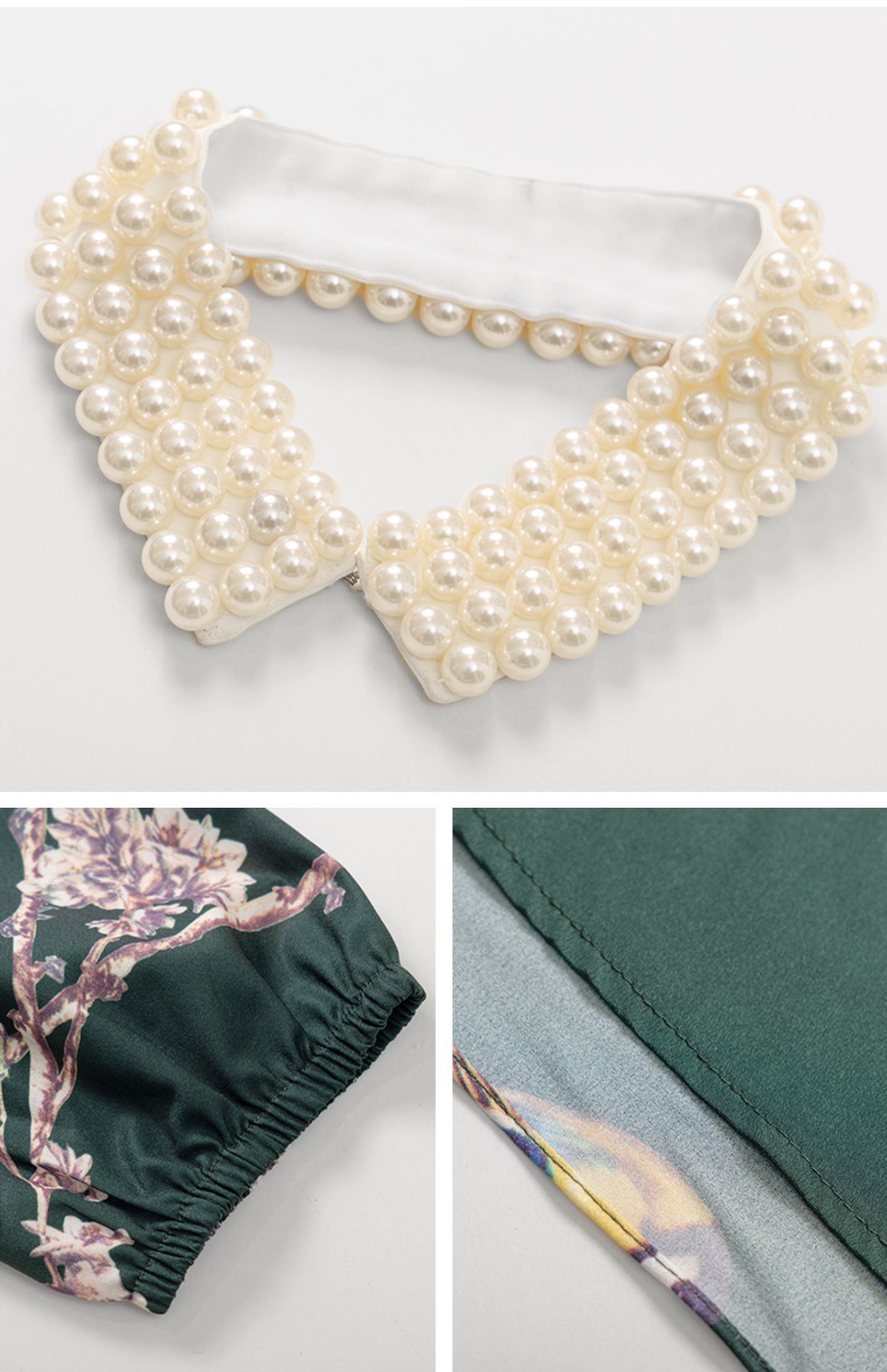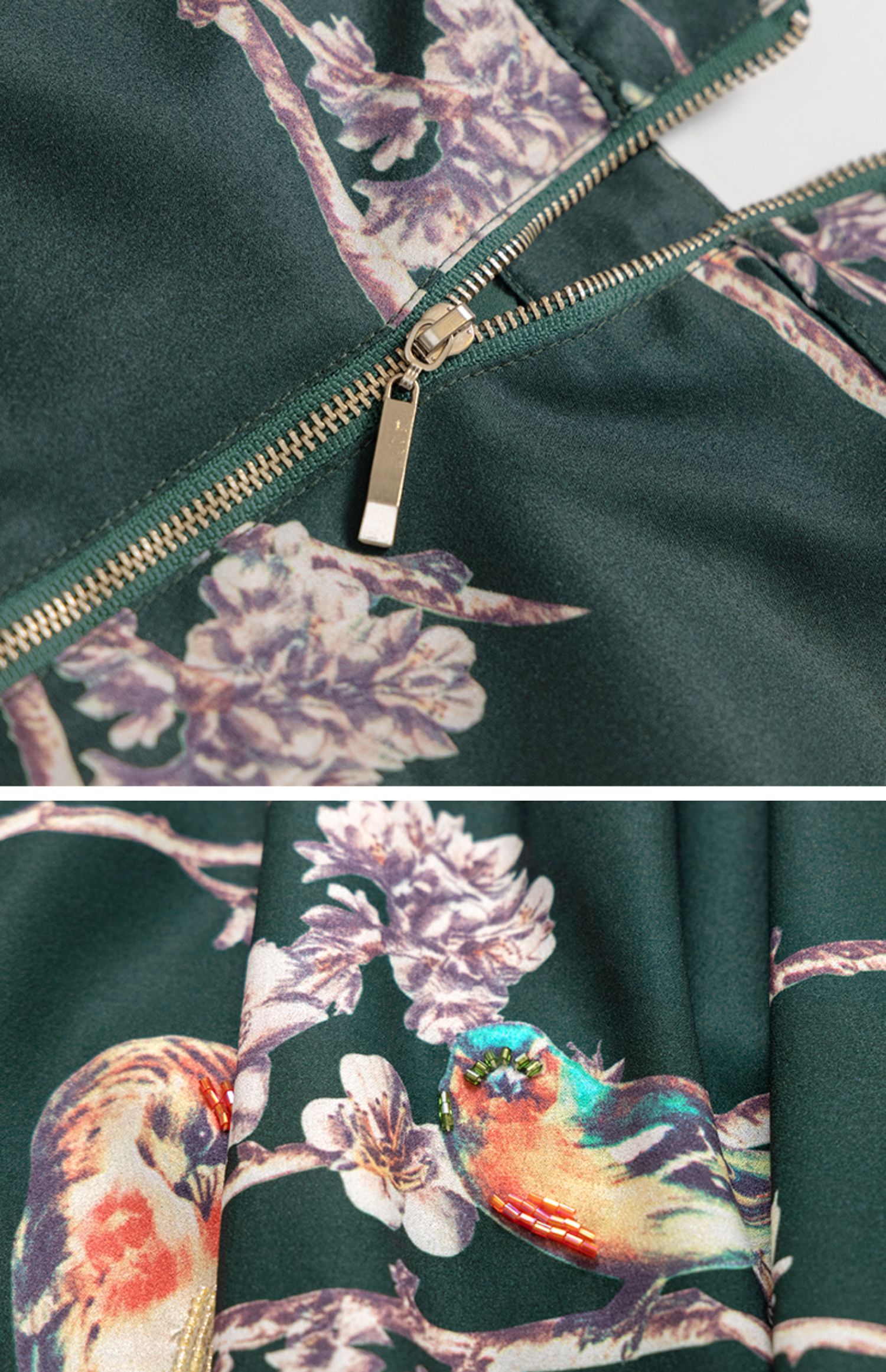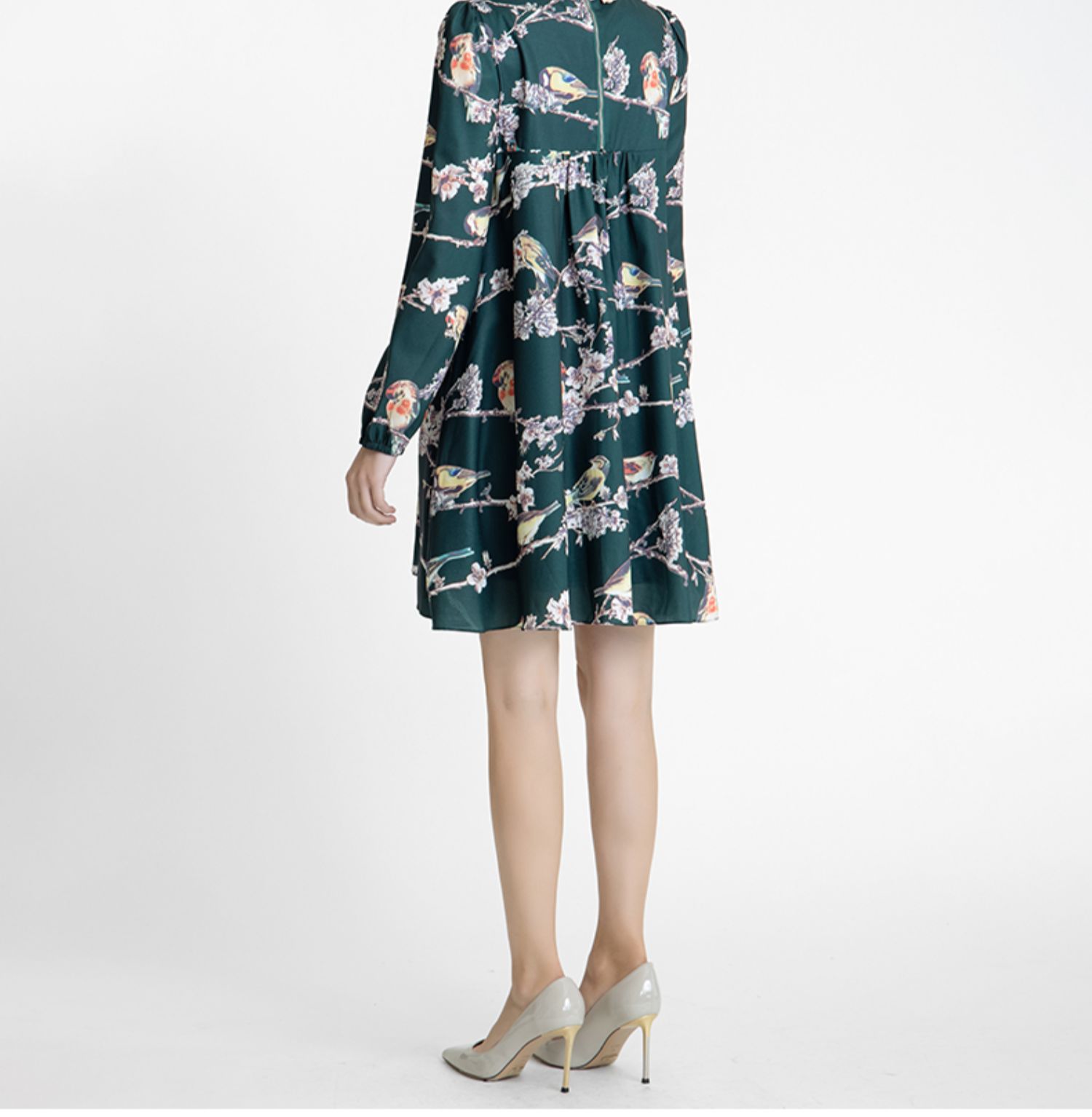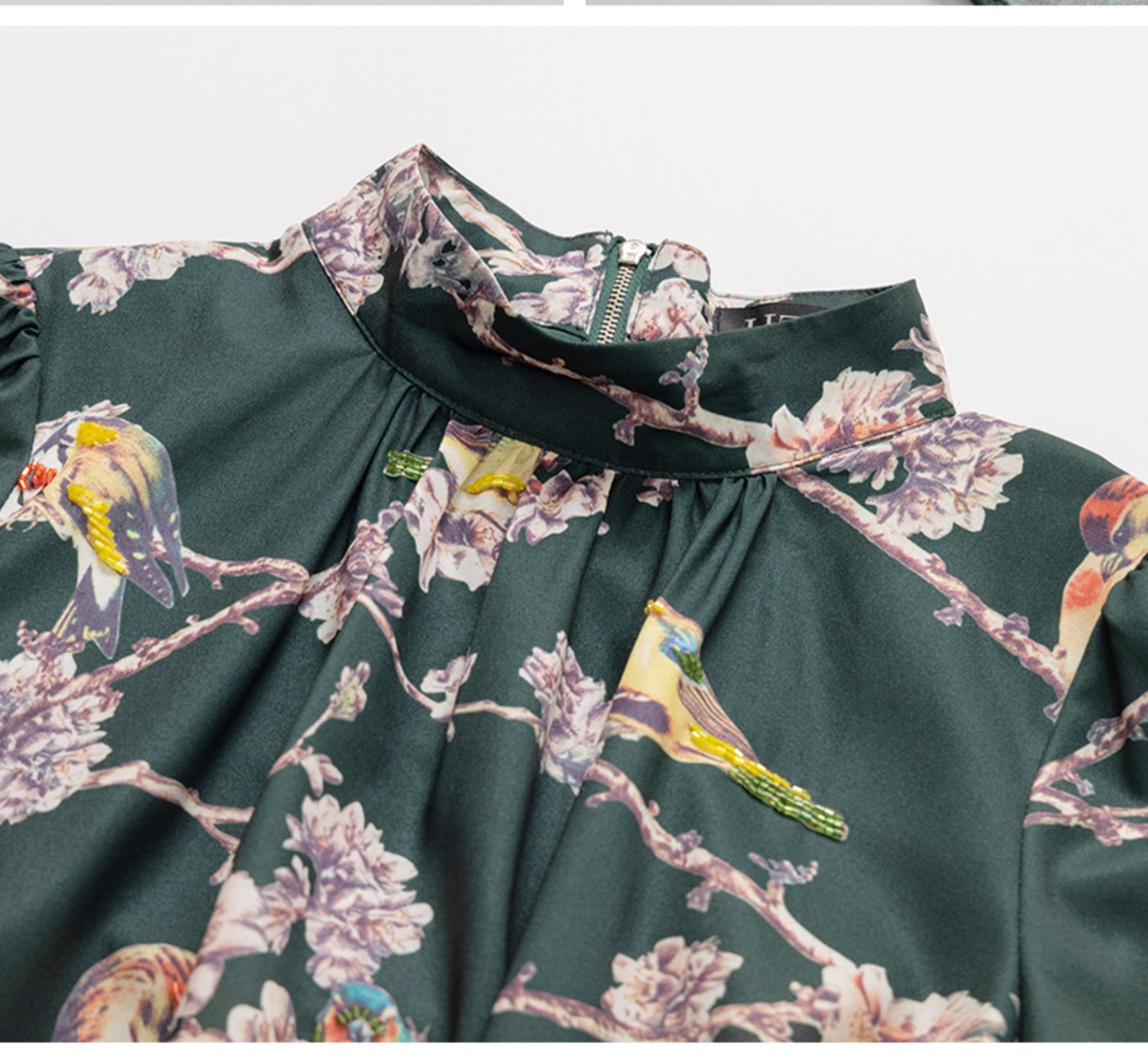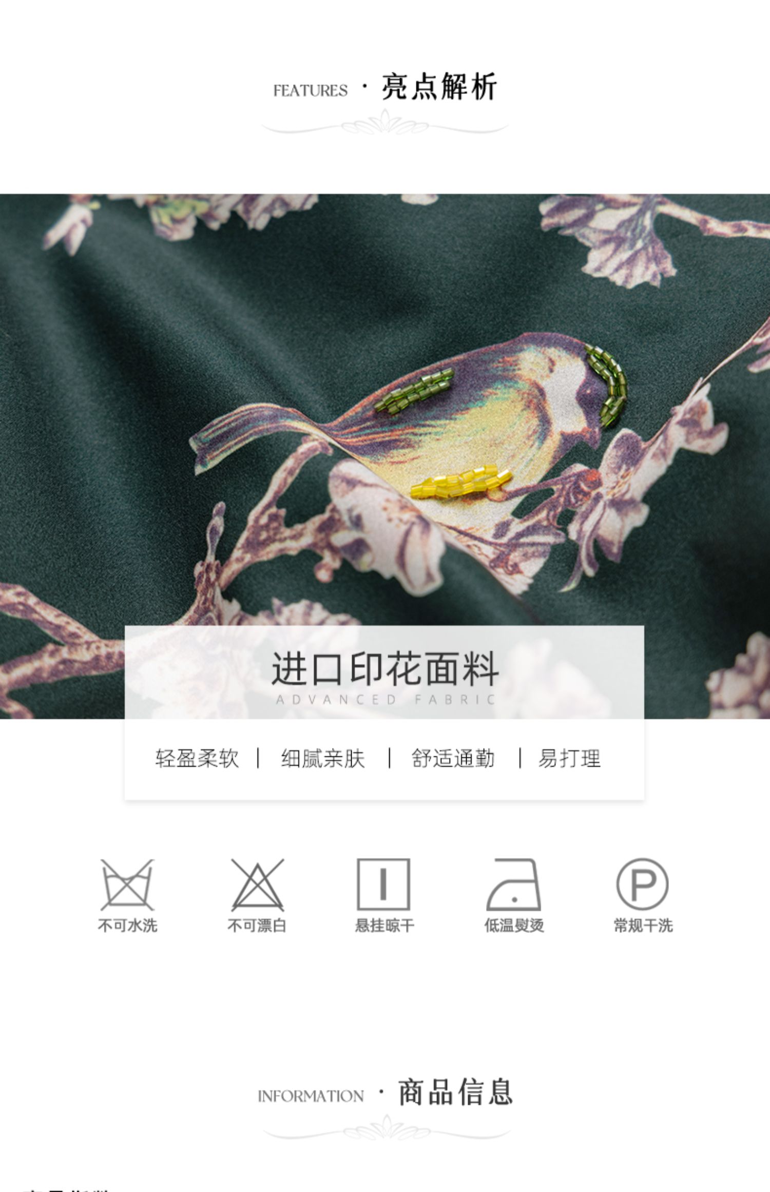 LIZZY 古典优雅名媛风立数码印花喜鹊梅花钉珠连衣裙(配珍珠项链)5396