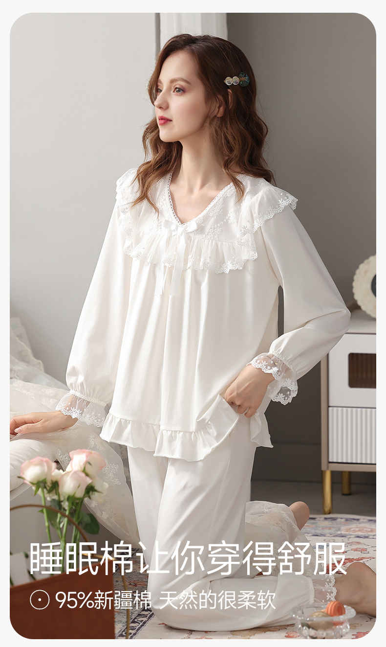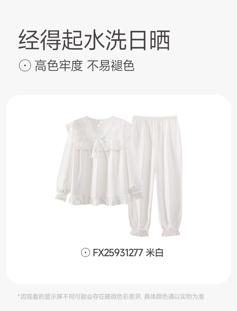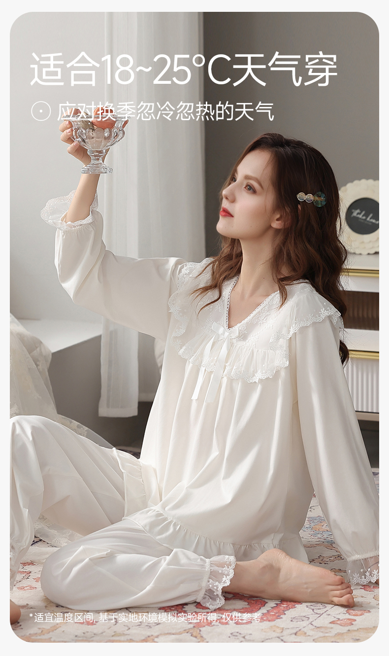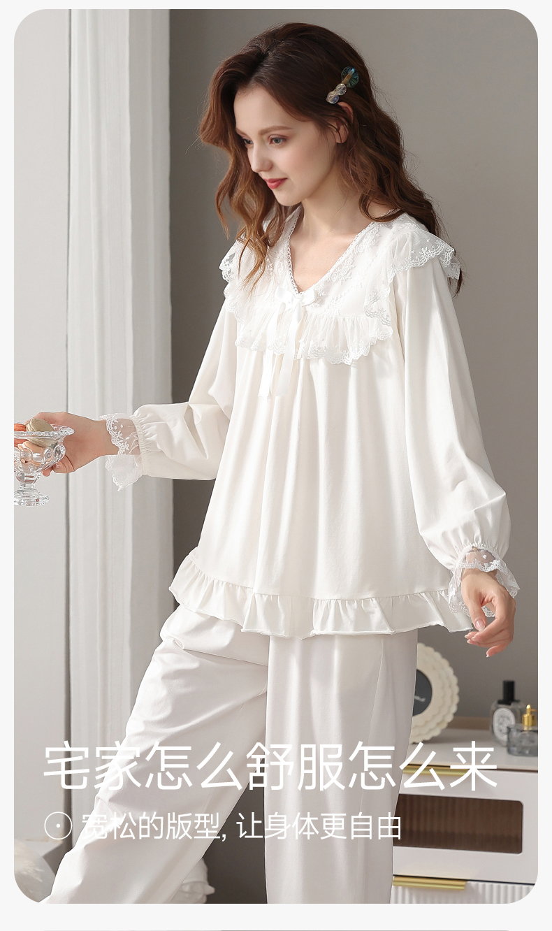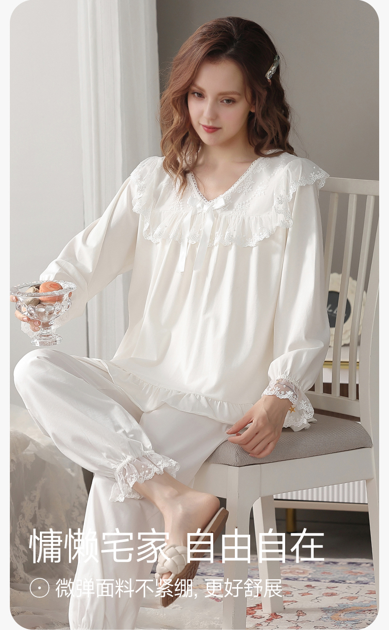 芬腾春秋季女士睡衣长袖套头套装女款宽松休闲大码全棉家居服