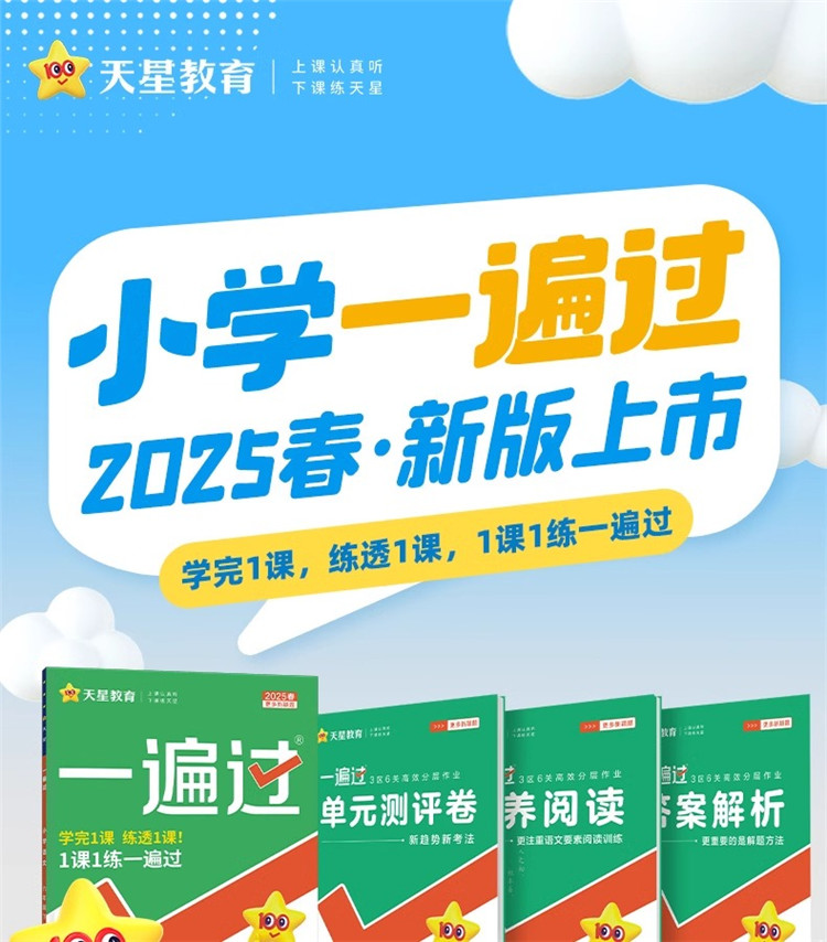 一遍过小学五年级上册下册语文英语数学人教版北师大版外研版天星教育同步练习册教辅书
