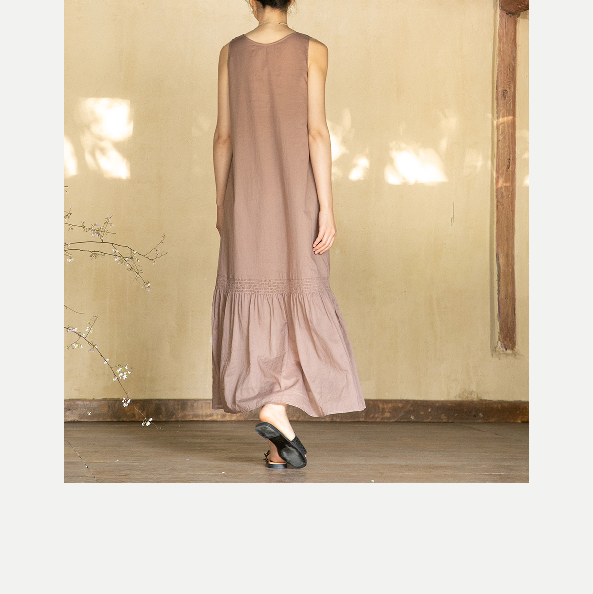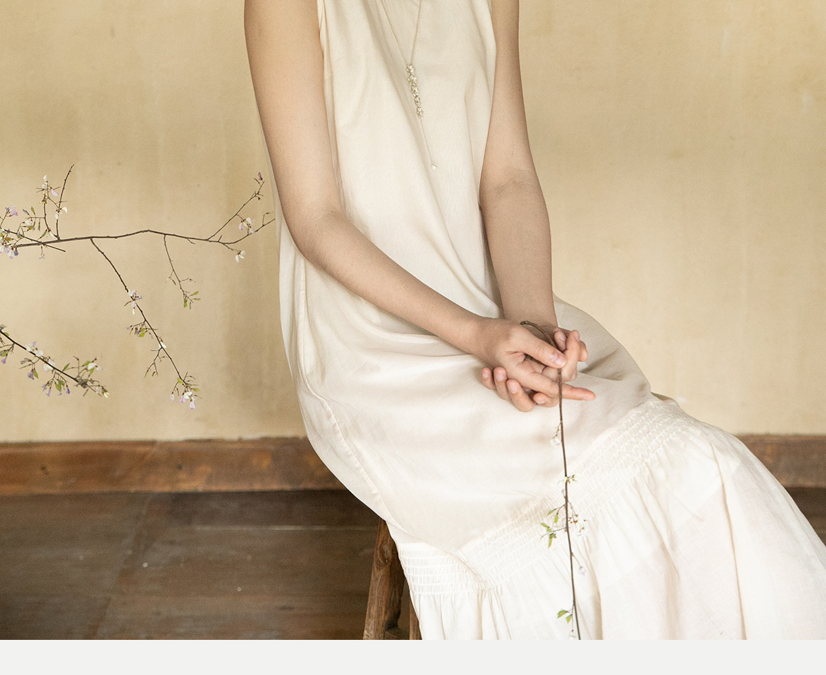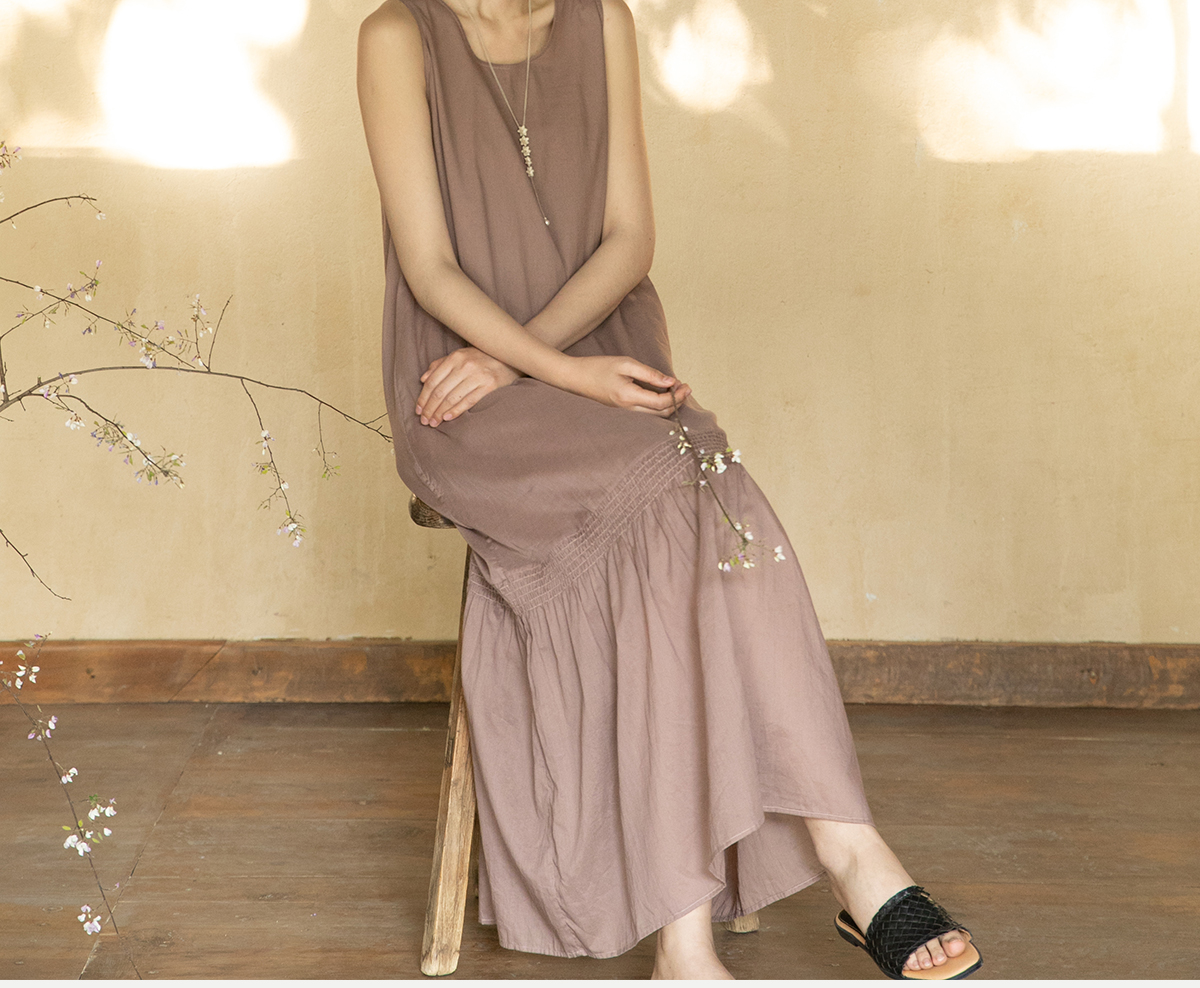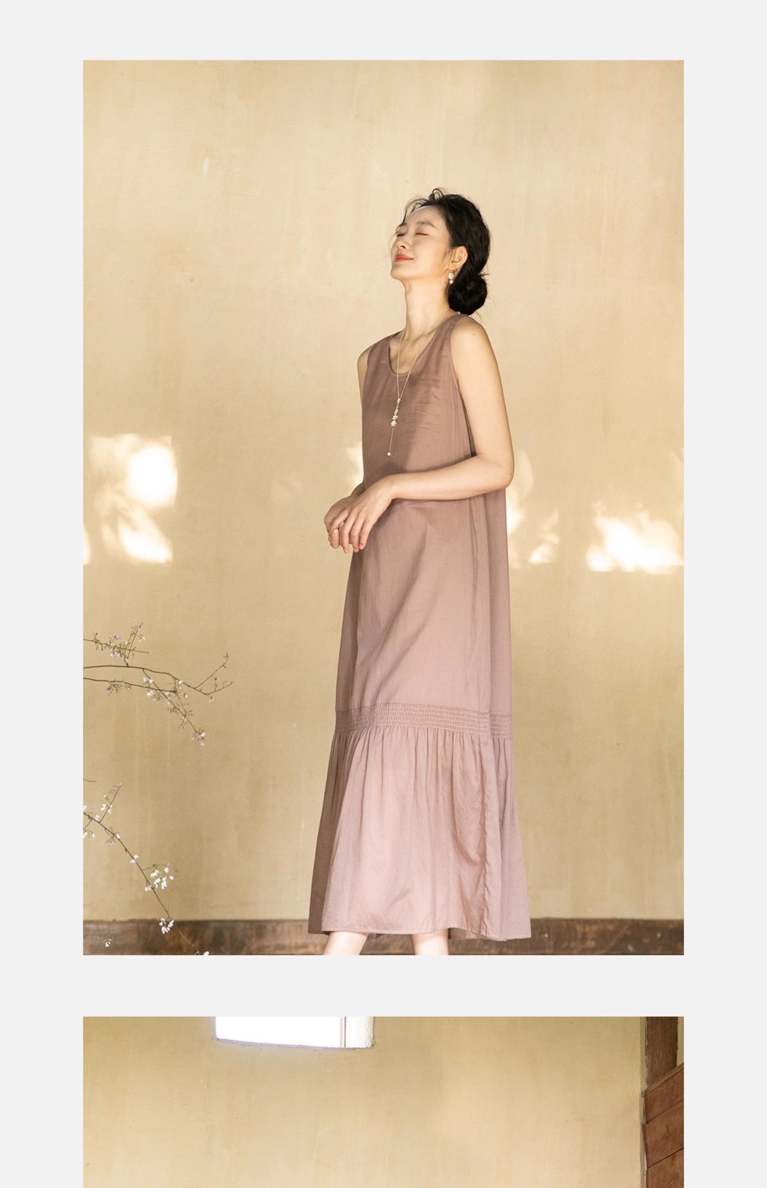牧衣游原创 净色棉质连衣裙女夏新款轻薄浪漫气质无袖长裙 花亦了