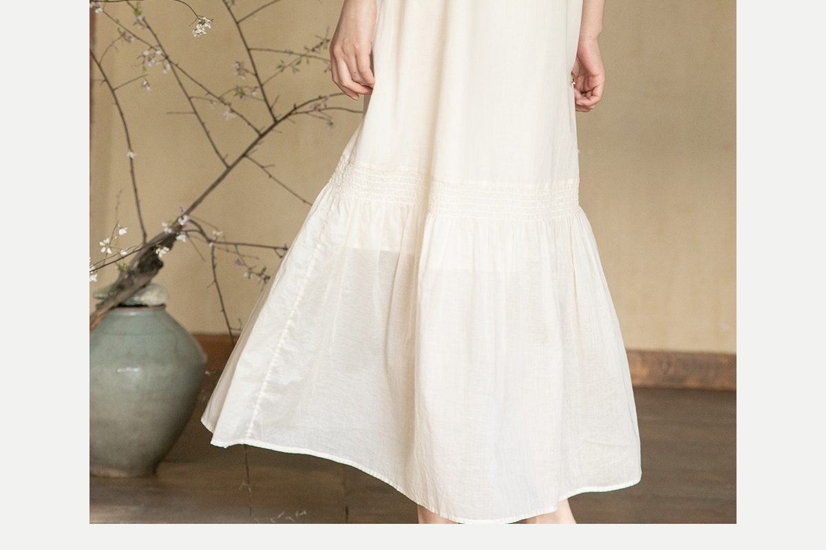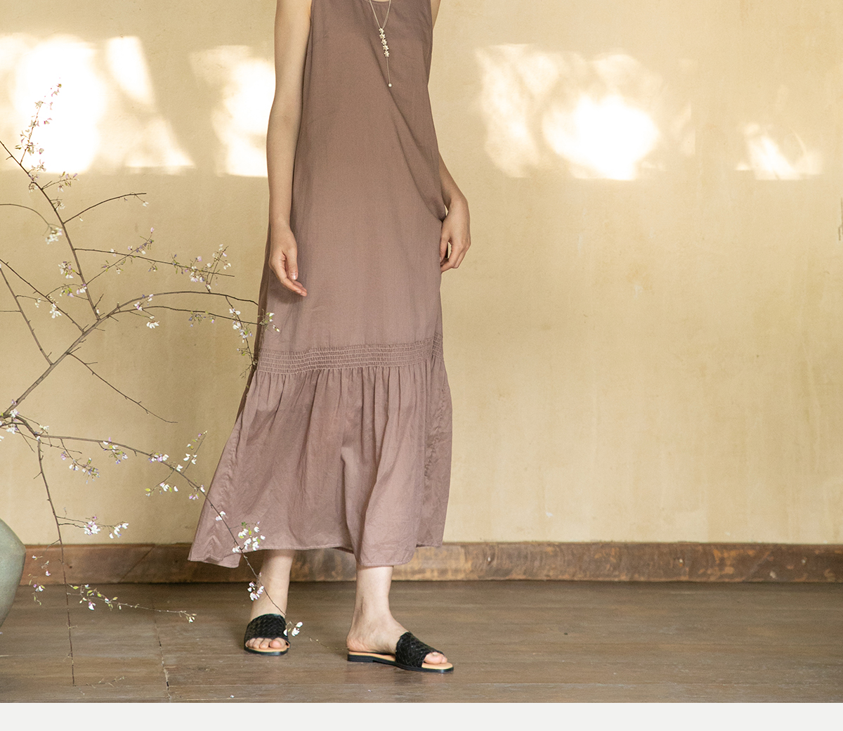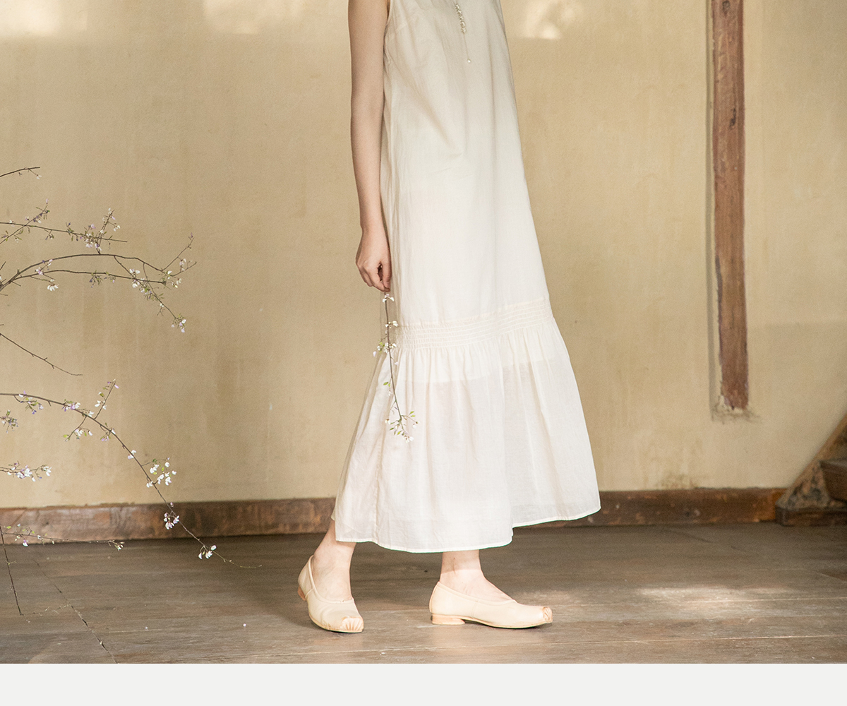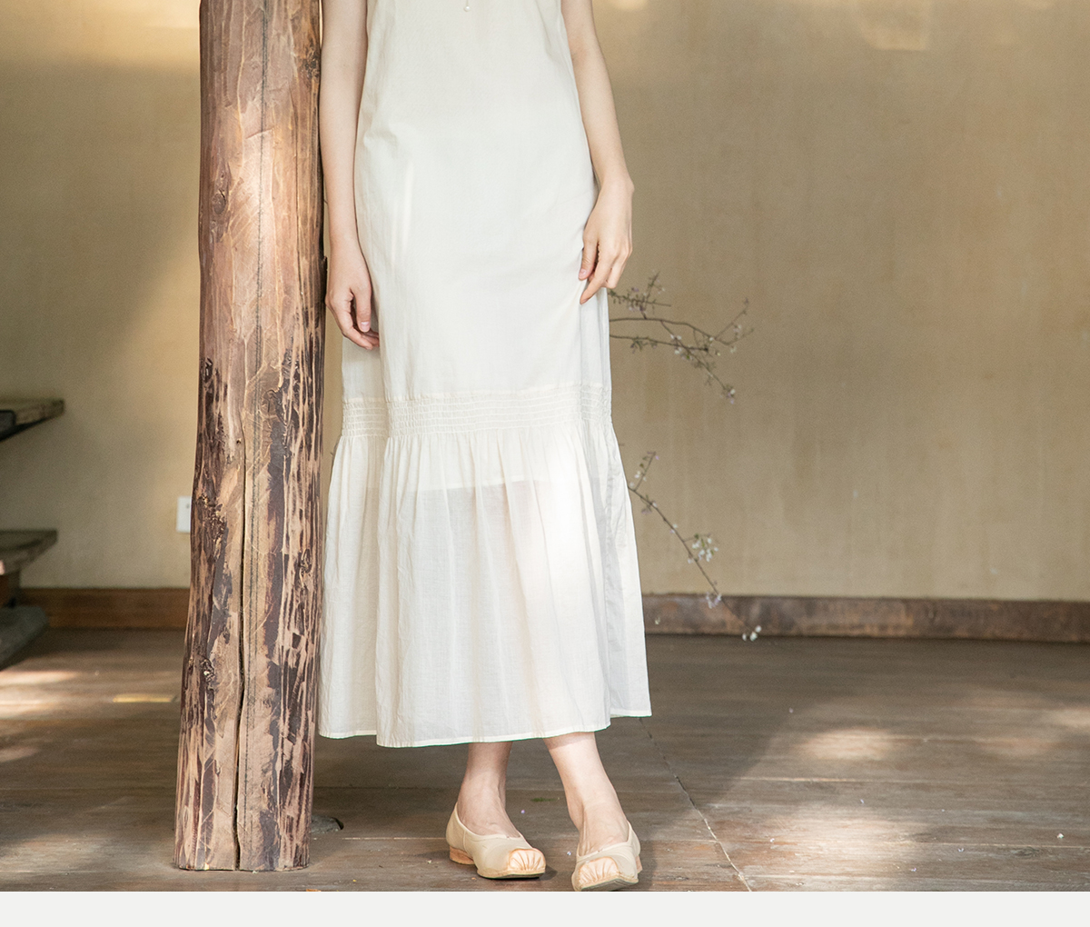 牧衣游原创 净色棉质连衣裙女夏新款轻薄浪漫气质无袖长裙 花亦了