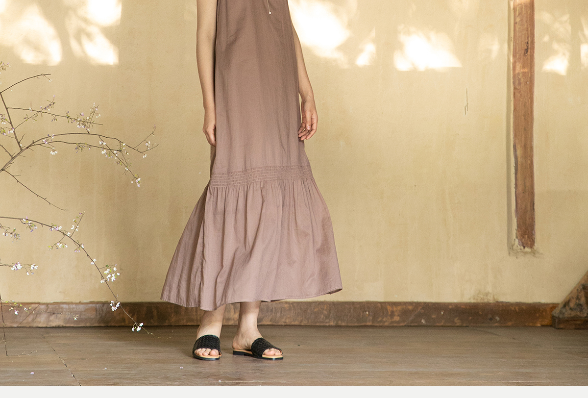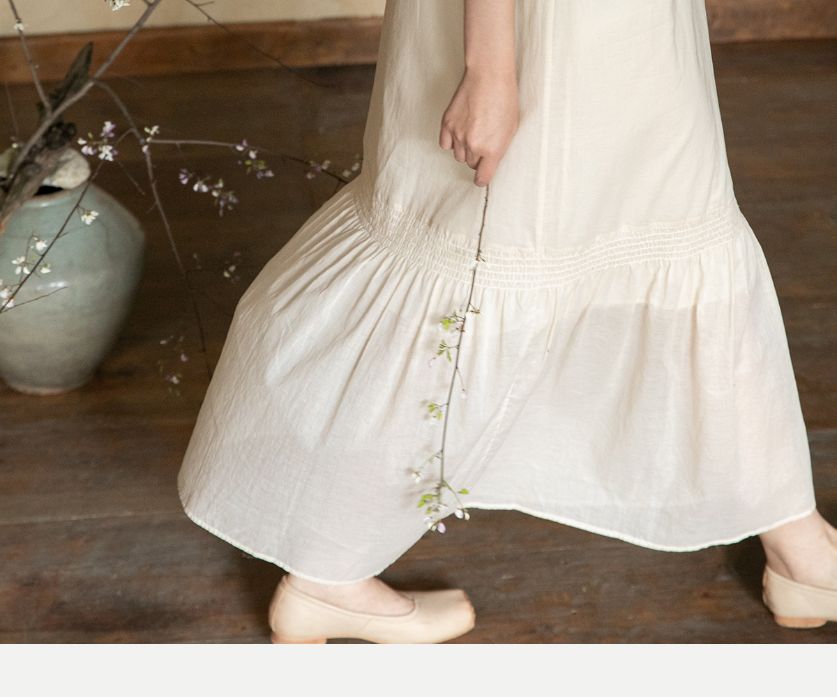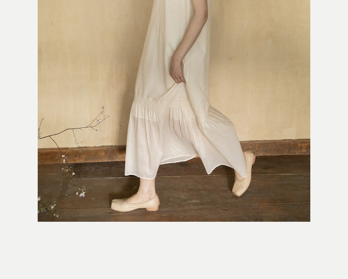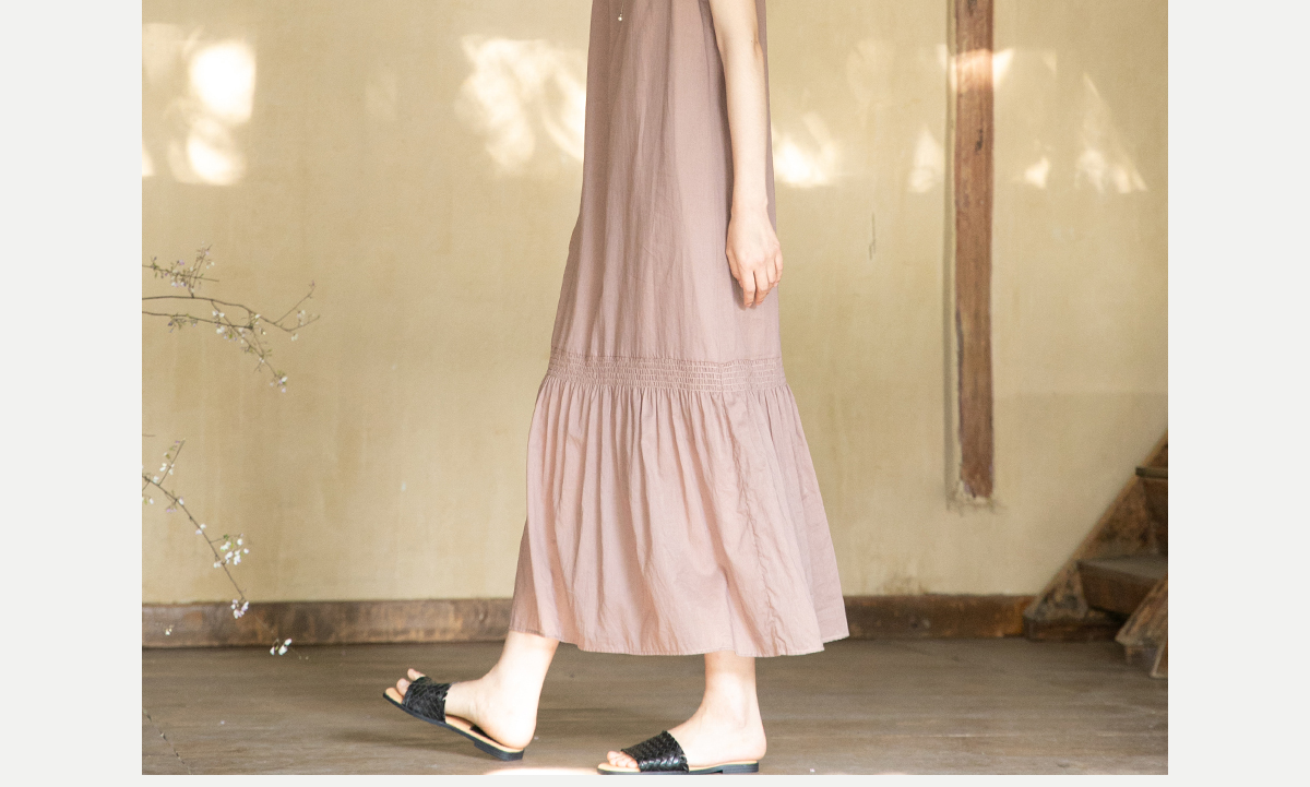 牧衣游原创 净色棉质连衣裙女夏新款轻薄浪漫气质无袖长裙 花亦了