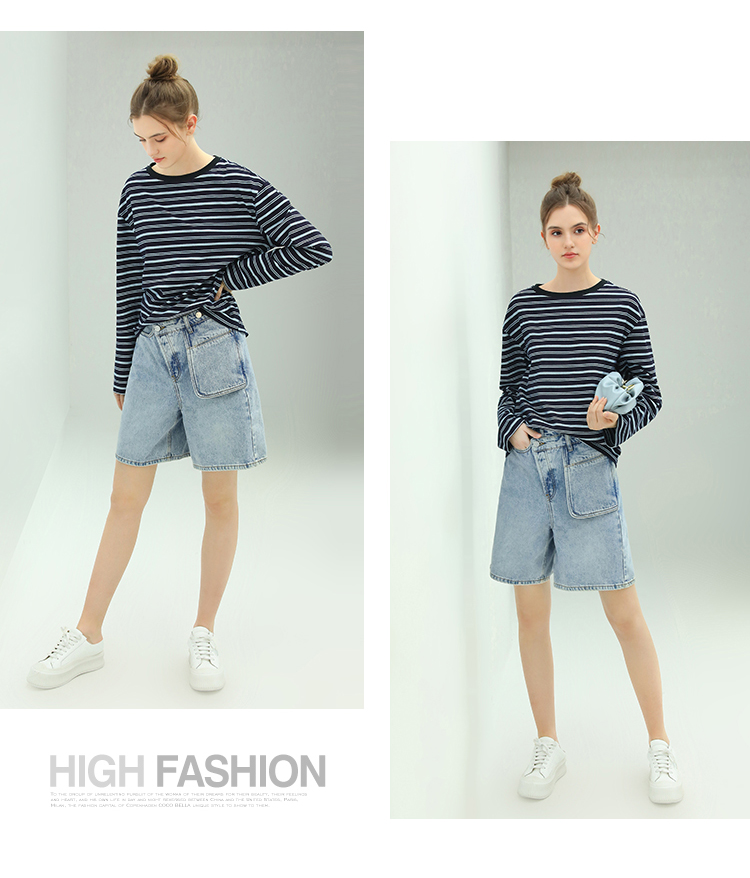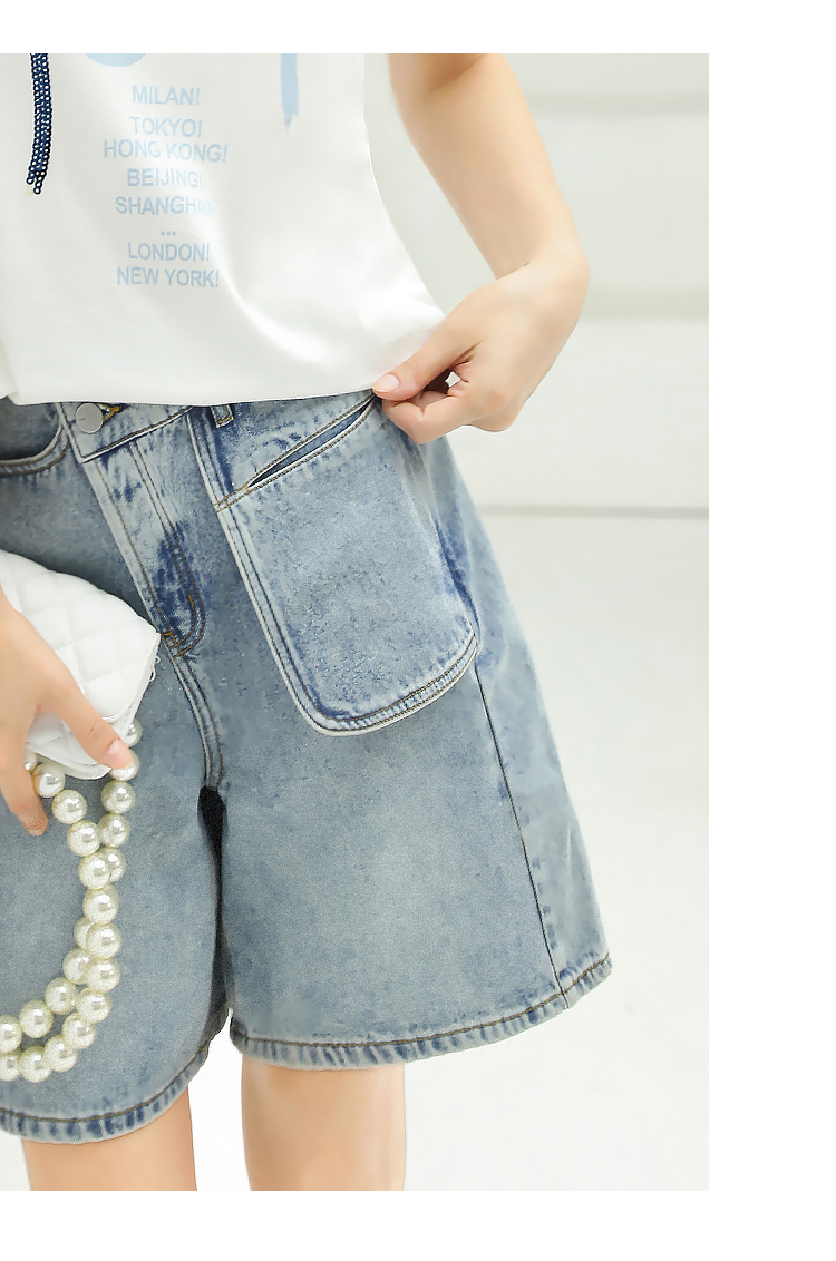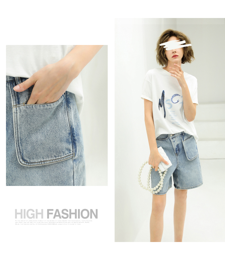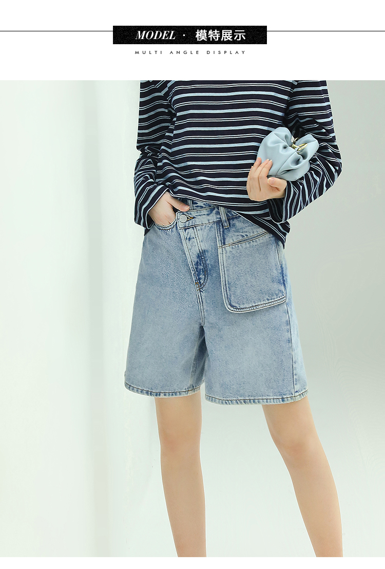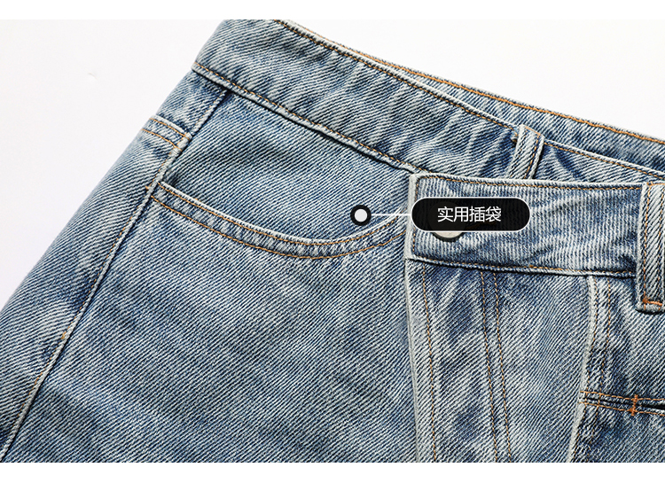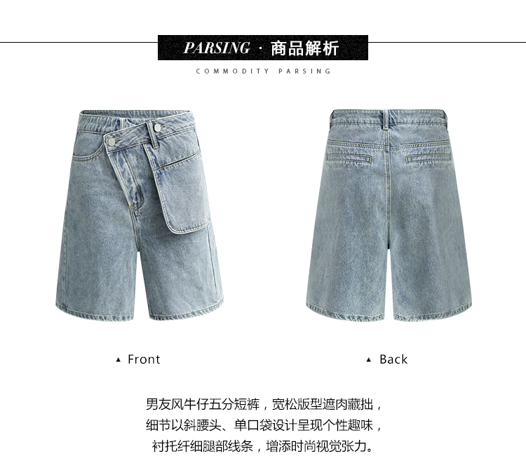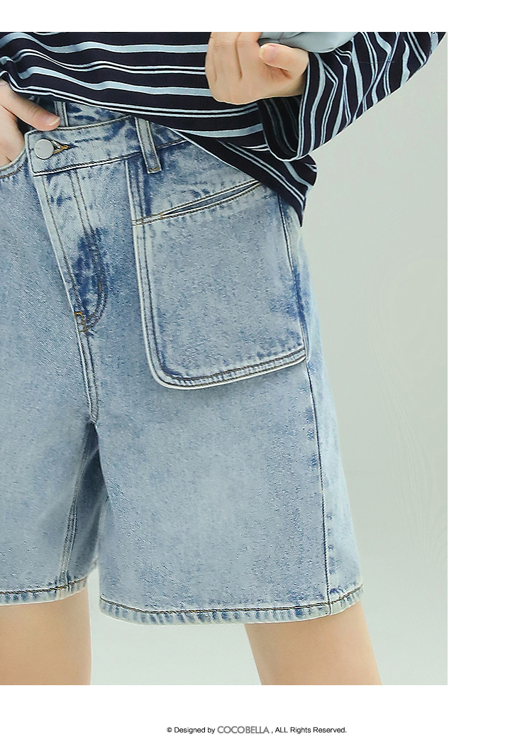 COCOBELLA解构高腰遮胯水洗牛仔蓝短裤女夏季宽松休闲五分裤DN15