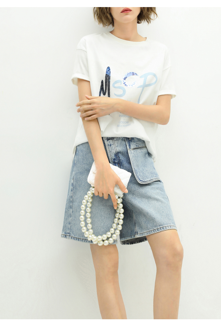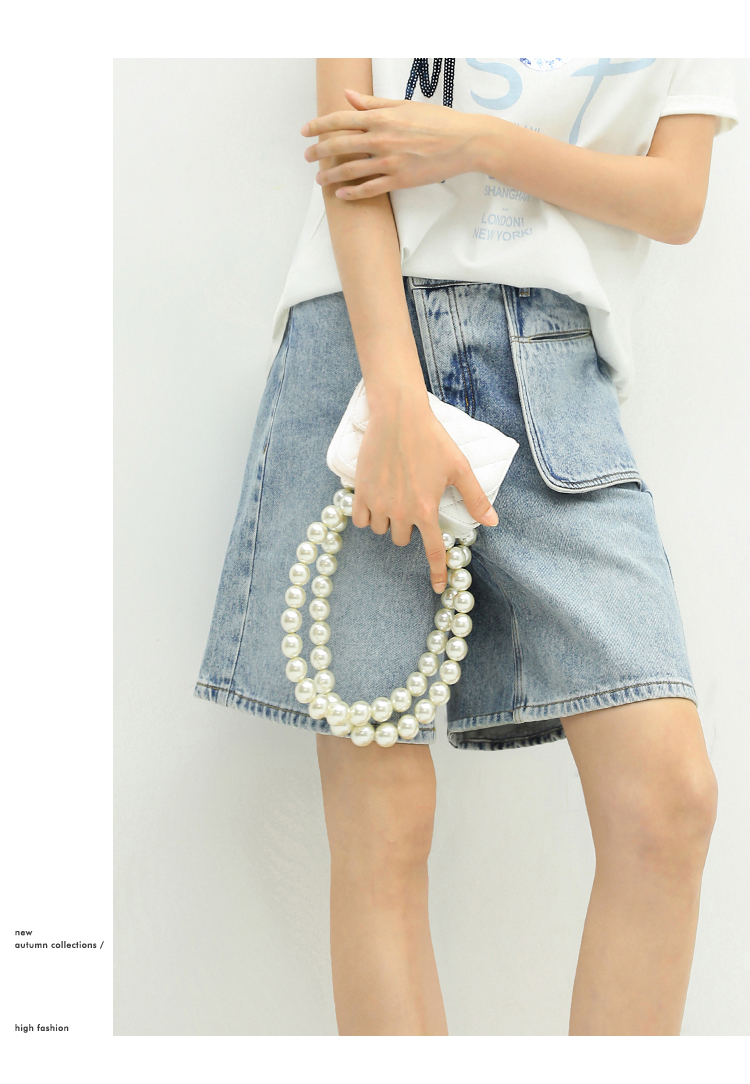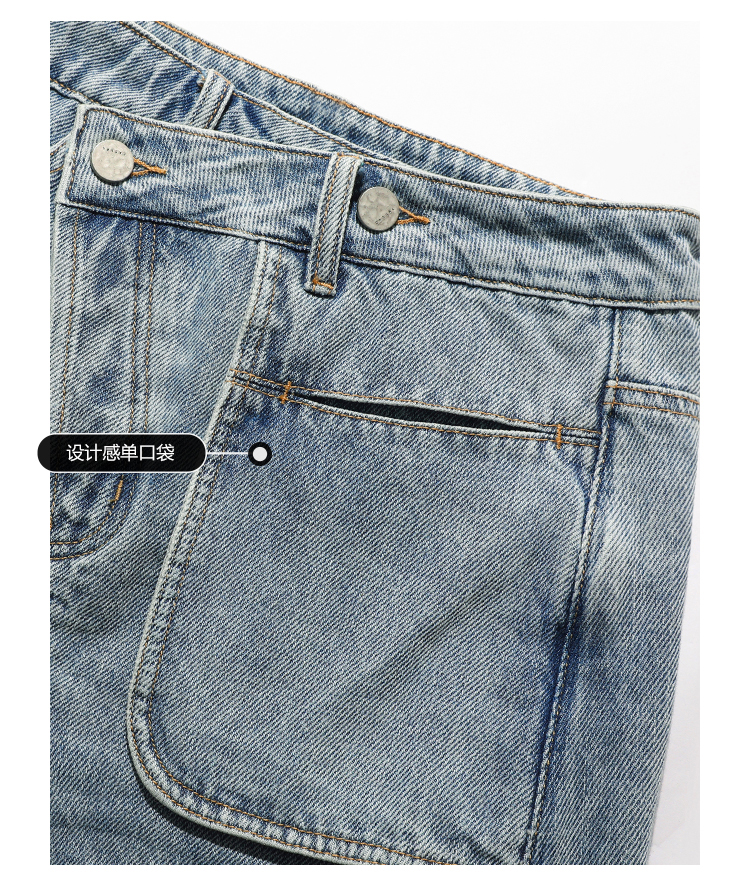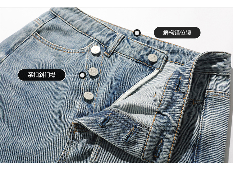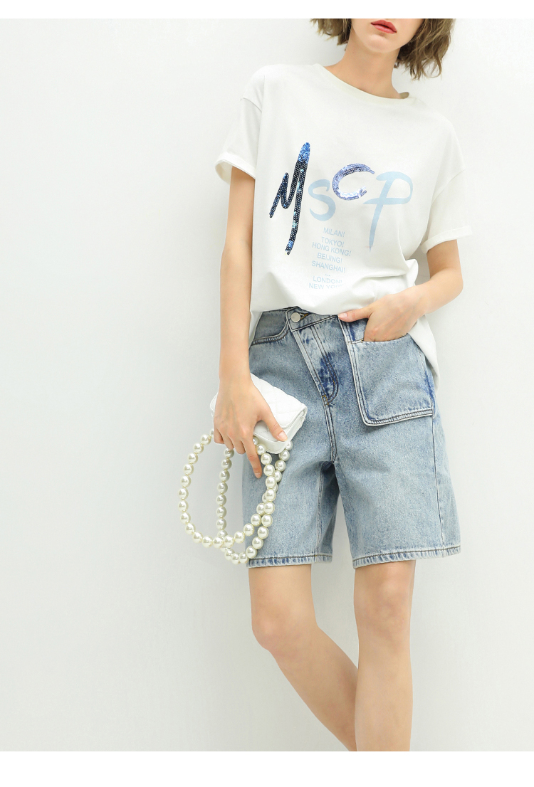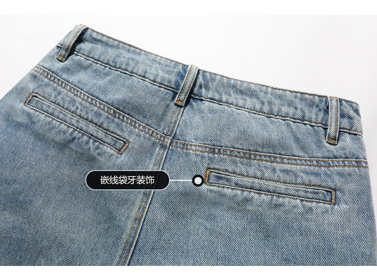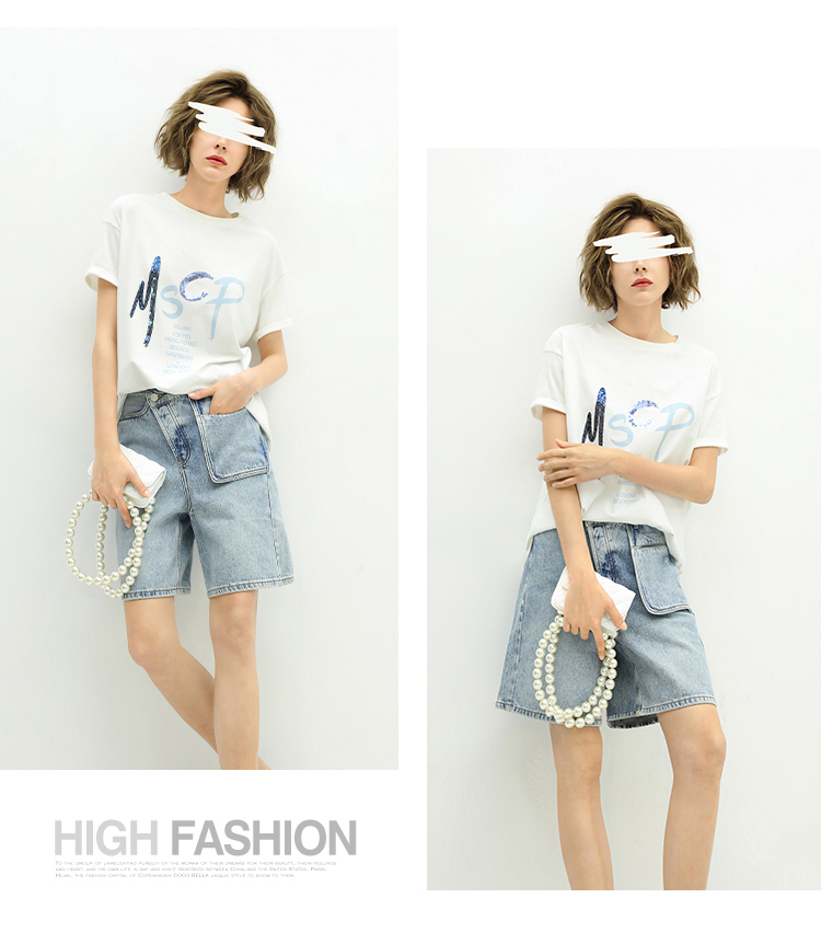 COCOBELLA解构高腰遮胯水洗牛仔蓝短裤女夏季宽松休闲五分裤DN15
