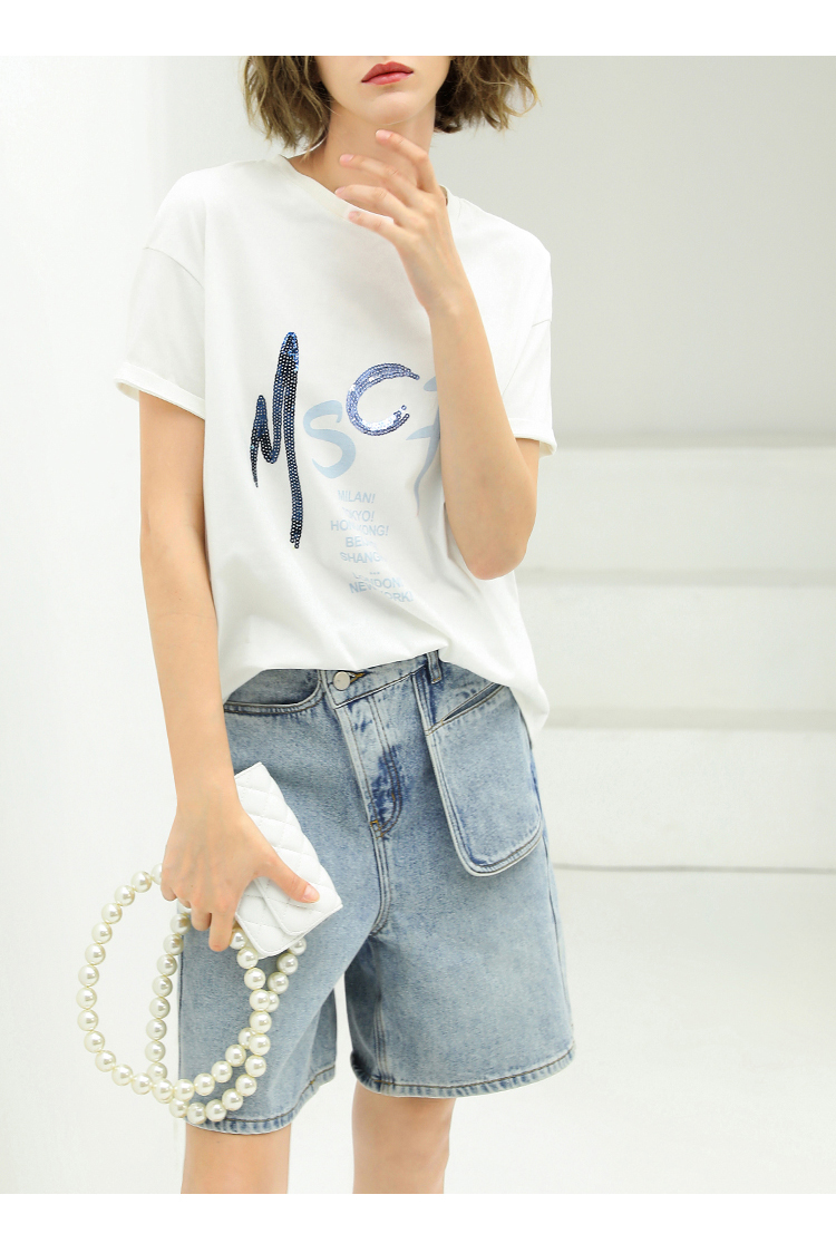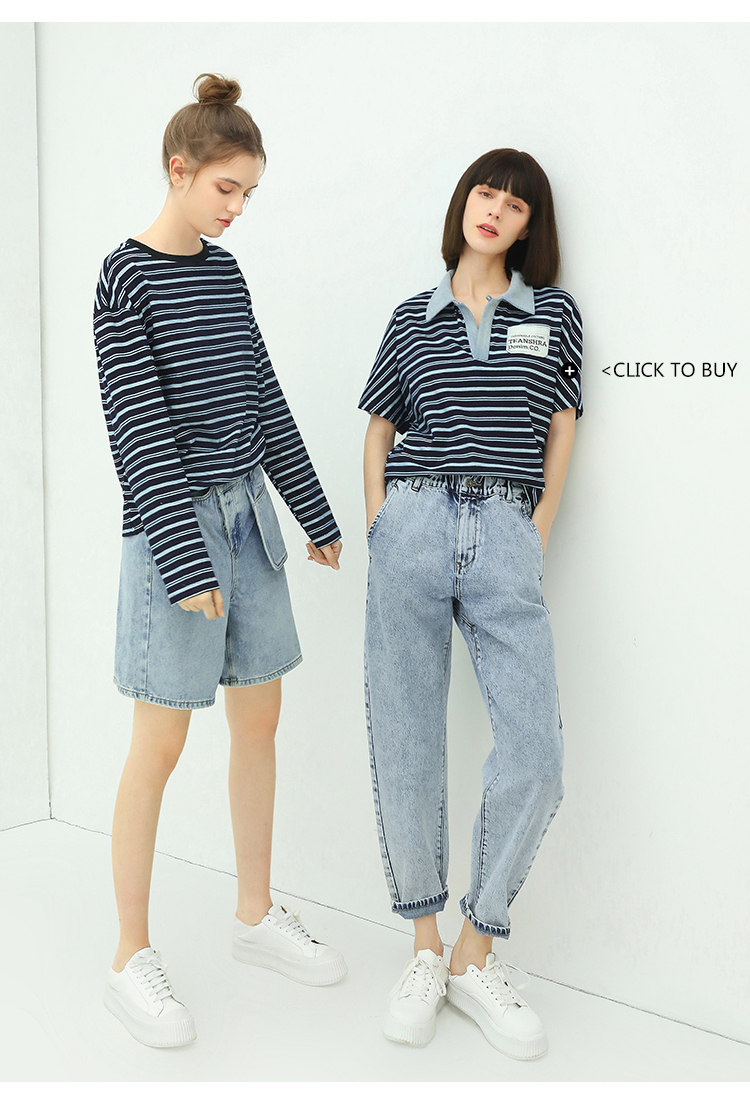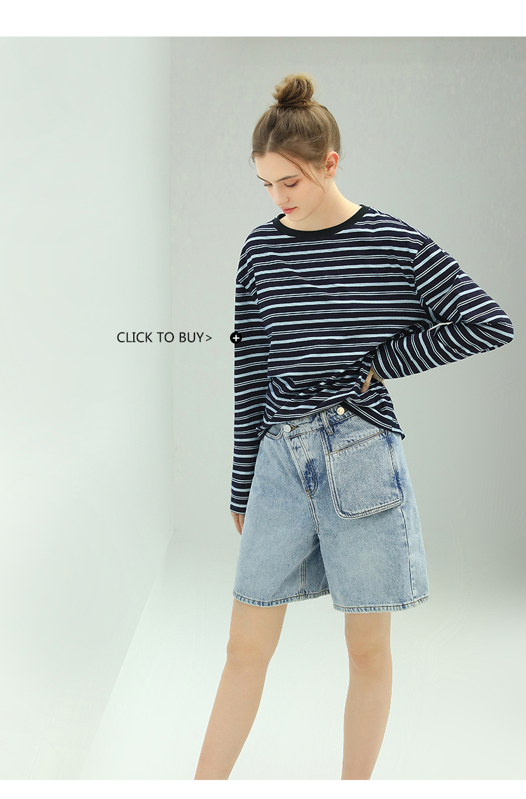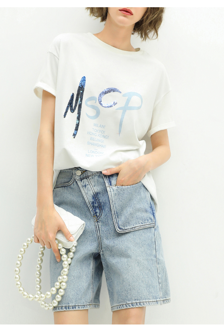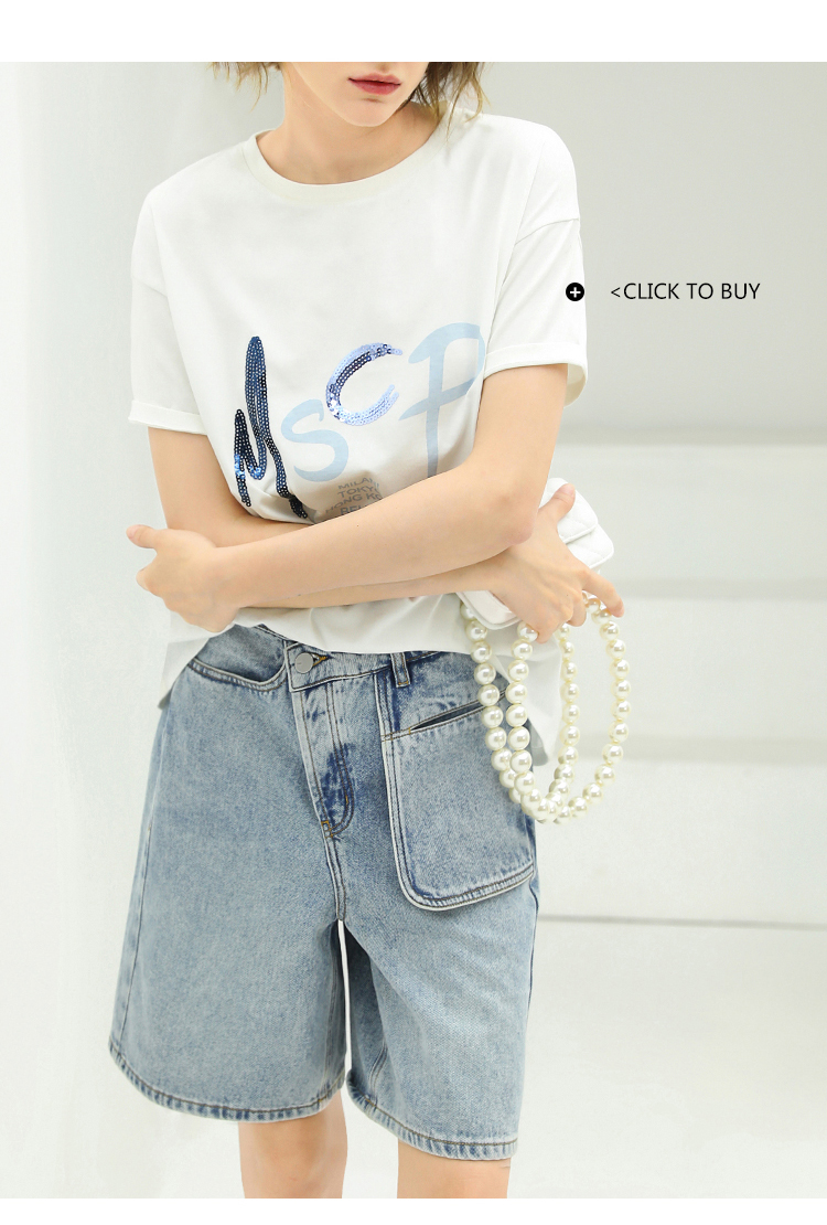 COCOBELLA解构高腰遮胯水洗牛仔蓝短裤女夏季宽松休闲五分裤DN15