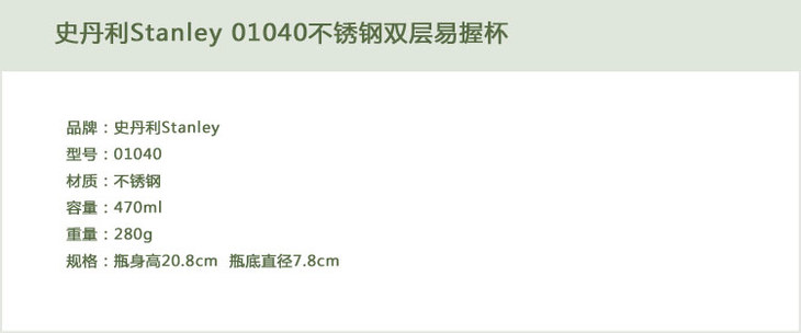 STANLEY马克杯带手柄 灰色10-01040-008
