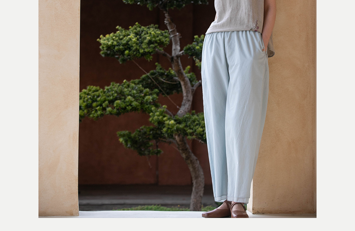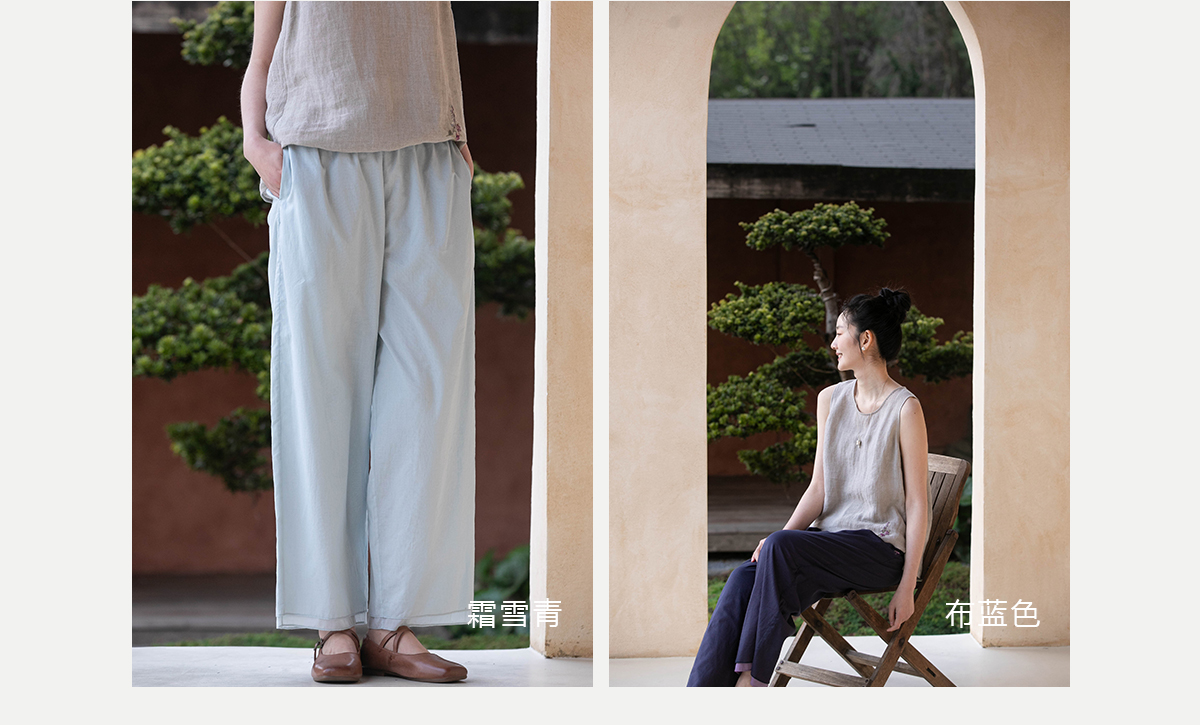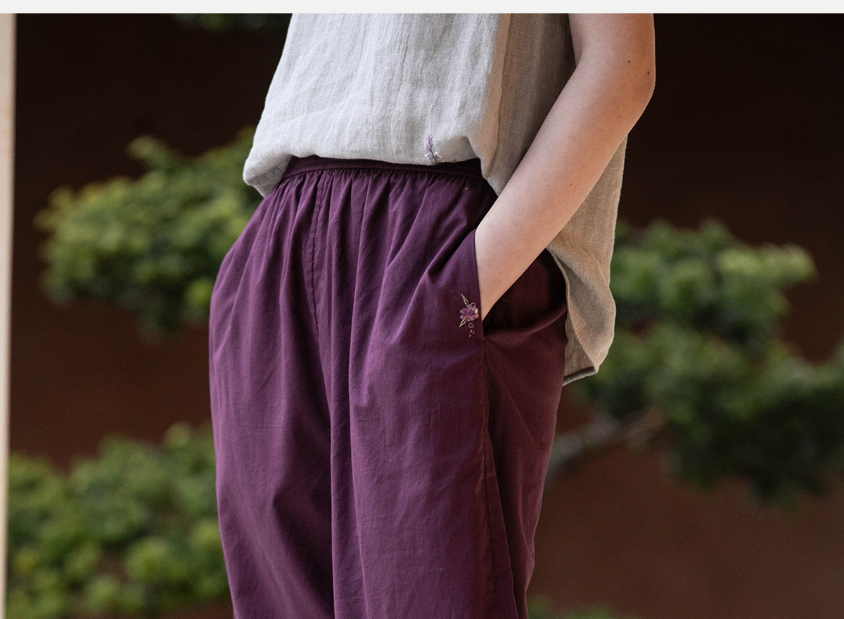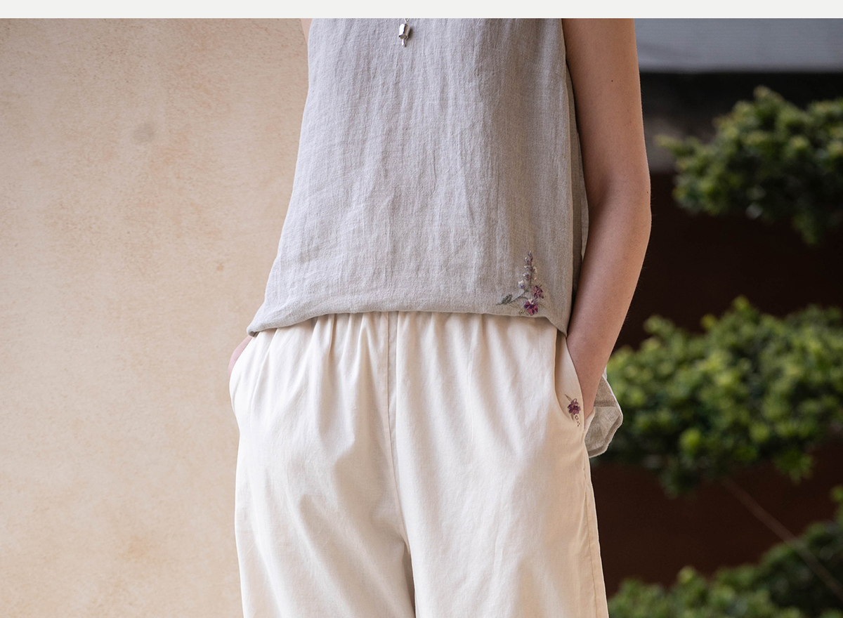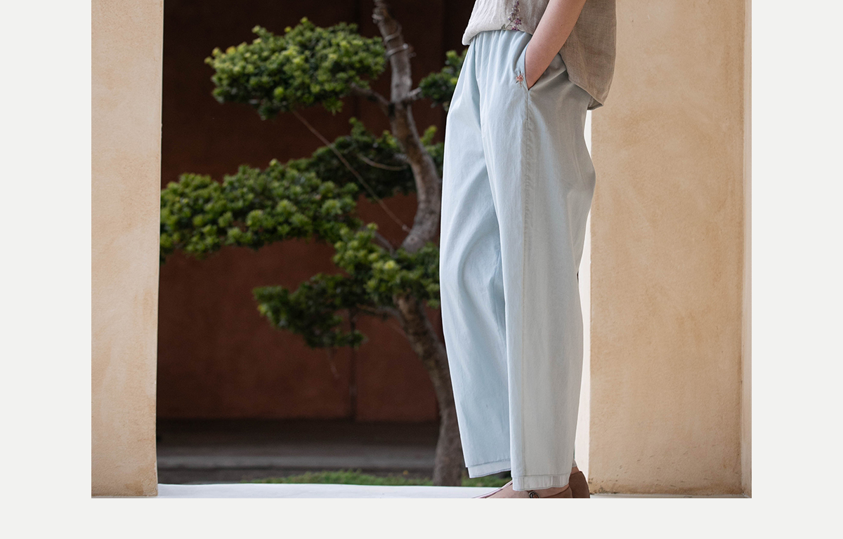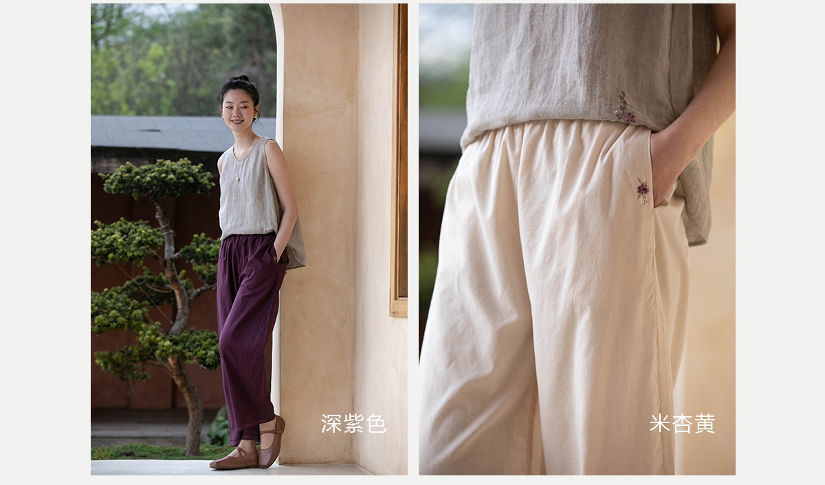 牧衣游原创 手工刺绣100支全棉裤子女夏轻薄柔软百搭休闲裤 予里