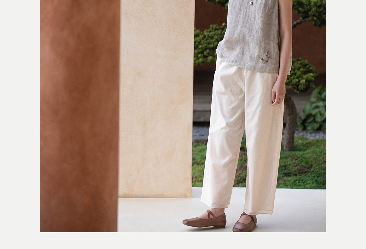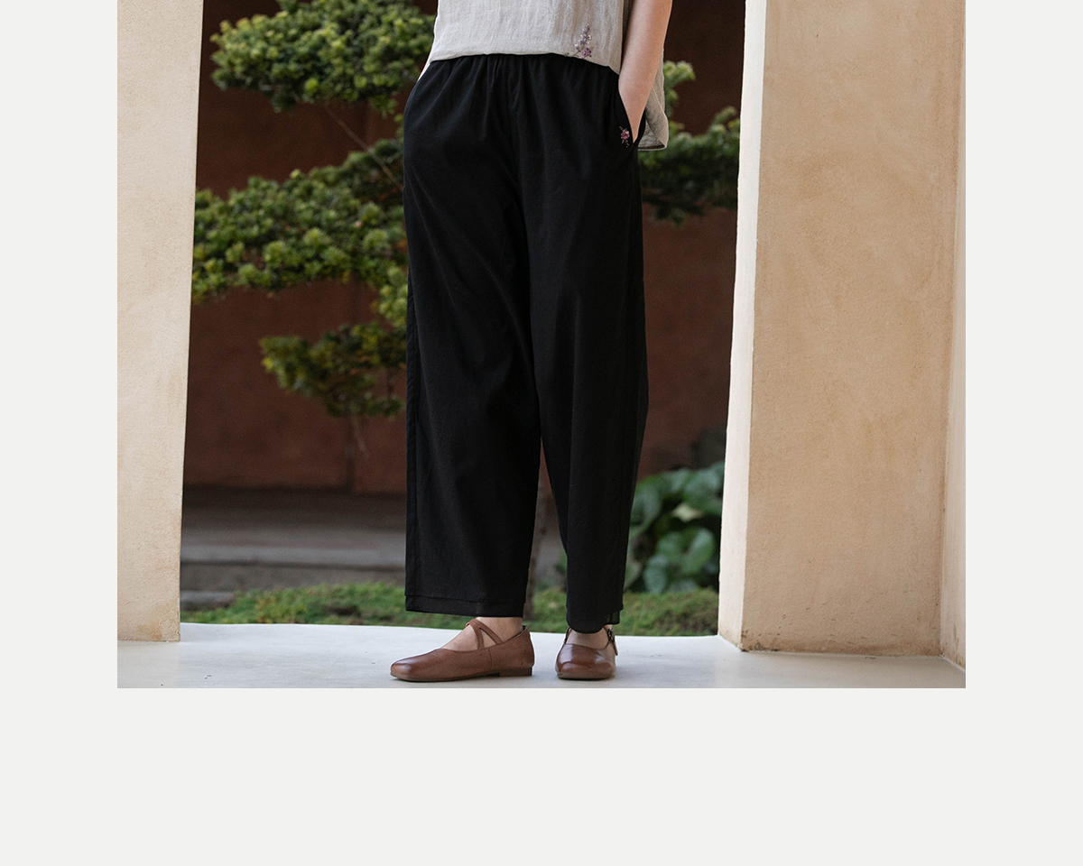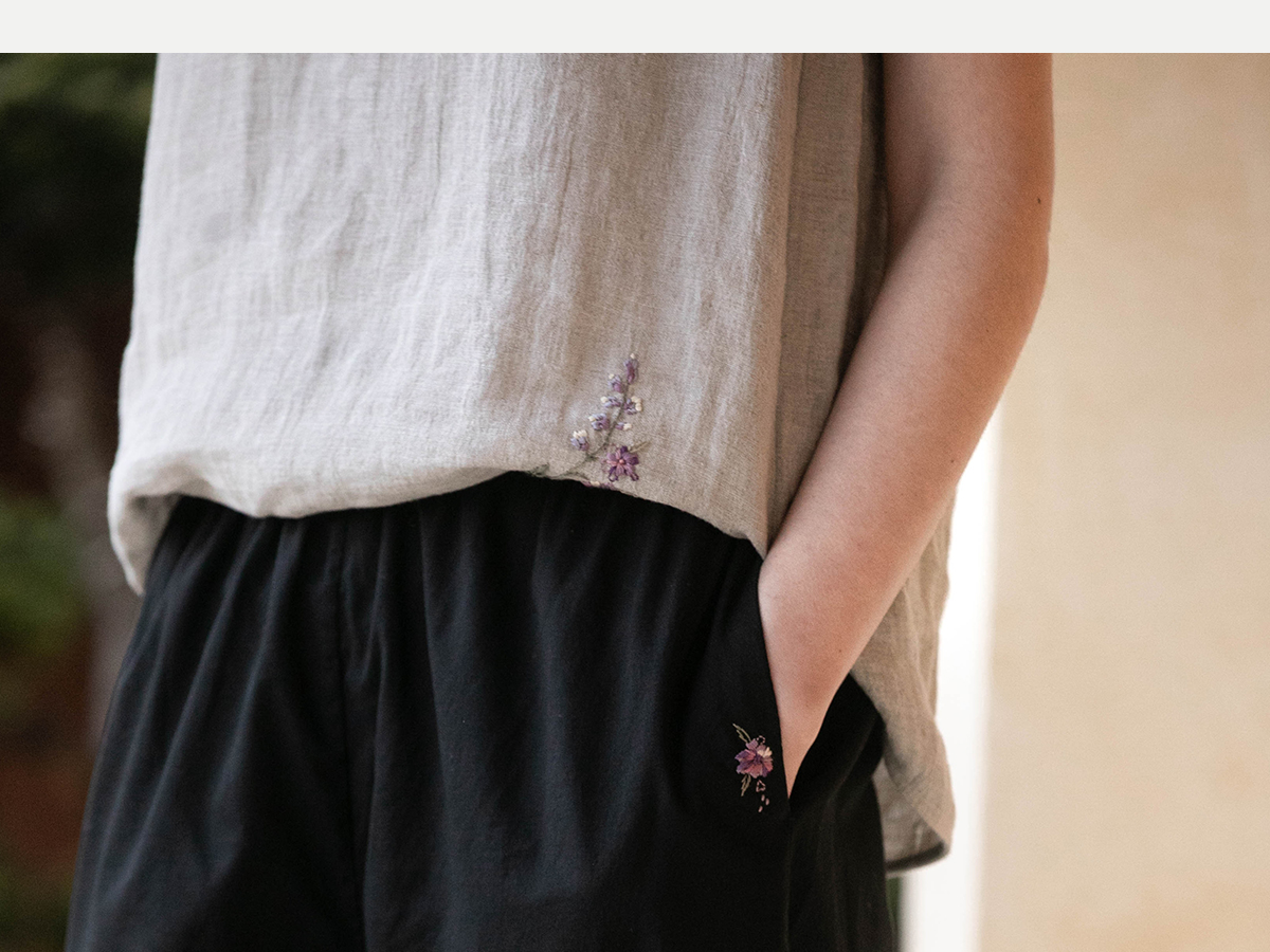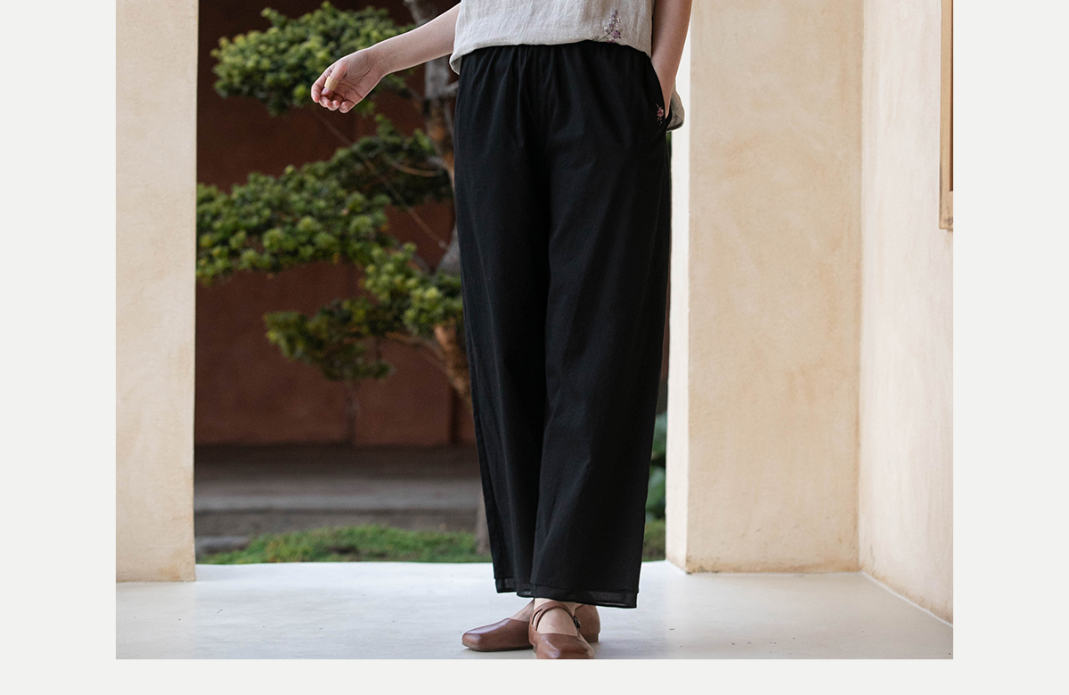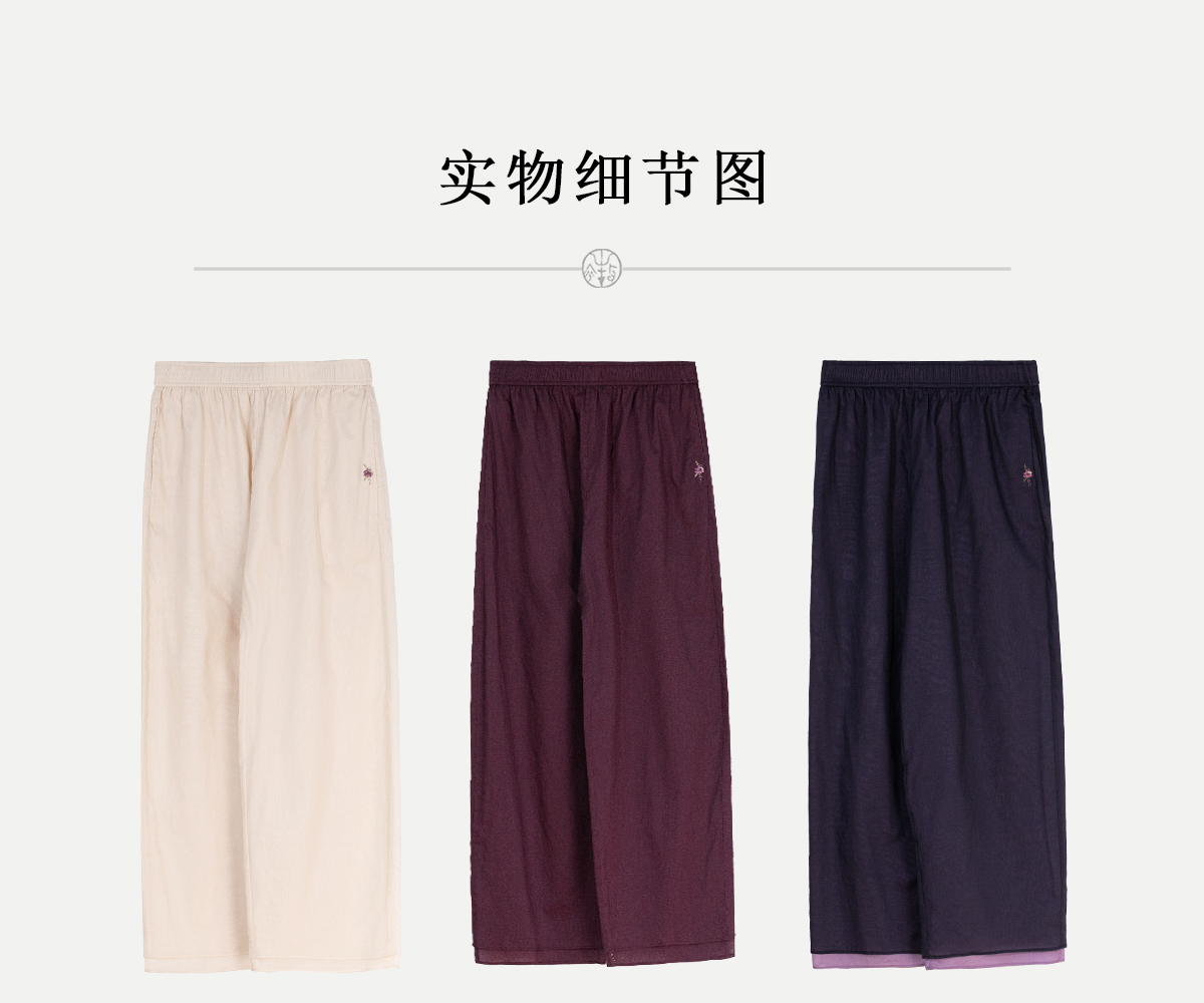 牧衣游原创 手工刺绣100支全棉裤子女夏轻薄柔软百搭休闲裤 予里