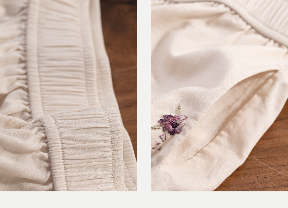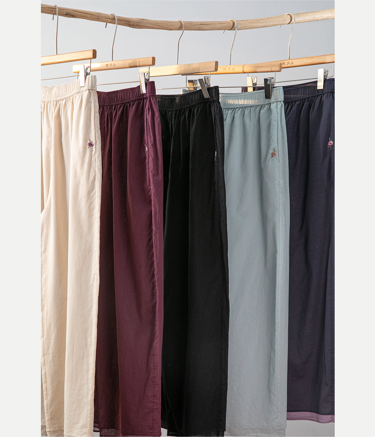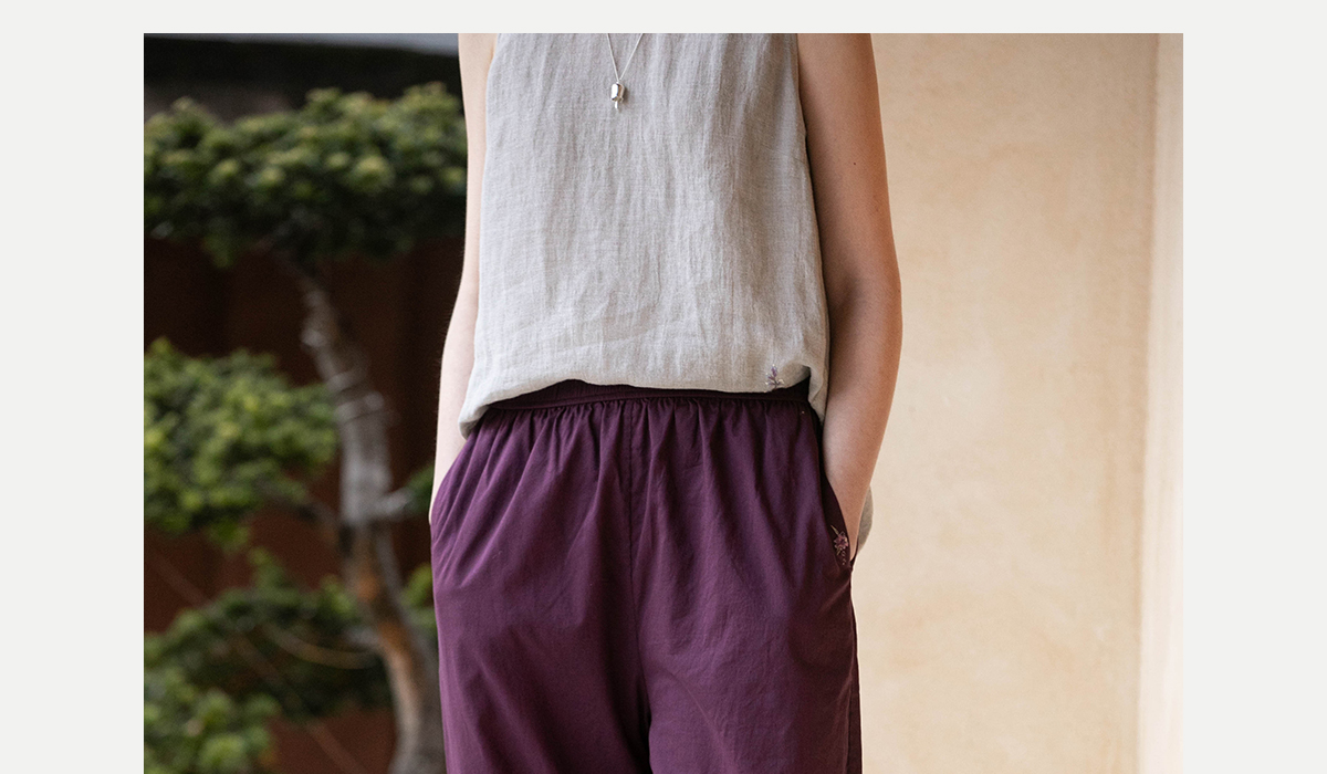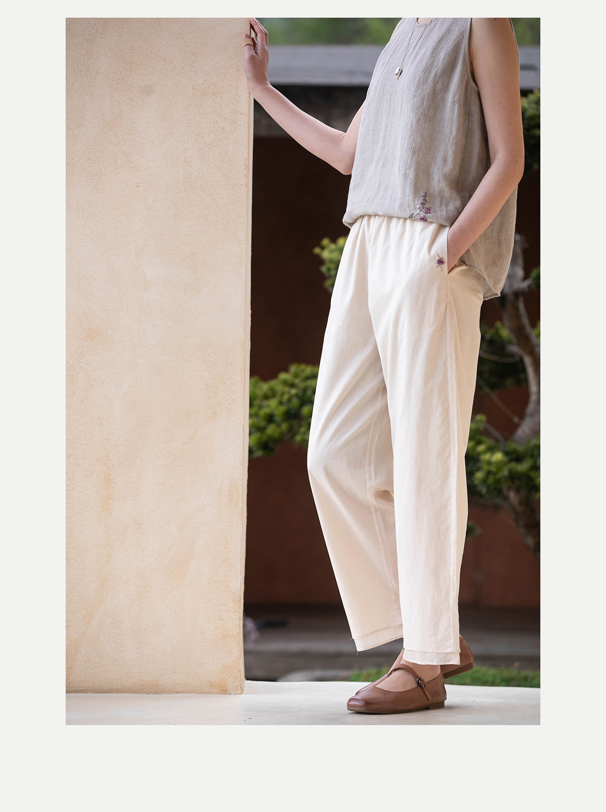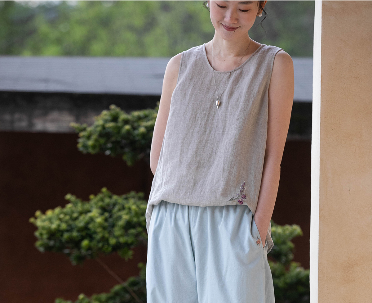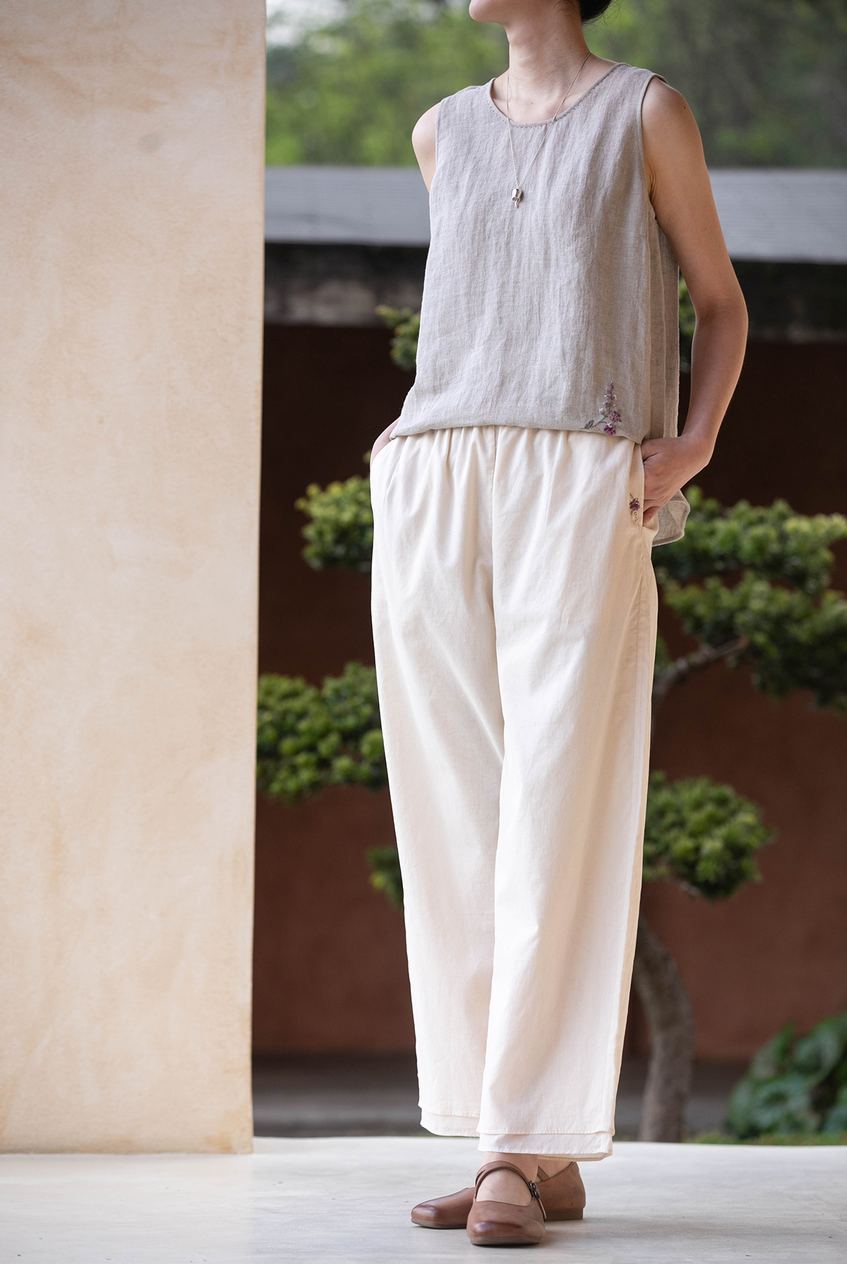 牧衣游原创 手工刺绣100支全棉裤子女夏轻薄柔软百搭休闲裤 予里