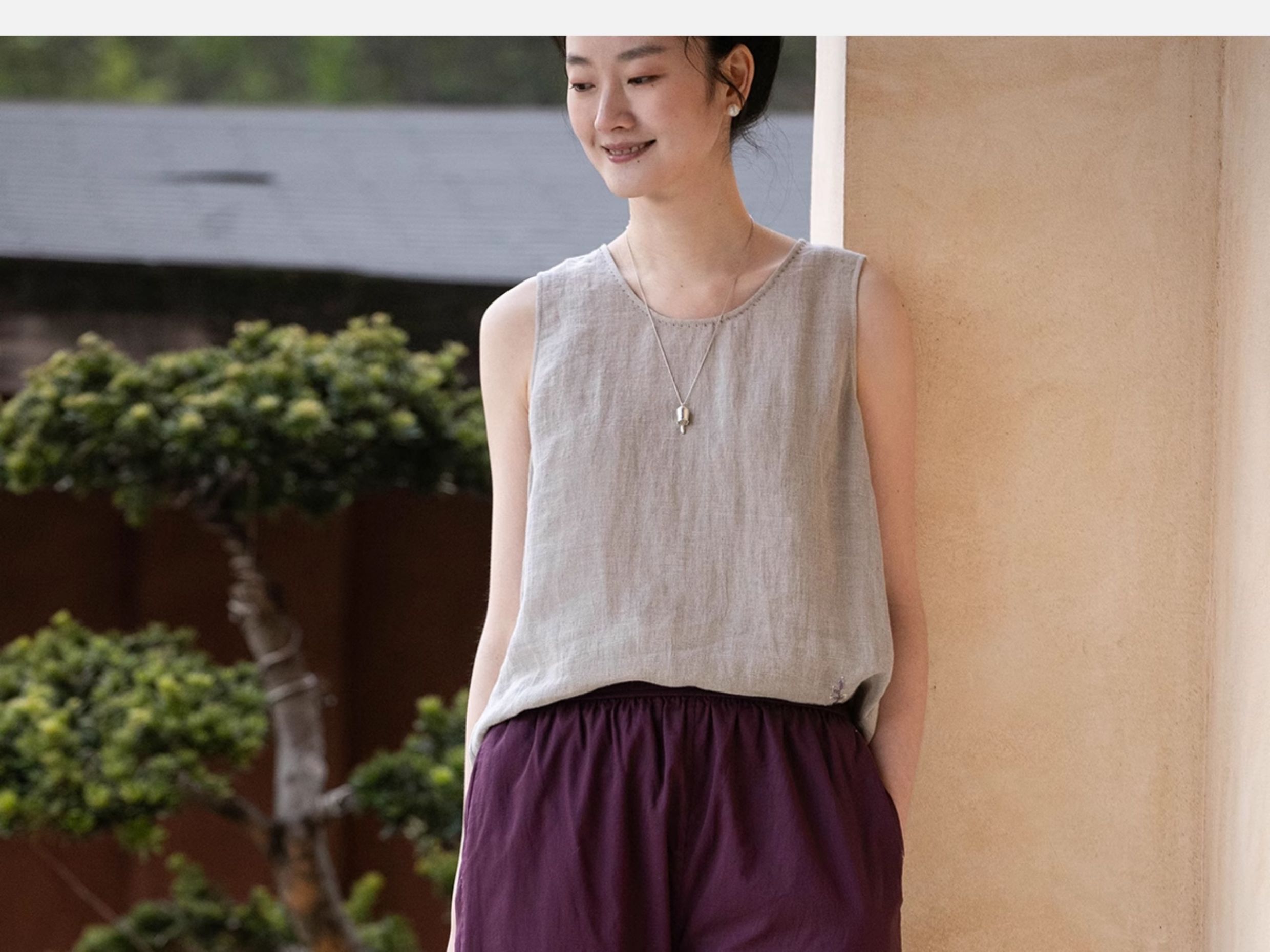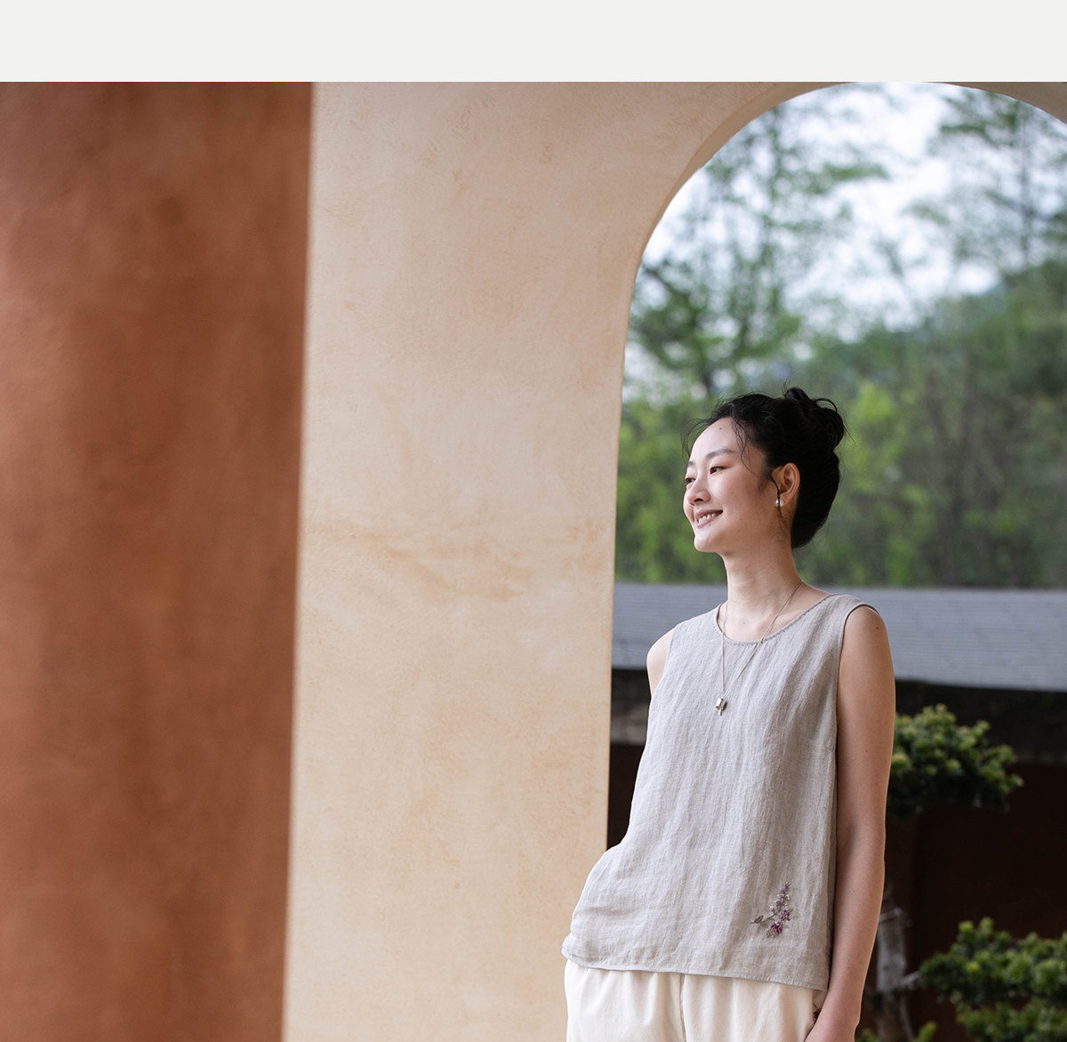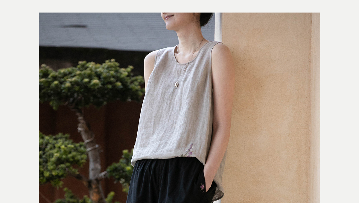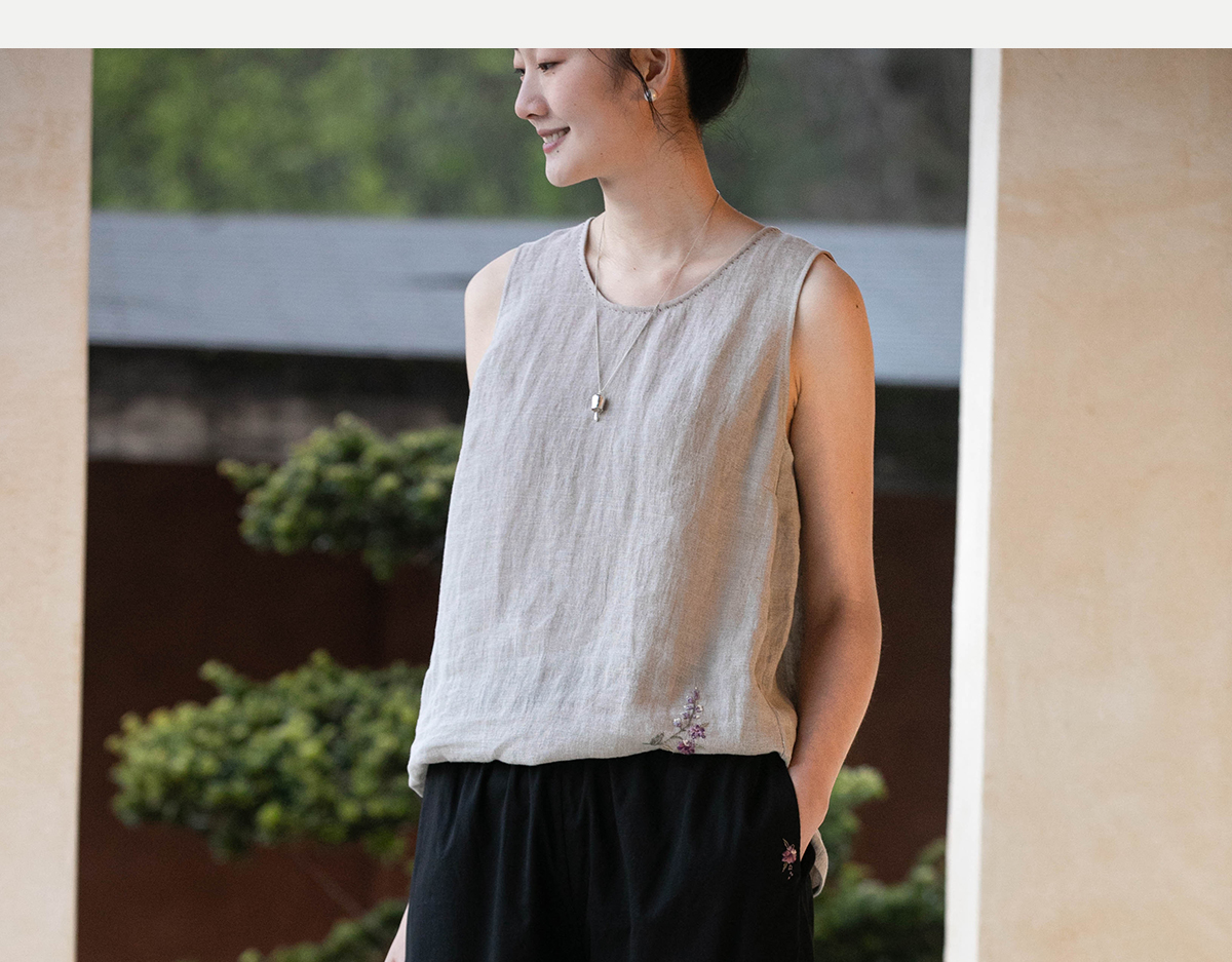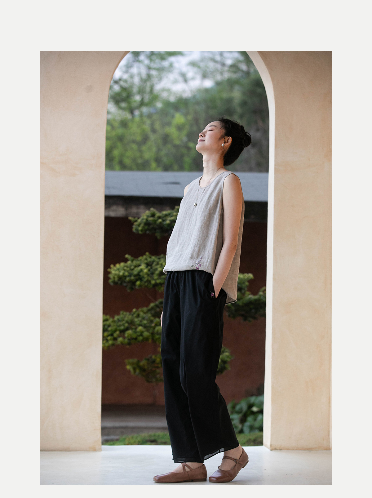 牧衣游原创 手工刺绣100支全棉裤子女夏轻薄柔软百搭休闲裤 予里
