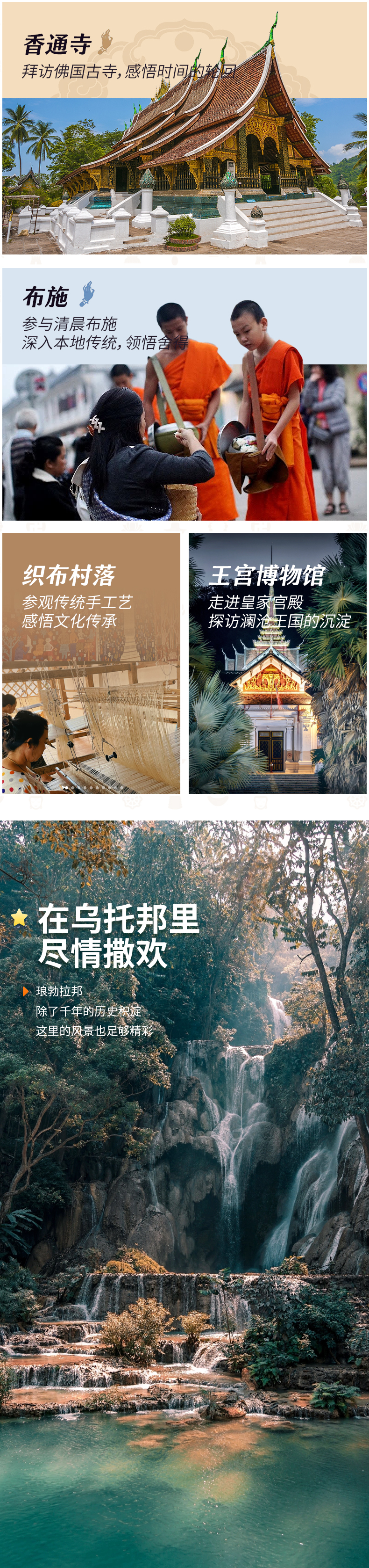 【老挝】北京出发 5天4晚·6~12人中文小团|琅勃拉邦慢生活,东南亚治愈之旅(关西瀑布+香通寺+普西山+湄公河日落