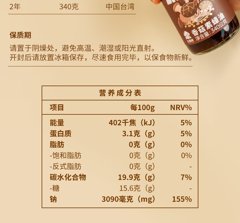 香菇素蚝油340g 全食物日记×七菇鲜调味系列