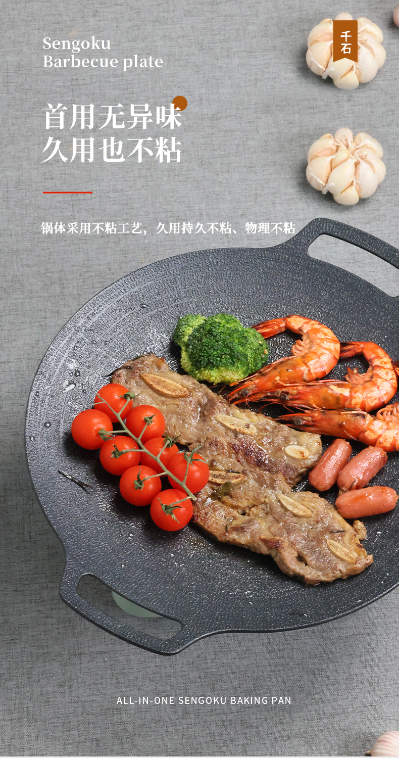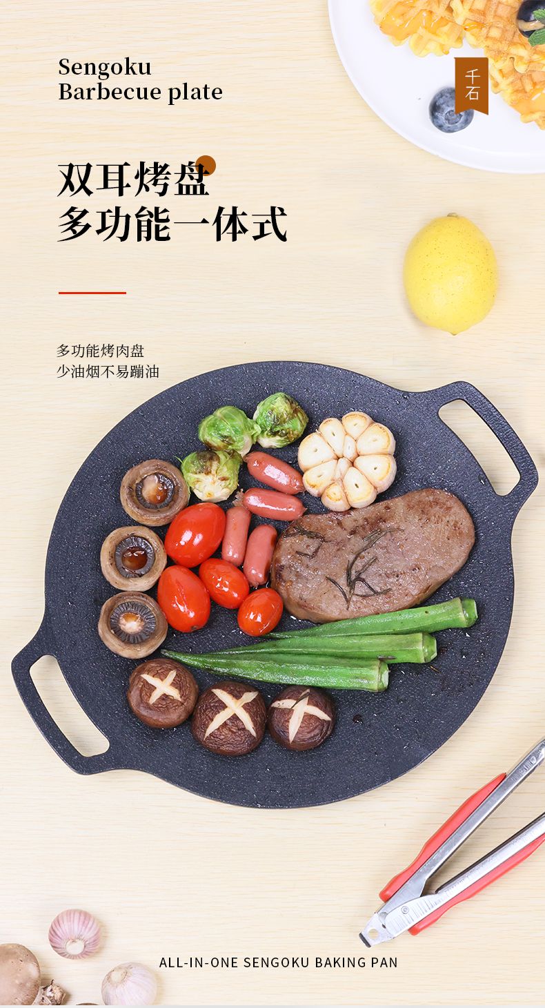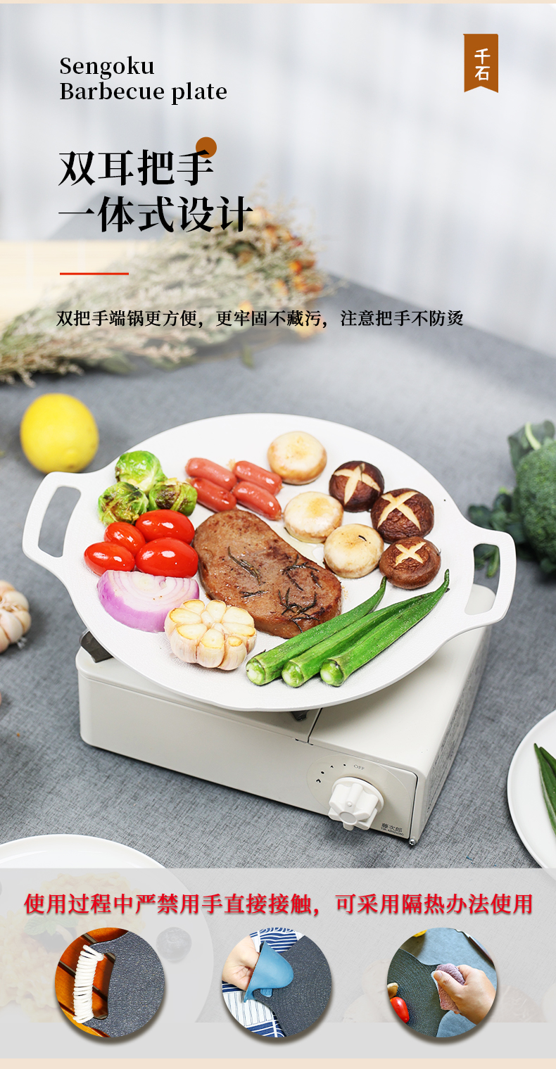 赠防烫夹1对 | 藤次郎 日式双耳不粘烧烤盘255x180x35mm(明火用)[福利品]