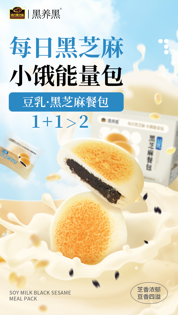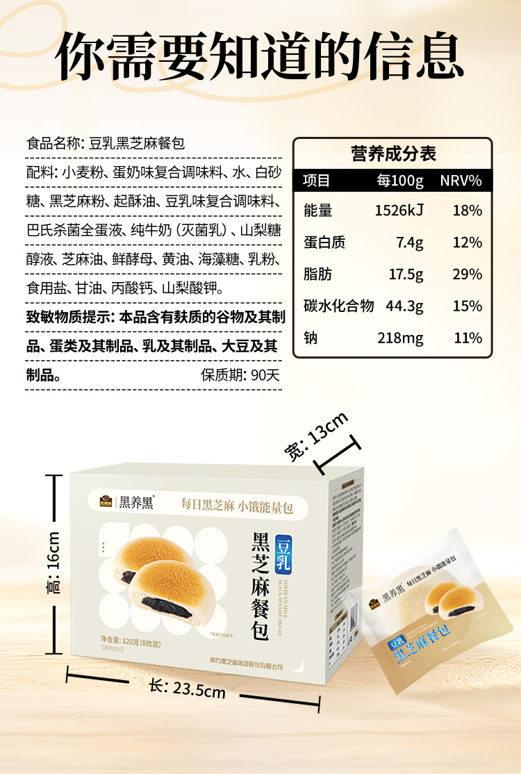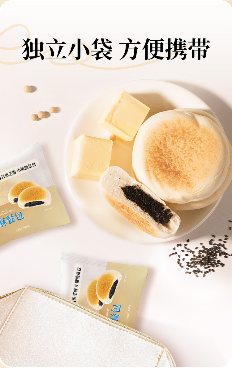南方黑芝麻豆乳黑芝麻餐包320g(8枚装)松软奶香味办公室宿舍代餐充饥零食