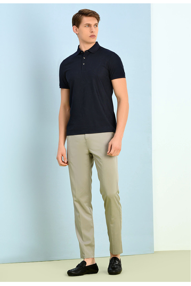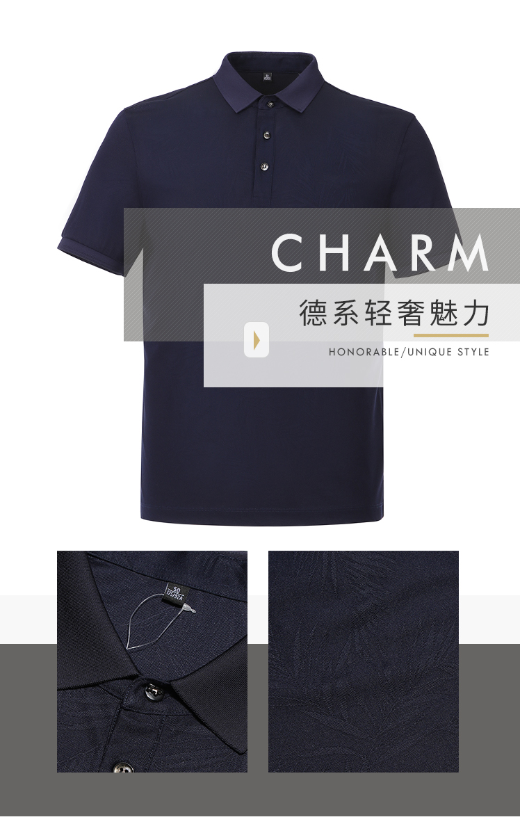 BRAUN BUFFEL/布兰施男士暗纹都市百搭男士短袖T恤翻领男式POLO衫