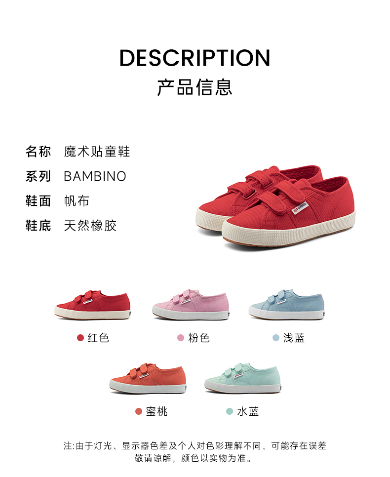 【2026新春专享】SUPERGA童鞋舒适透气魔术贴S00CCT0W2U基础款低帮男女童帆布鞋女(瑕疵品不退不换)
