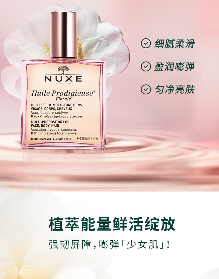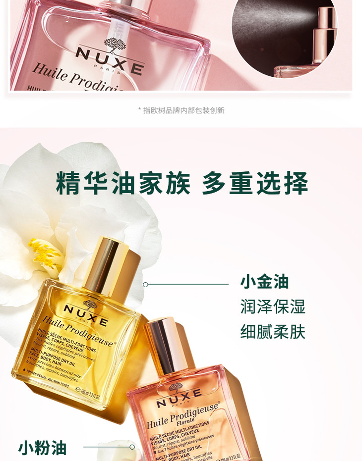 【清仓好价】Nuxe欧树粉漾花语多效干爽护理油10ml 粉油中样*2(23.6)