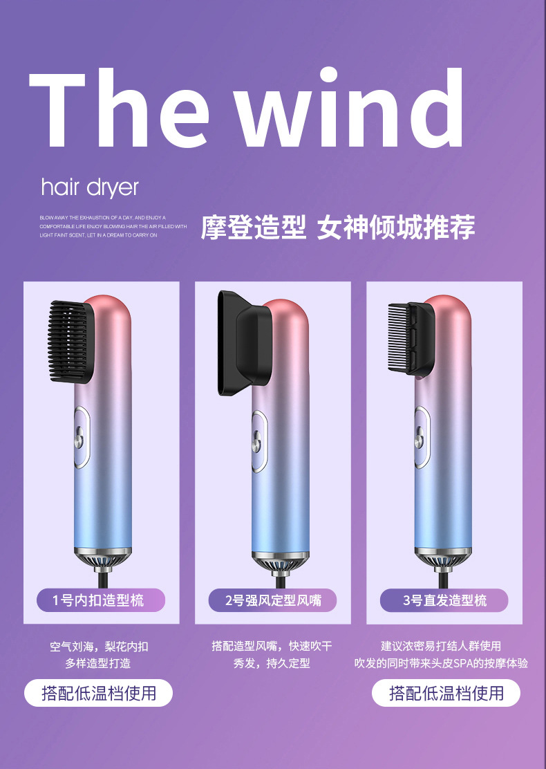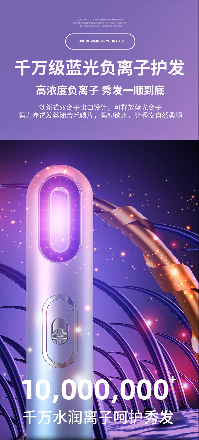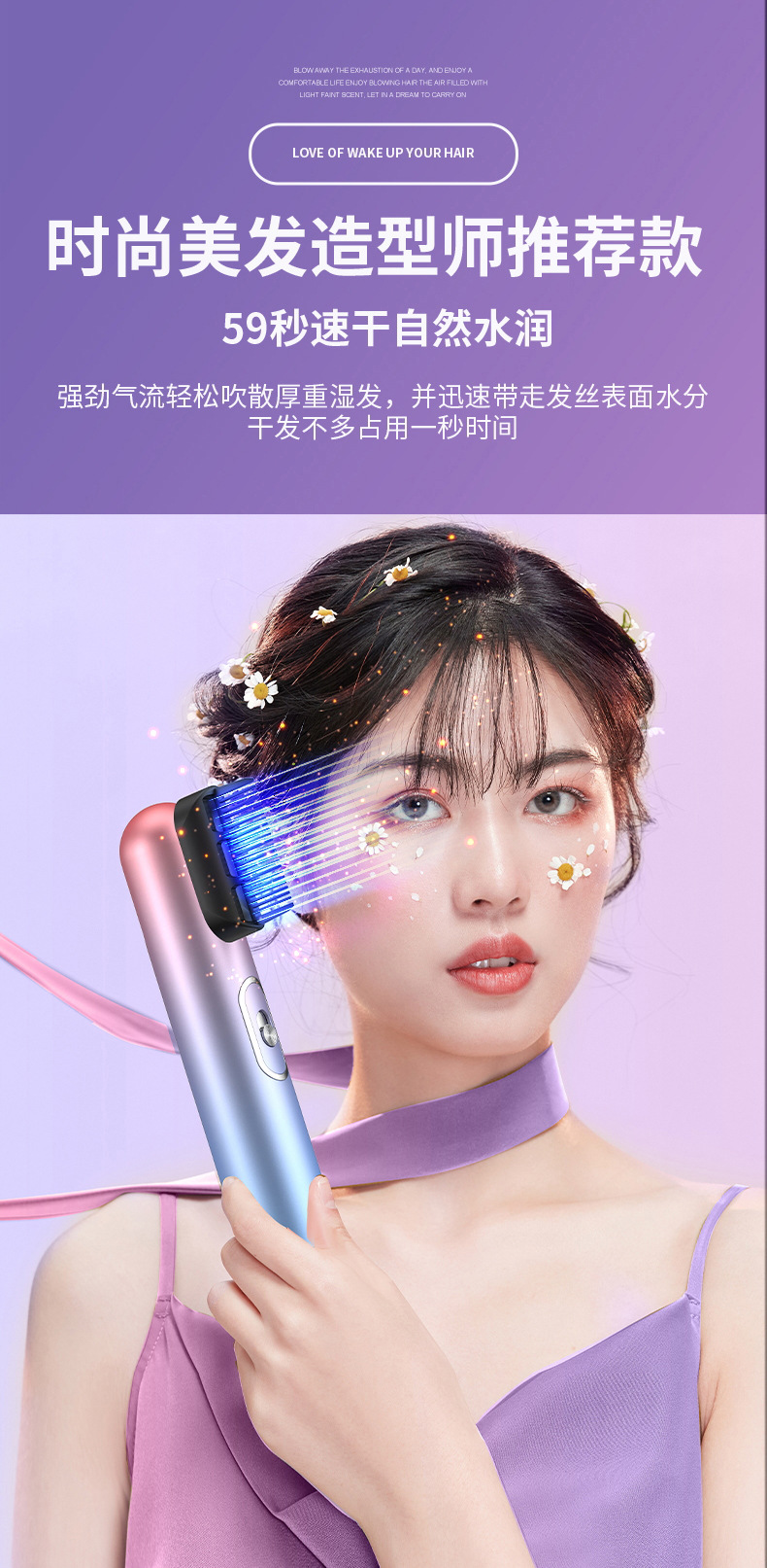 如诗一般的三合一新概念便携吹风机,高转速静音,家用负离子电吹风,护发速干吹风。让你轻松摆脱忙碌的生活,恣意享受属于自己的美好时光!