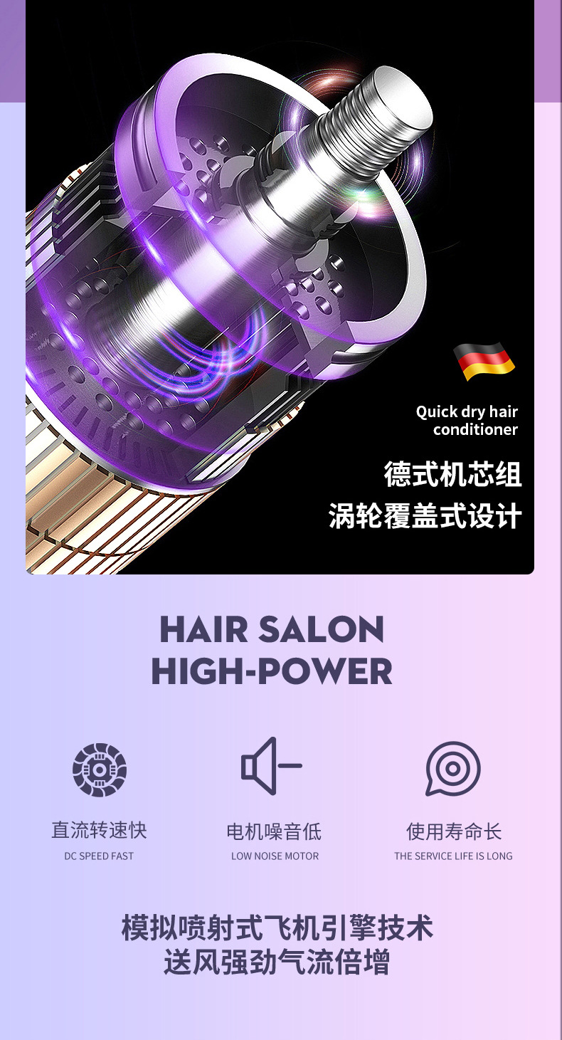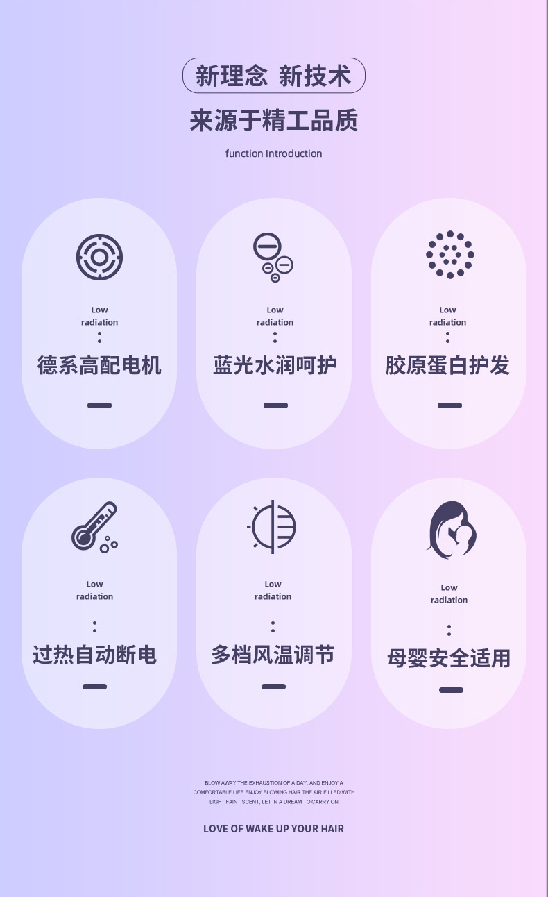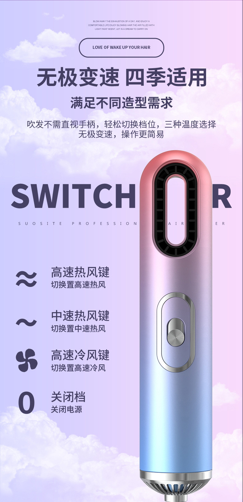 如诗一般的三合一新概念便携吹风机,高转速静音,家用负离子电吹风,护发速干吹风。让你轻松摆脱忙碌的生活,恣意享受属于自己的美好时光!