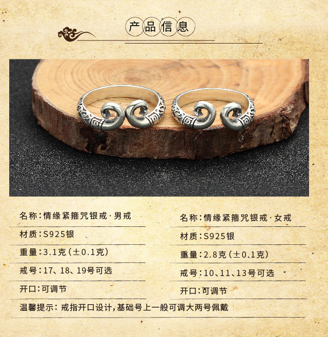 祥云紧箍咒情侣戒指 925银 【情缘】