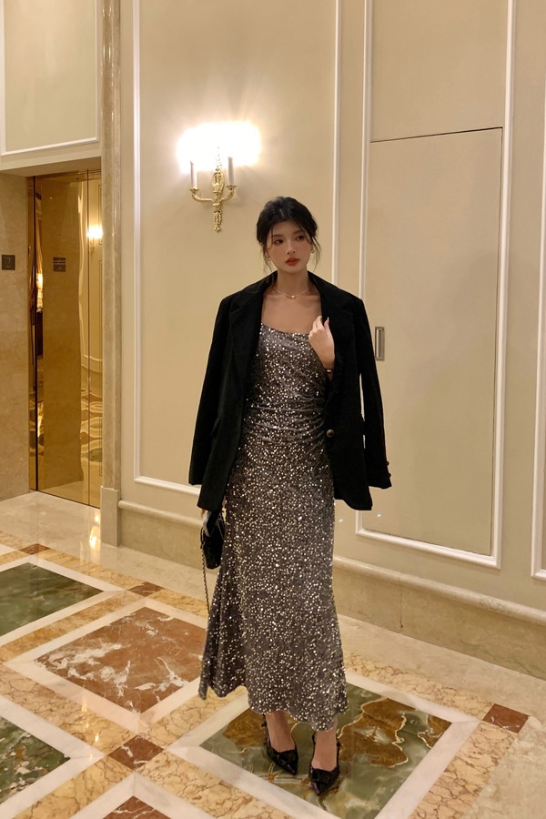 ELLA JADE 高级感亮片晚会修身气质礼服连衣裙 21644