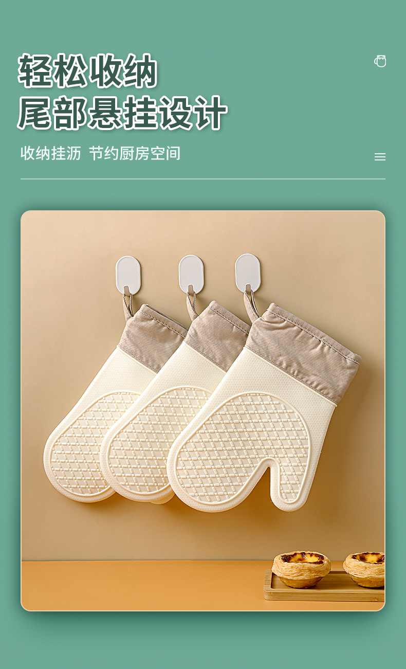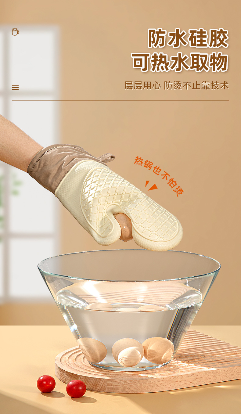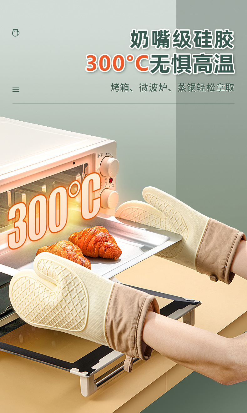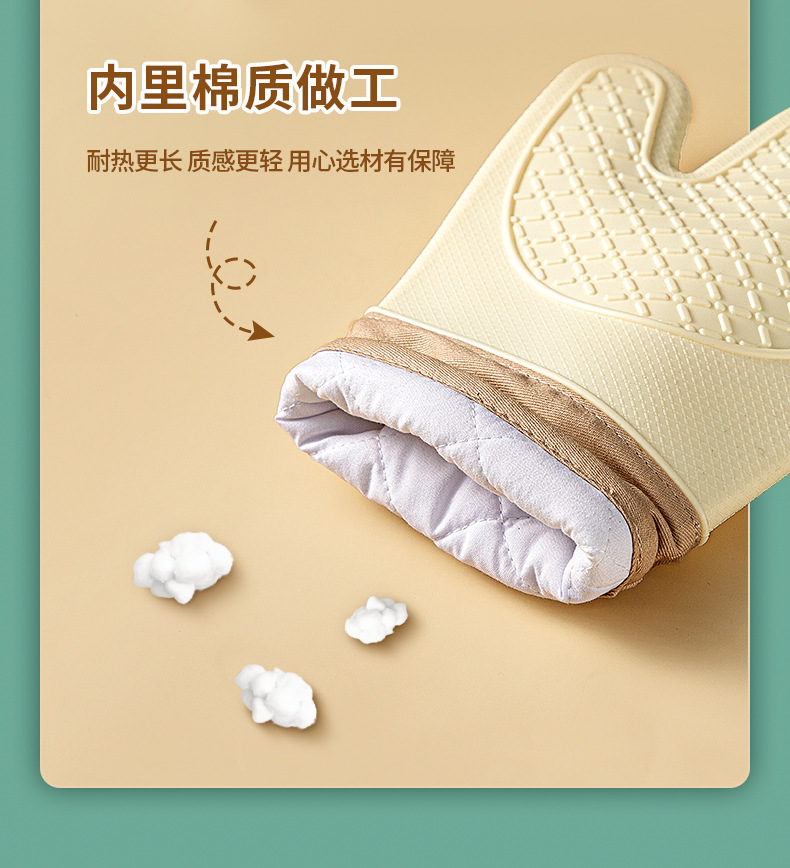 「4层加厚!奶嘴级硅胶」五指硅胶防烫手套 微波炉防滑加厚加棉隔热手套高温烘焙隔热手套厨房用品