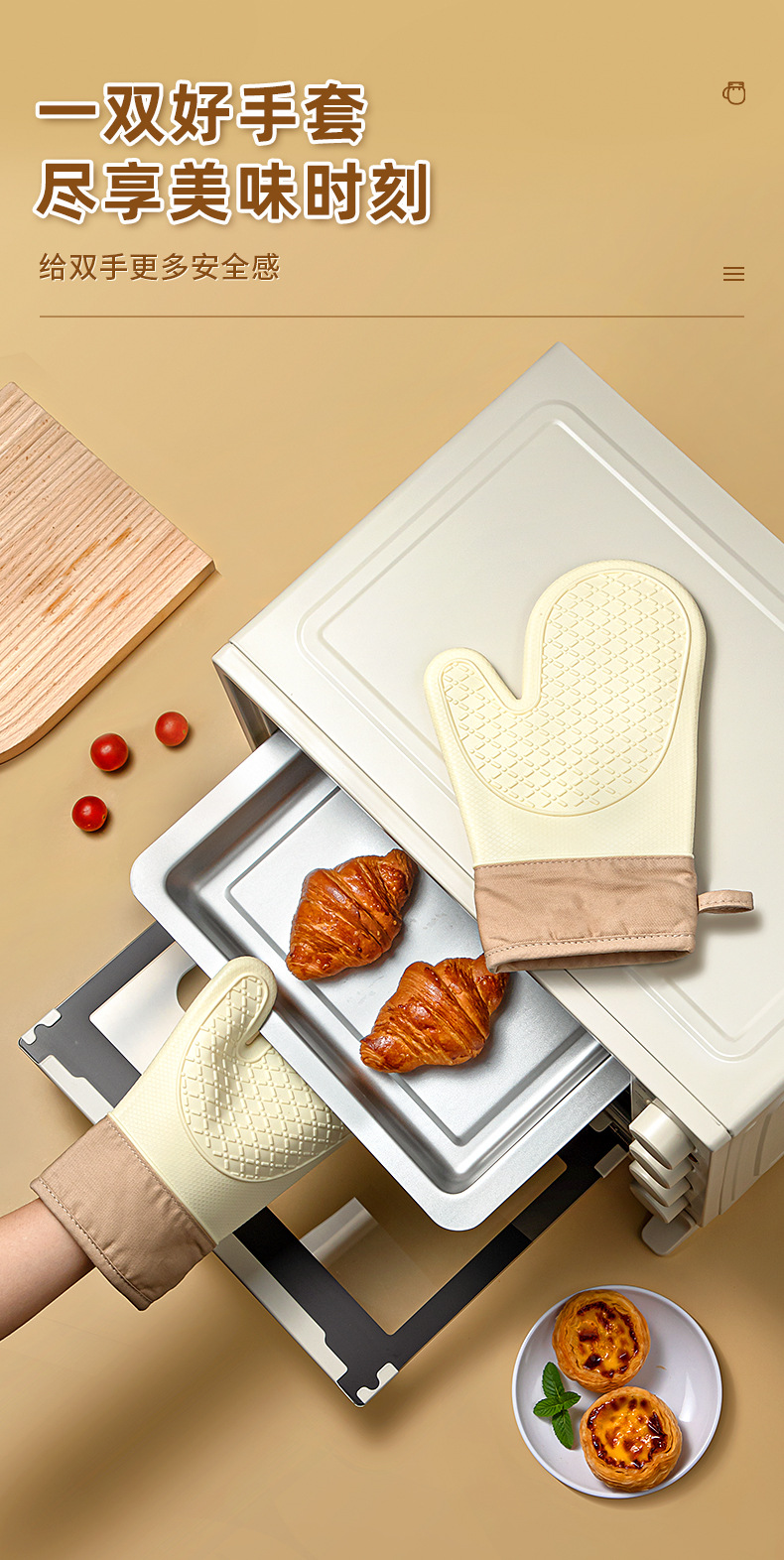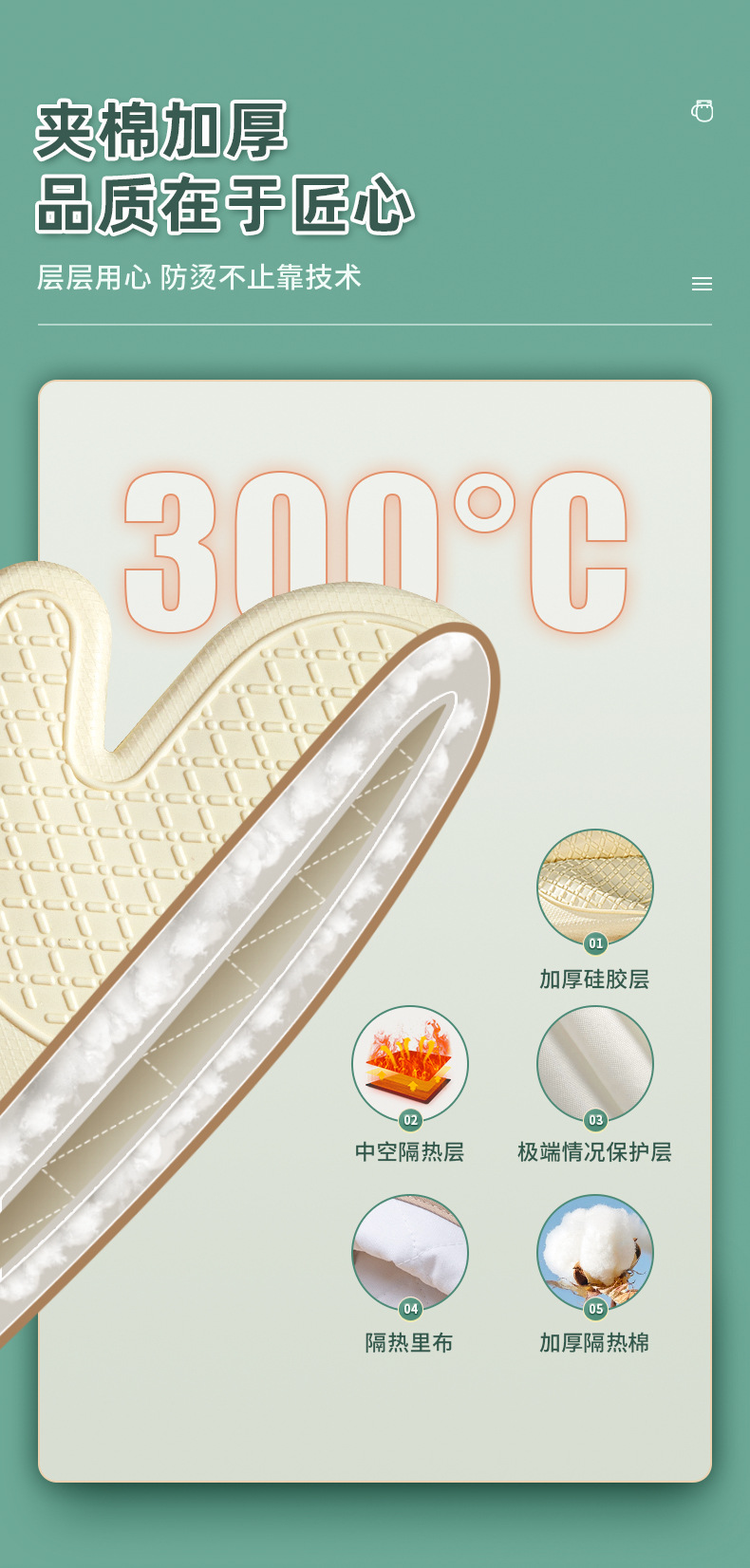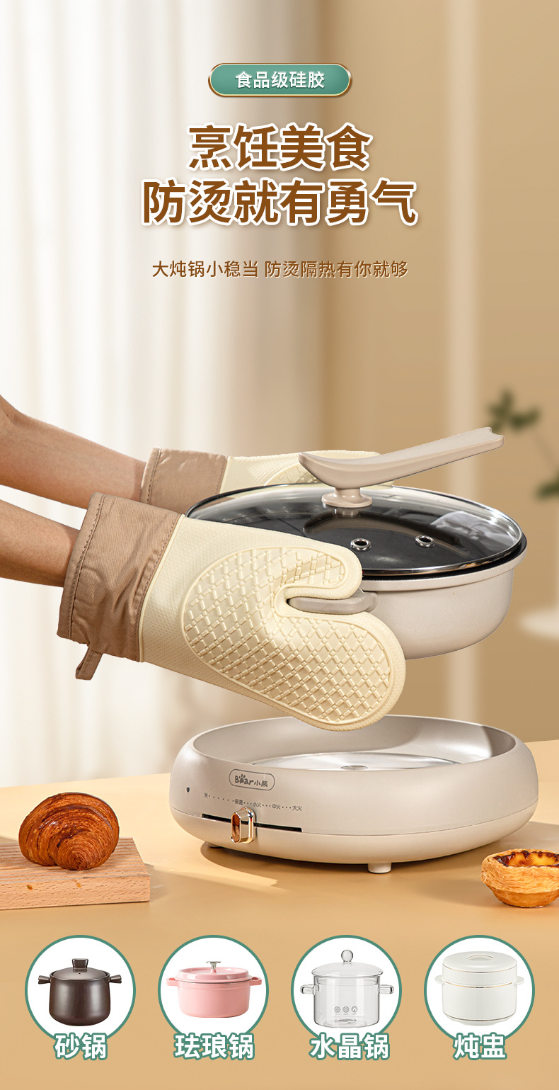 「4层加厚!奶嘴级硅胶」五指硅胶防烫手套 微波炉防滑加厚加棉隔热手套高温烘焙隔热手套厨房用品