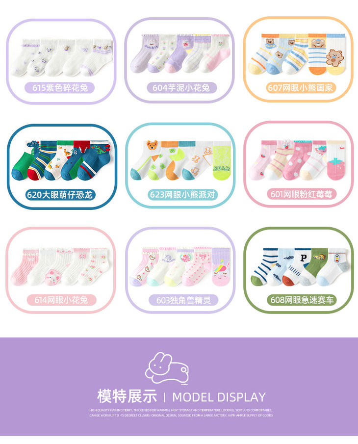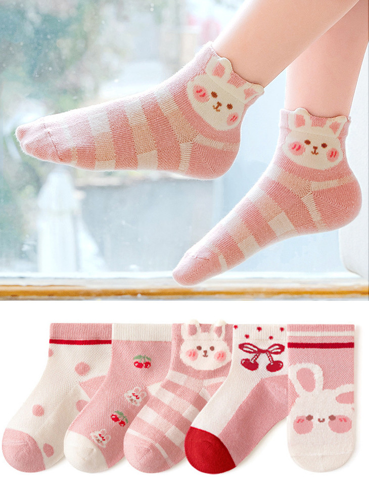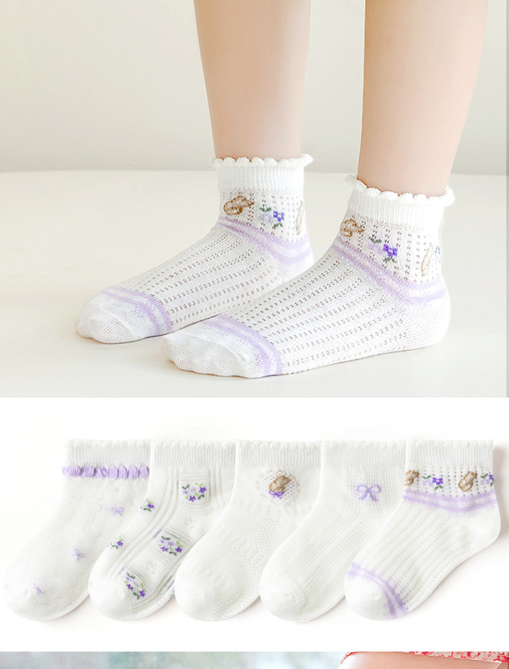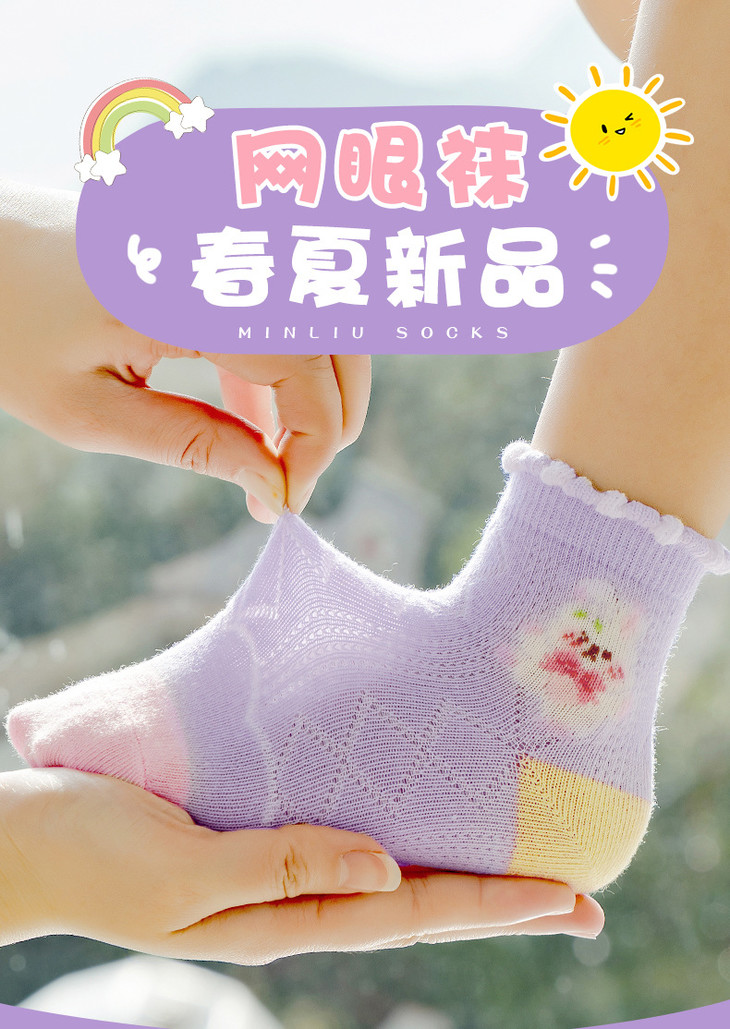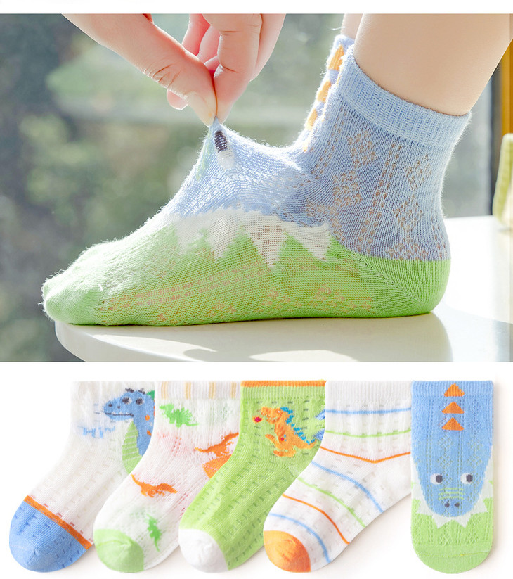 【夏季网眼五双装】2024儿童袜子薄款棉袜男女童网眼宝宝袜春夏卡通船袜短袜