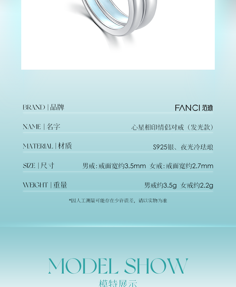 【发光款 心星相印情侣对戒】范琦光年系列 闭口戒指 下单即赠精美礼盒+顺丰空运+运费险