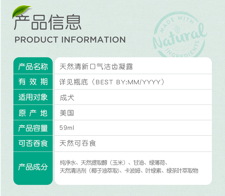 多美洁凝胶狗狗漱口水洁齿水天然清新口气去牙结石去口臭洁齿凝露