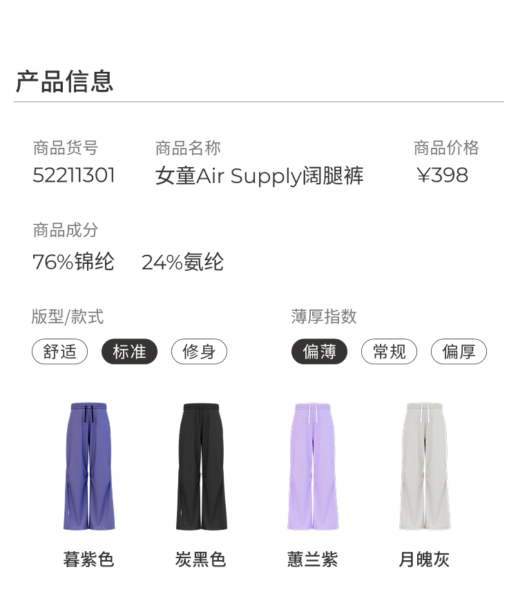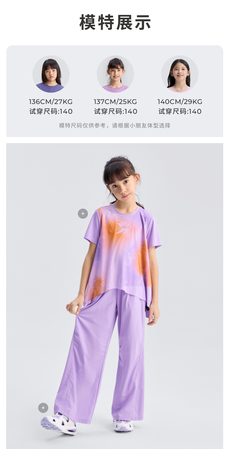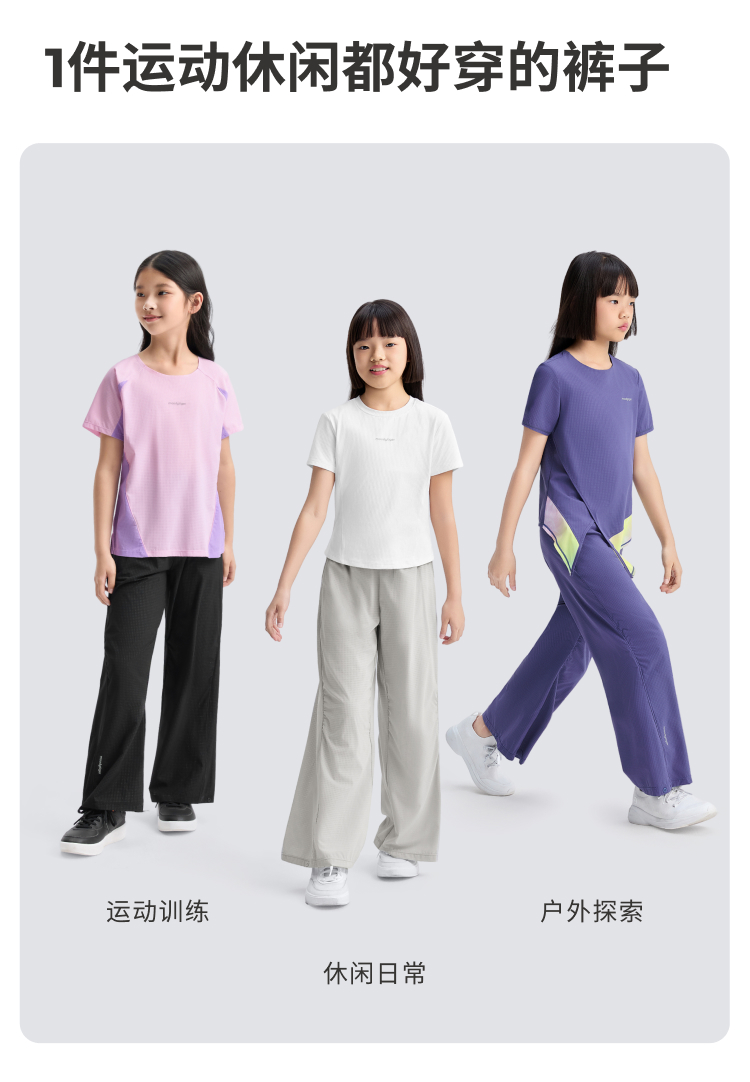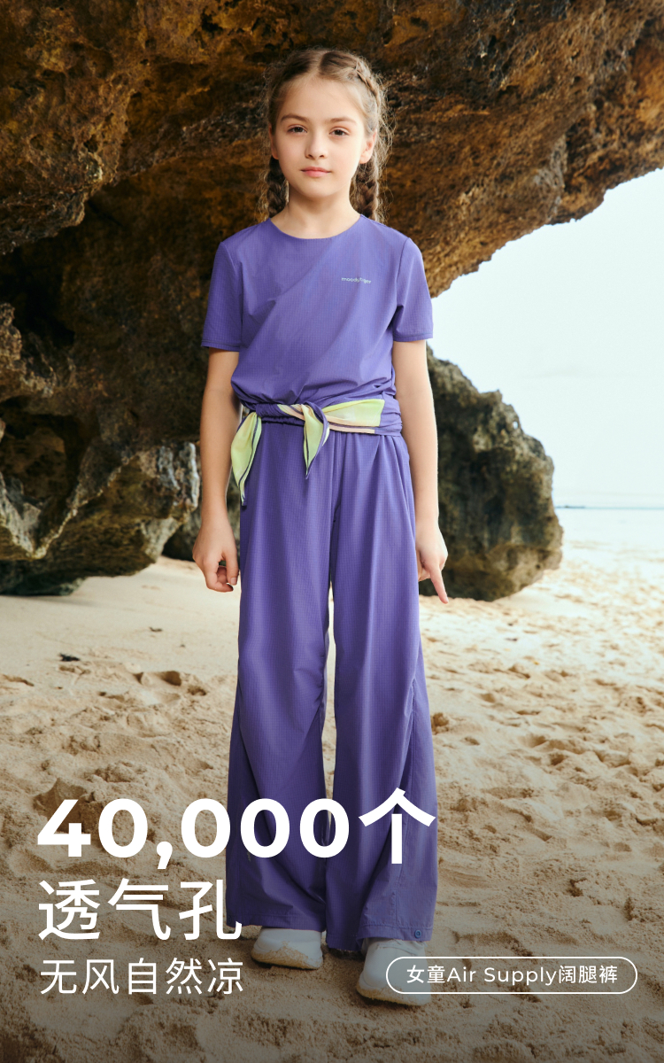 【DR暑假】moodytiger25女童夏新Air supply轻装排汗速干阔腿裤52211301