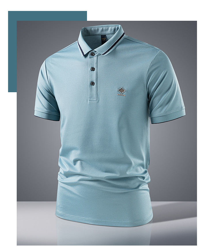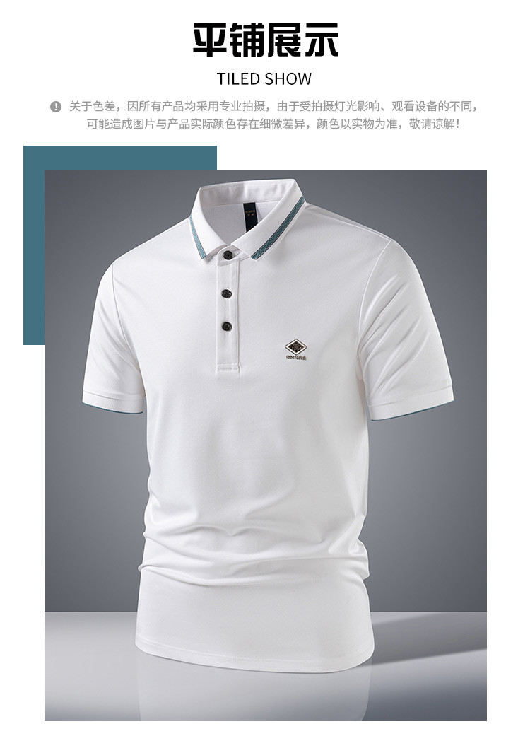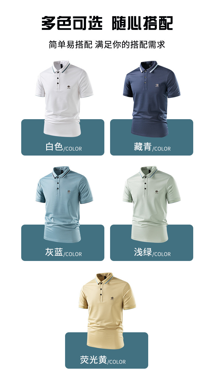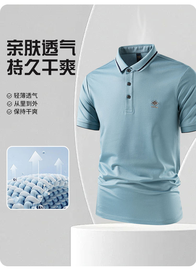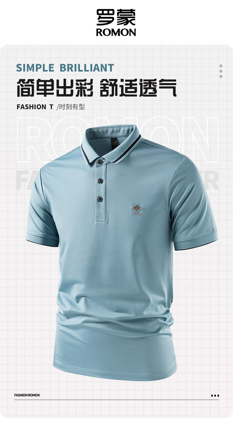 【7A抗菌凉感醋酸亚麻桑蚕丝】罗蒙男士夏季短袖Polo防紫外线t恤男短袖polo衫男
