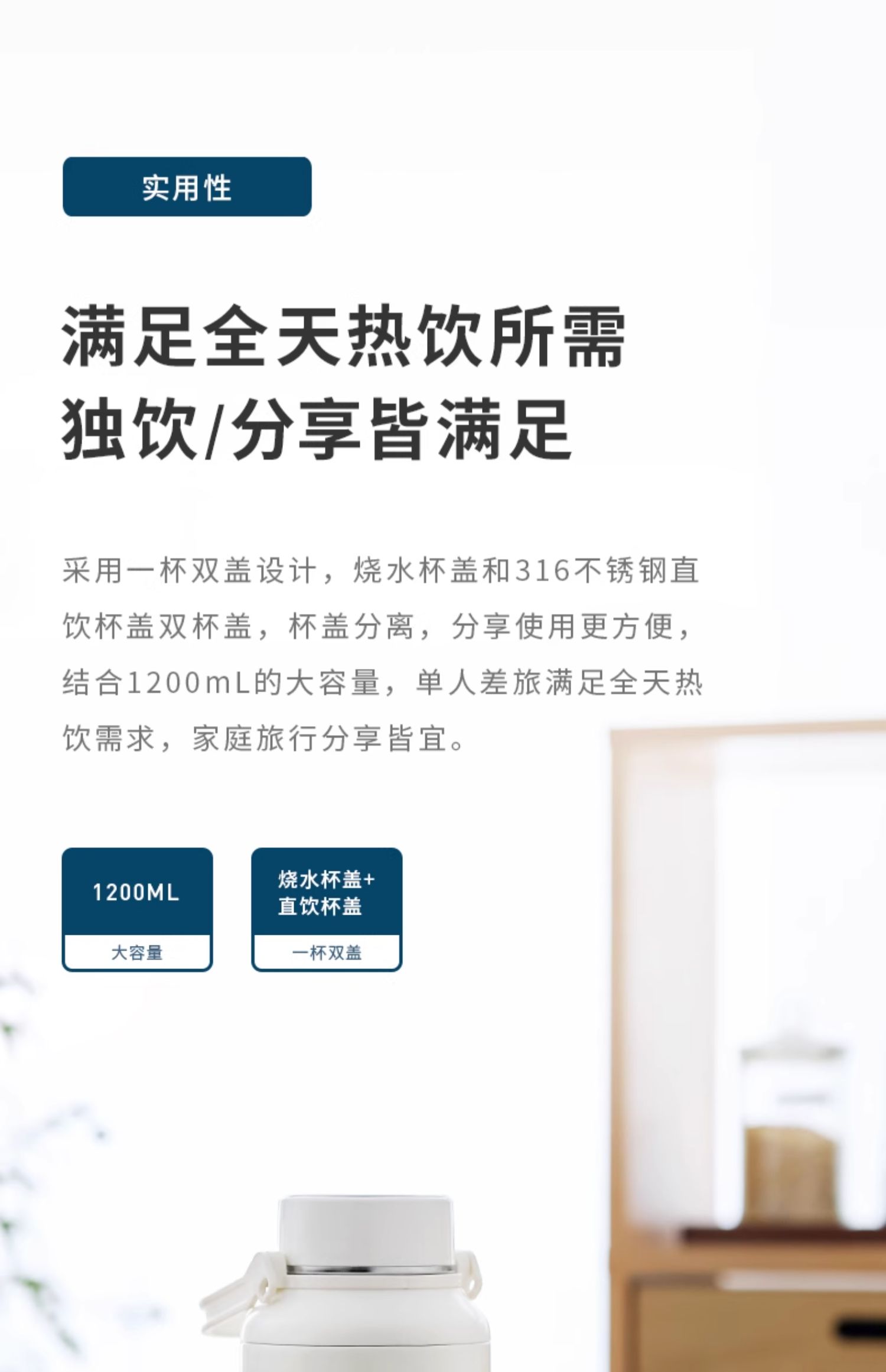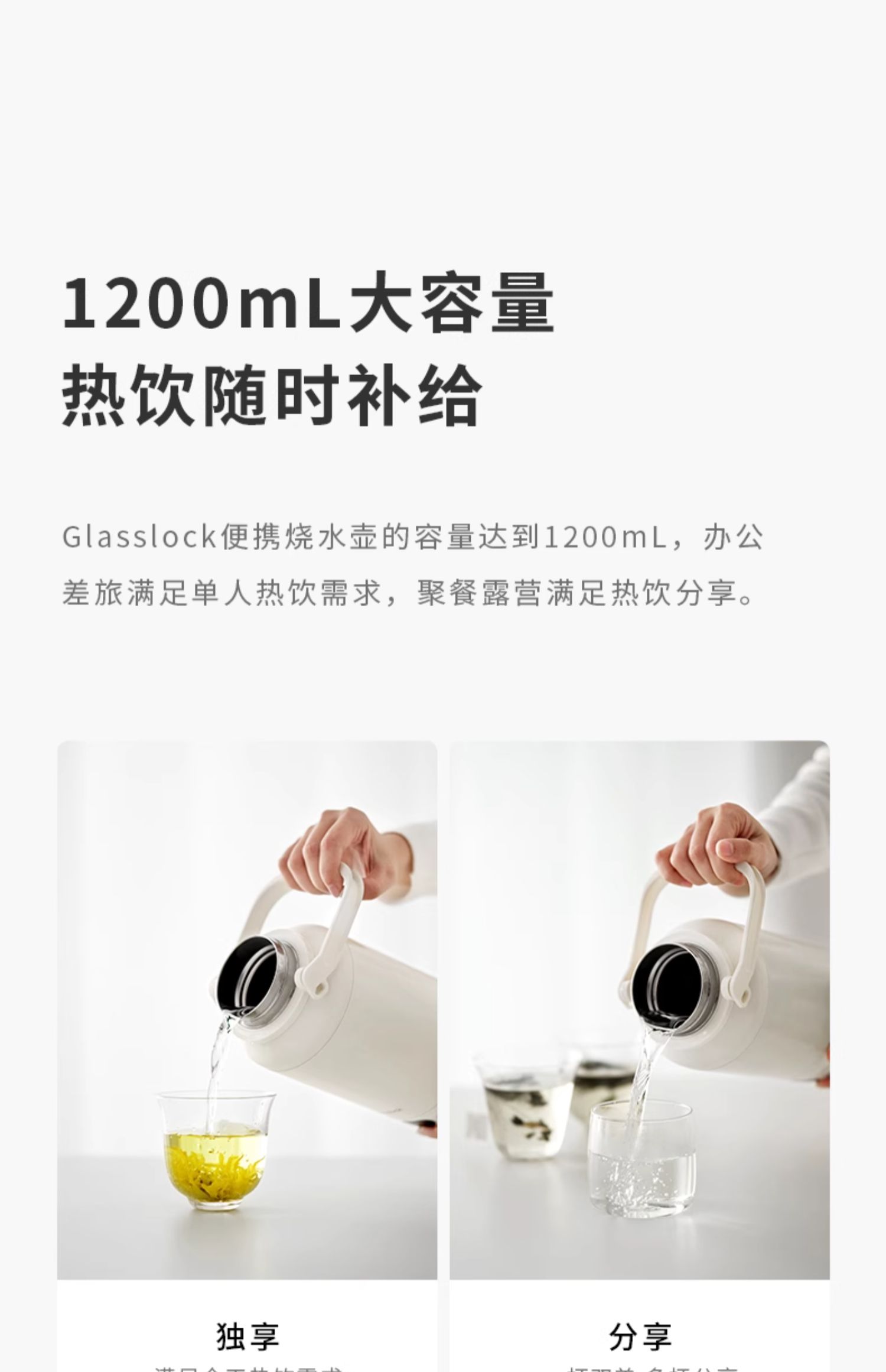 B-GL-GE-HE01WH Glasslock-便携热水杯--1.2L