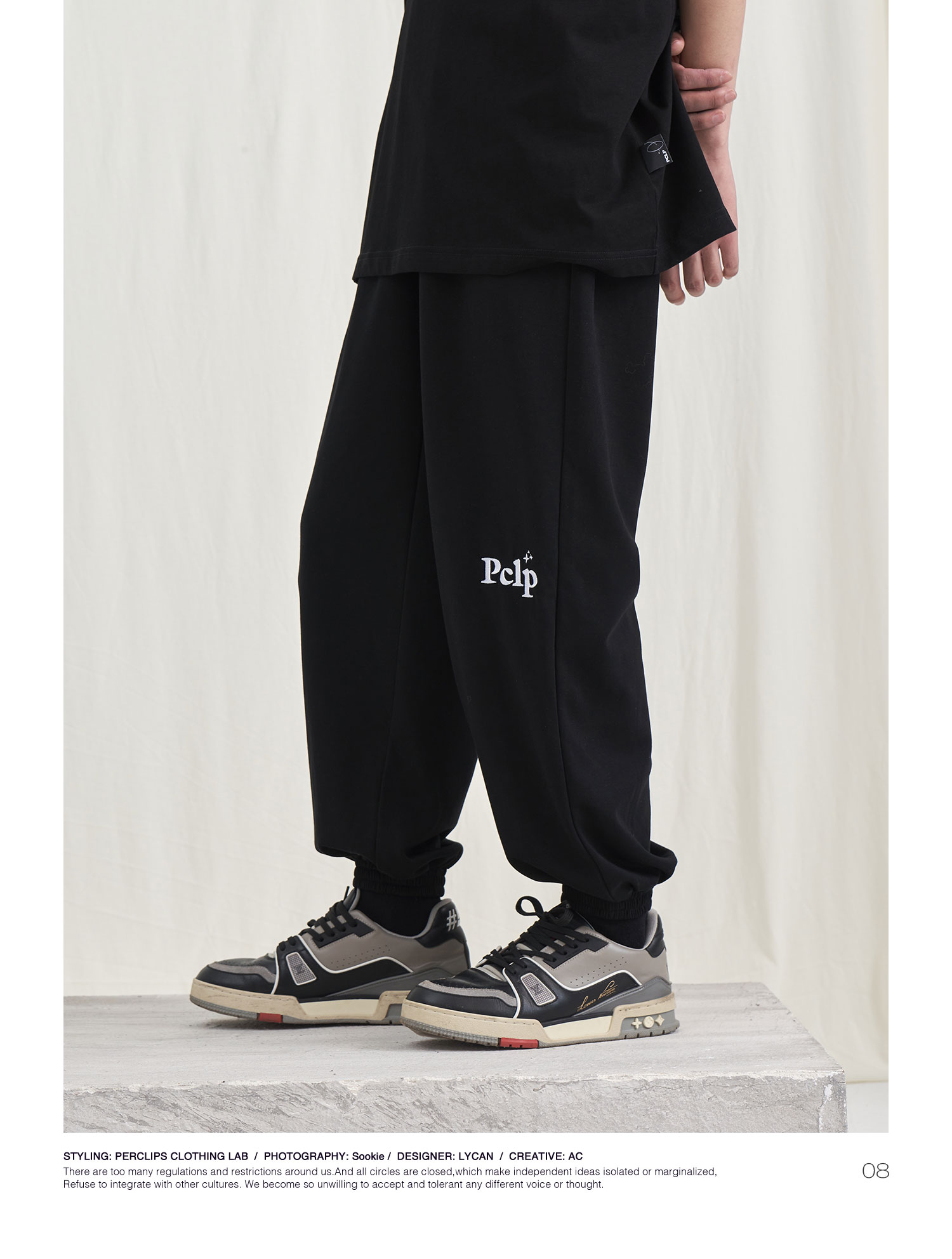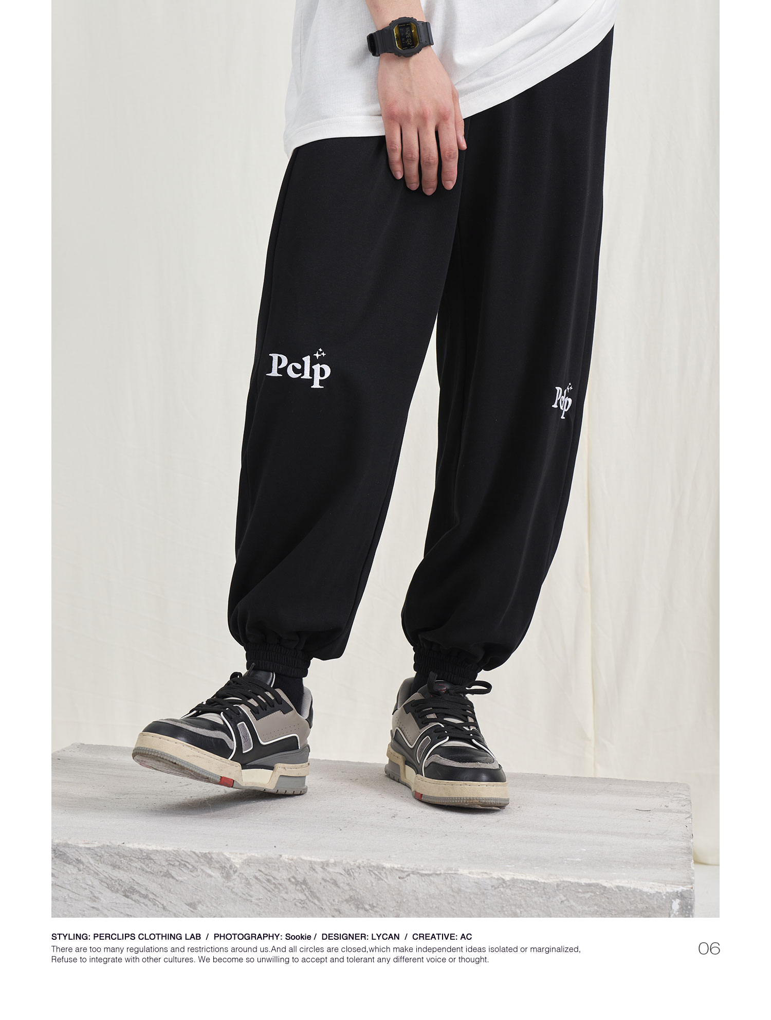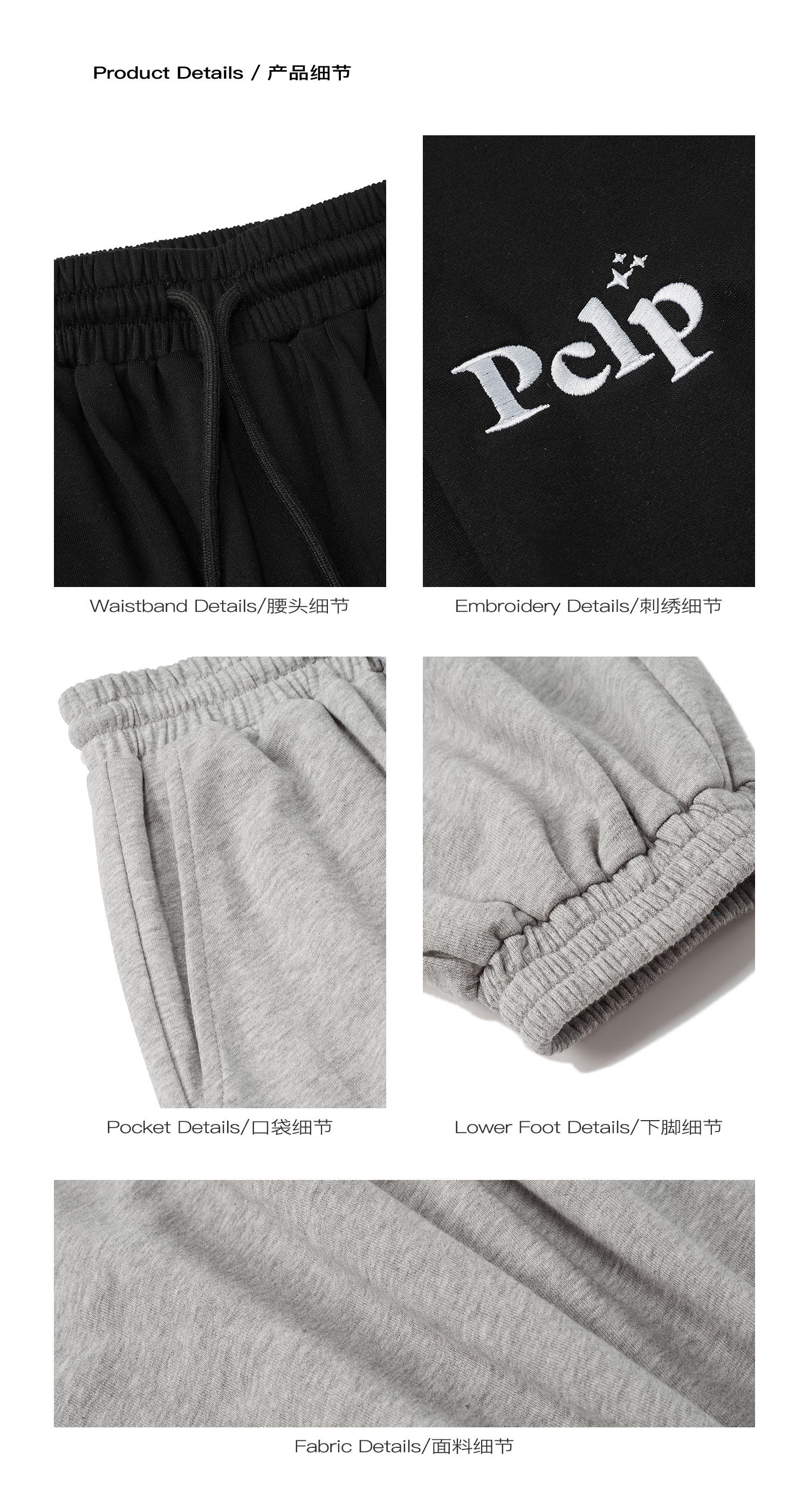 PCLP(PERCLIPS) 星星LOGO刺绣针织长裤 国潮牌潮流休闲运动卫裤男