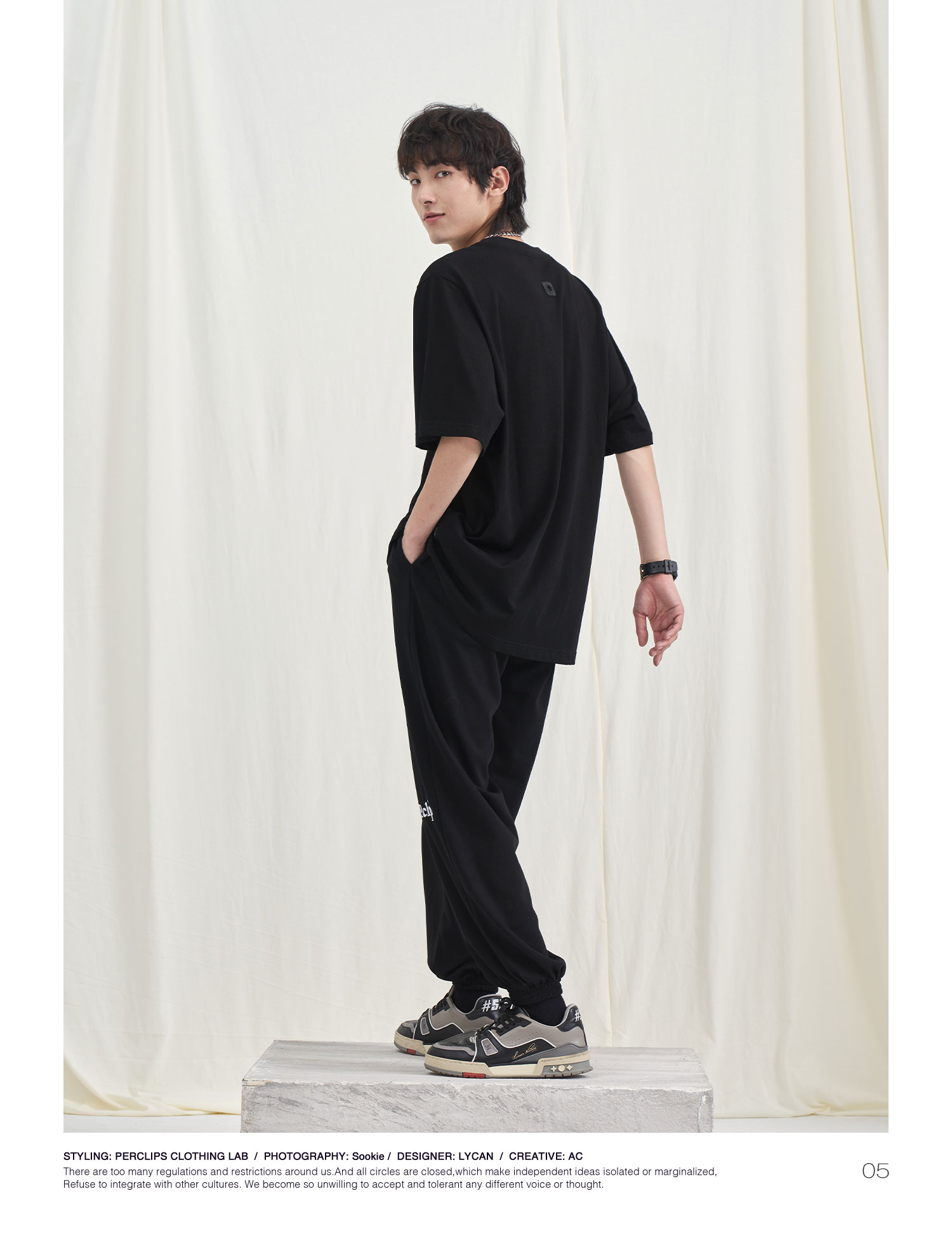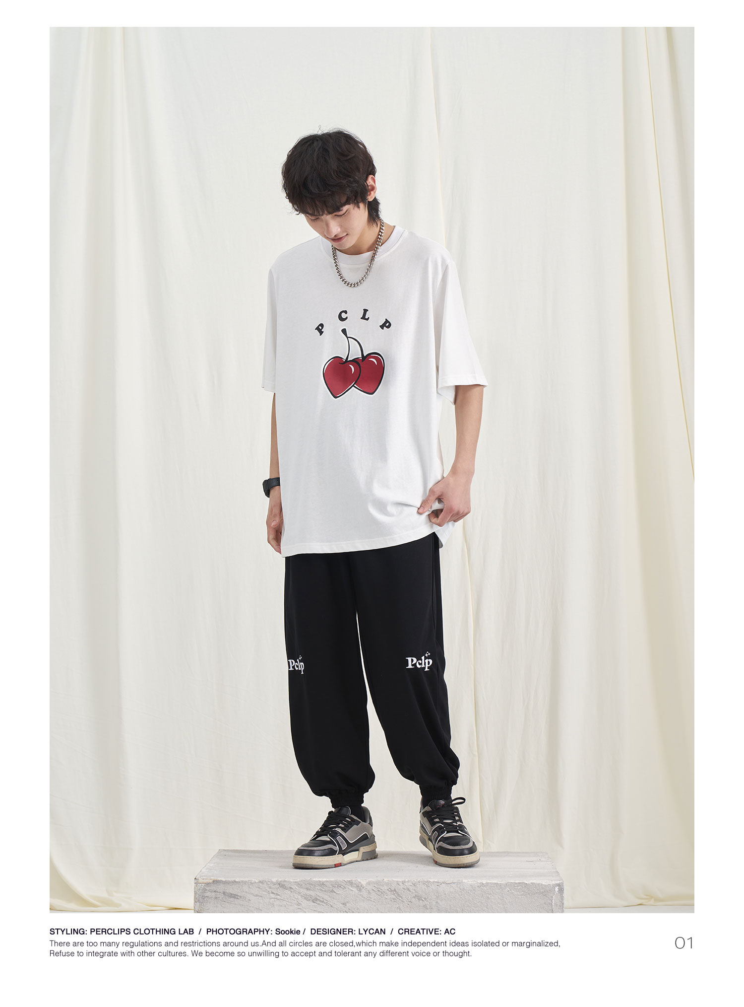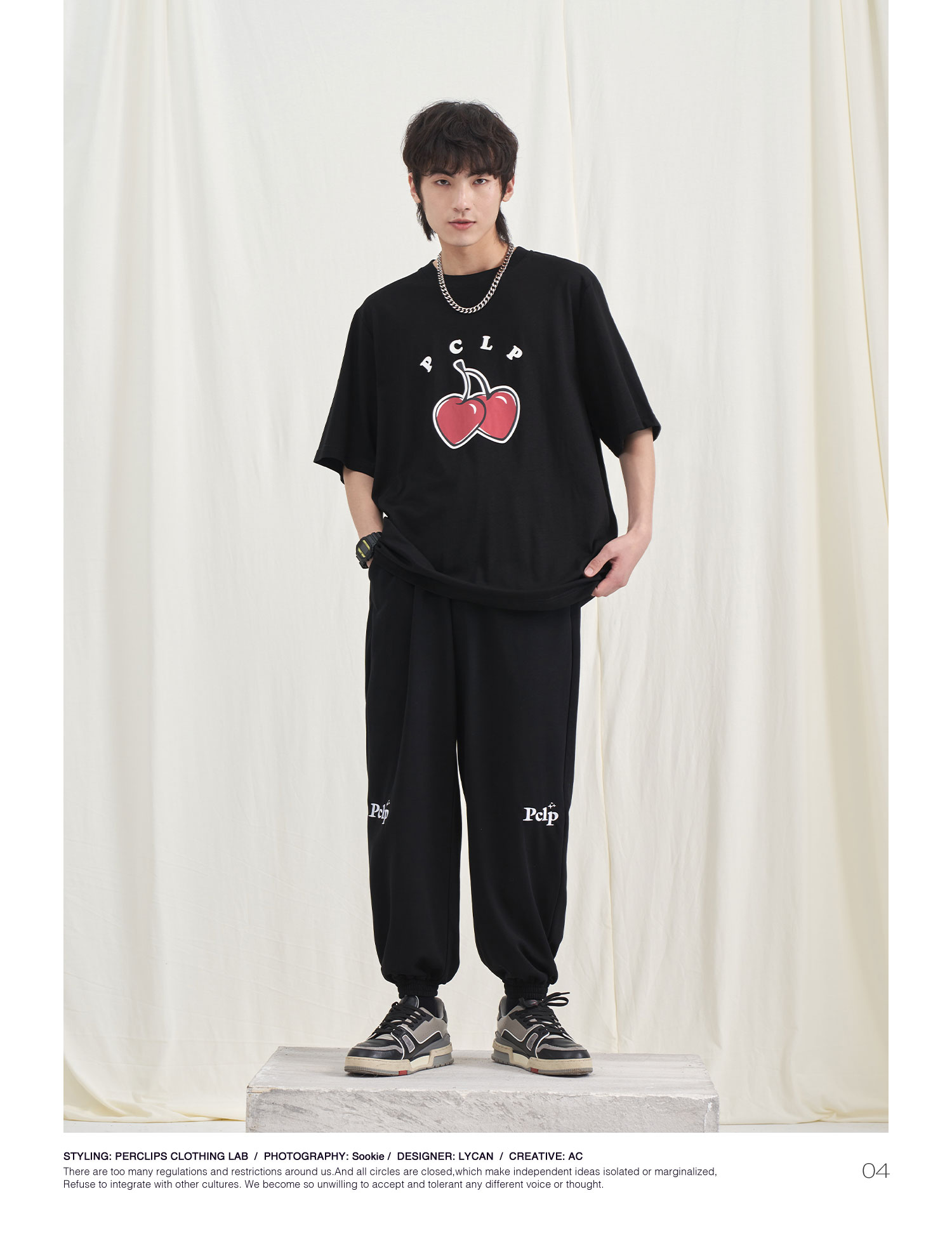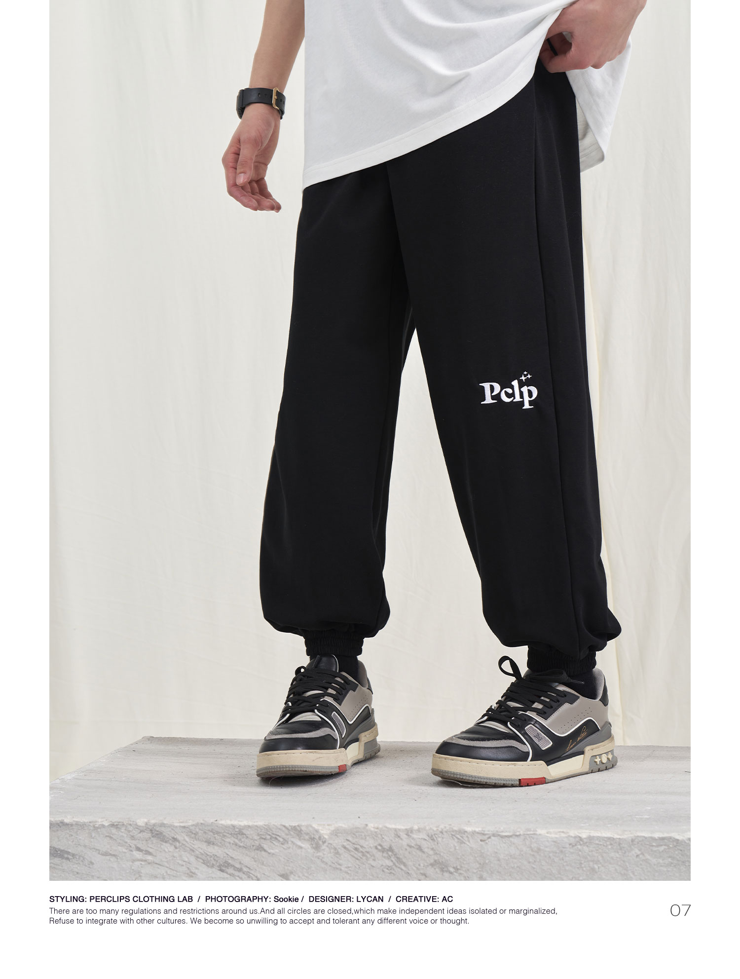 PCLP(PERCLIPS) 星星LOGO刺绣针织长裤 国潮牌潮流休闲运动卫裤男