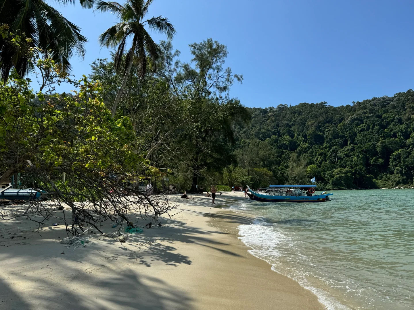 这里被热带雨林所覆盖并且被美丽的白沙碧蓝的海水所包围,海里有美丽多彩的珊瑚礁,这样的条件是潜伏和潜水的完美地点,停靠的港口只有两艘船,岛上非常的安静。通常这个时候,船上总会剩下些食物酒水,本着不浪费原则,今夜大概是躺平在甲板上,星星就酒的一晚。寥廓苍茫的天宇下,海中央,漫天星,这是何等的浪漫。