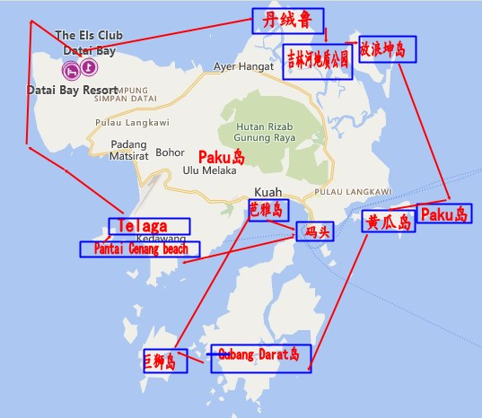 早餐后出发去丹绒鲁海滩,这里位于兰卡威的北端。丹绒鲁海滩和兰卡威的每一处海滩一样,丹绒鲁也有美丽的沙滩和清澈的海水,不同之处在于丹绒鲁海岸边还有成林的松树。退潮时丹绒鲁和附近几座迷人的小岛就连成一片,可以步行过海上岛,是非常独特的体验。丹绒鲁附近还有一座传奇岩洞,岩洞的石壁上刻画的神秘文字至今无法破解。