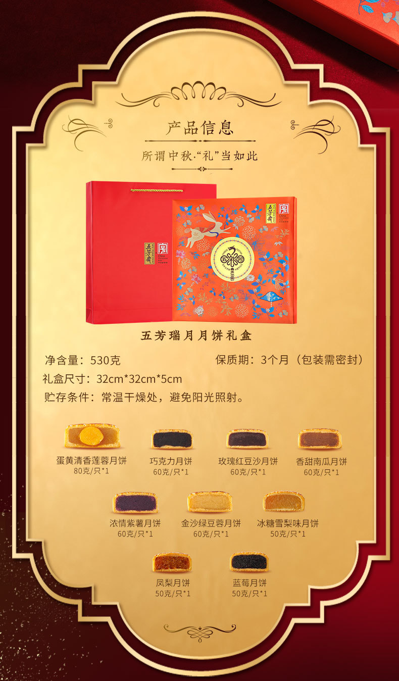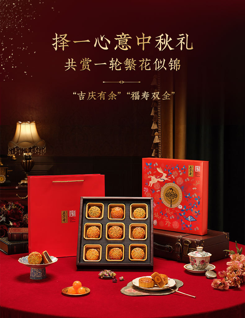 【9种经典口味!】五芳斋瑞月月饼礼盒装 蛋黄莲蓉豆沙五仁巧克力 ✨9种经典口味,传统国风设计,舌尖上的团圆滋味🌕立即入手!