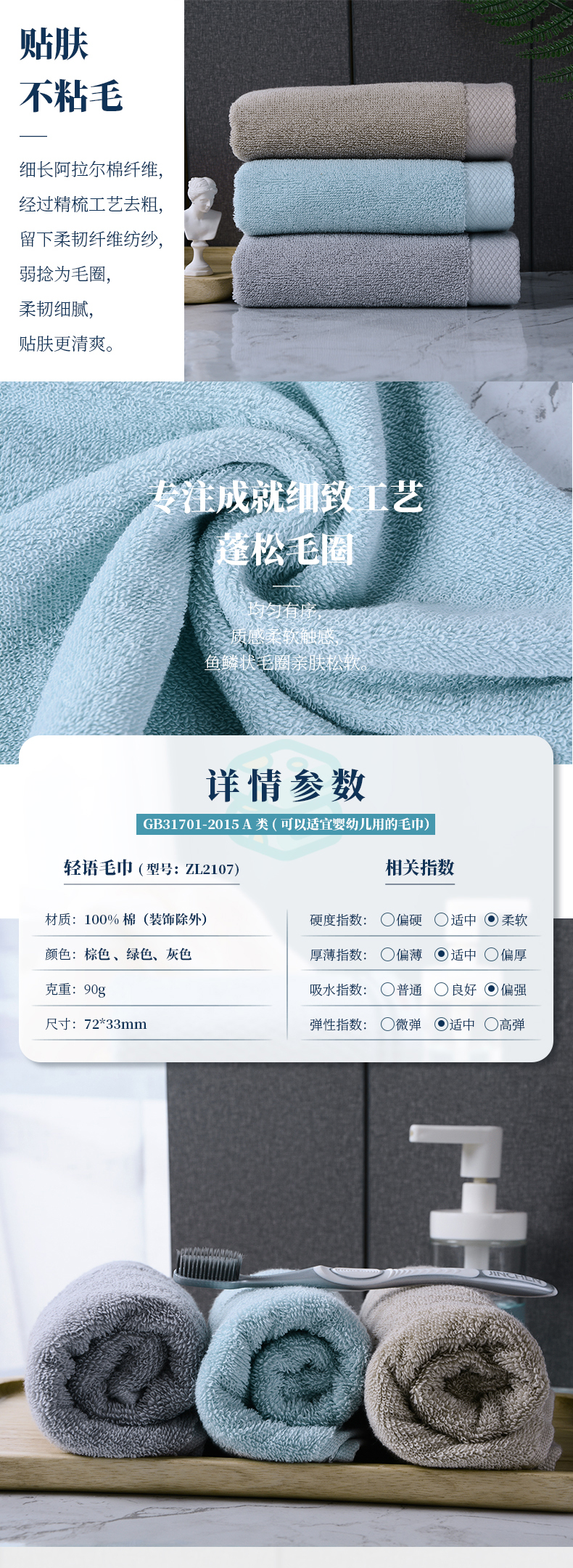 【自营】 金号 轻语毛巾 三条装 ZL2107