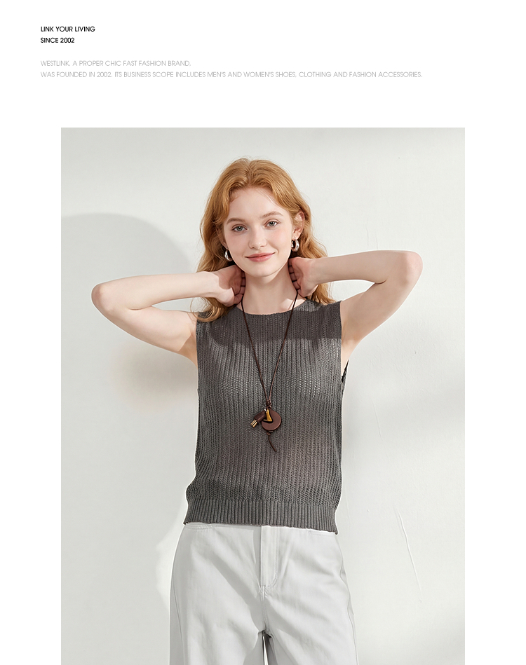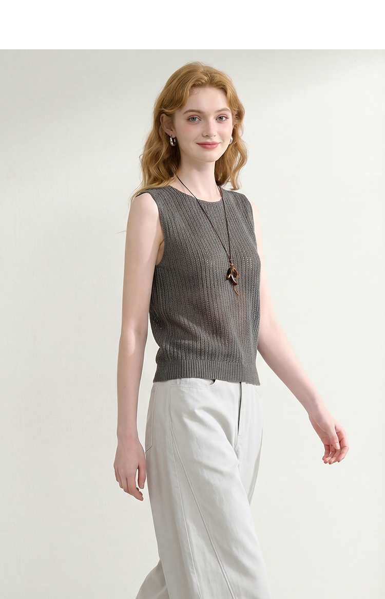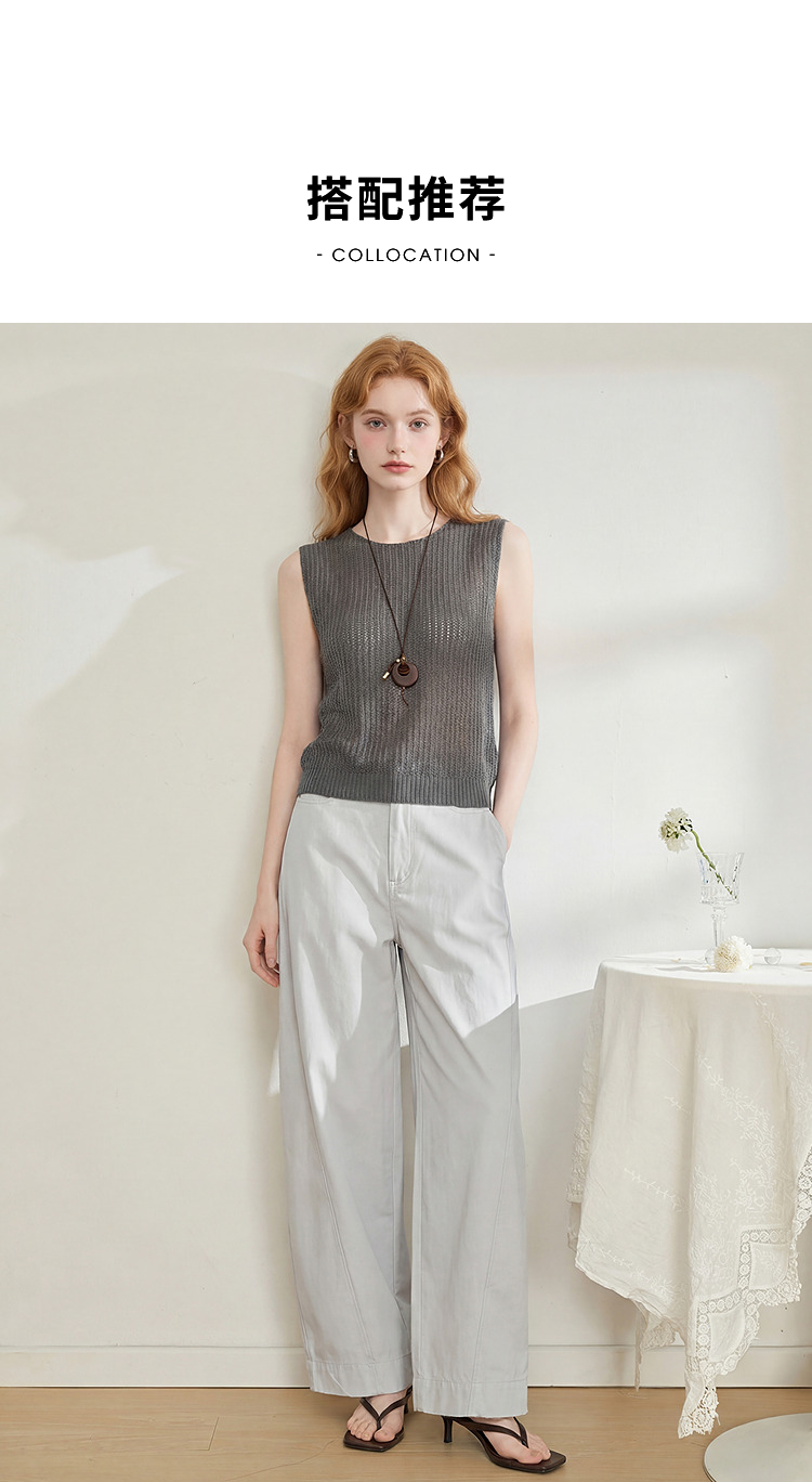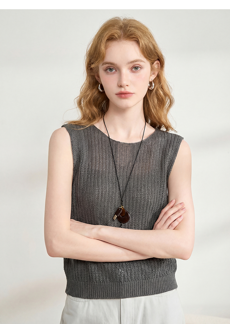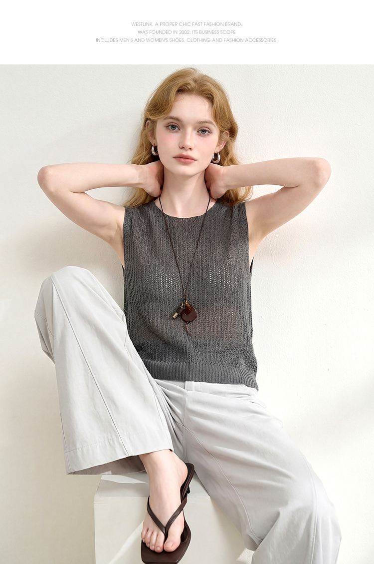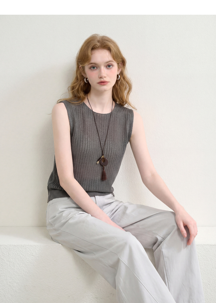西遇法式圆领无袖针织背心女2026夏季新款镂空露背设计感马甲上衣H0060248
