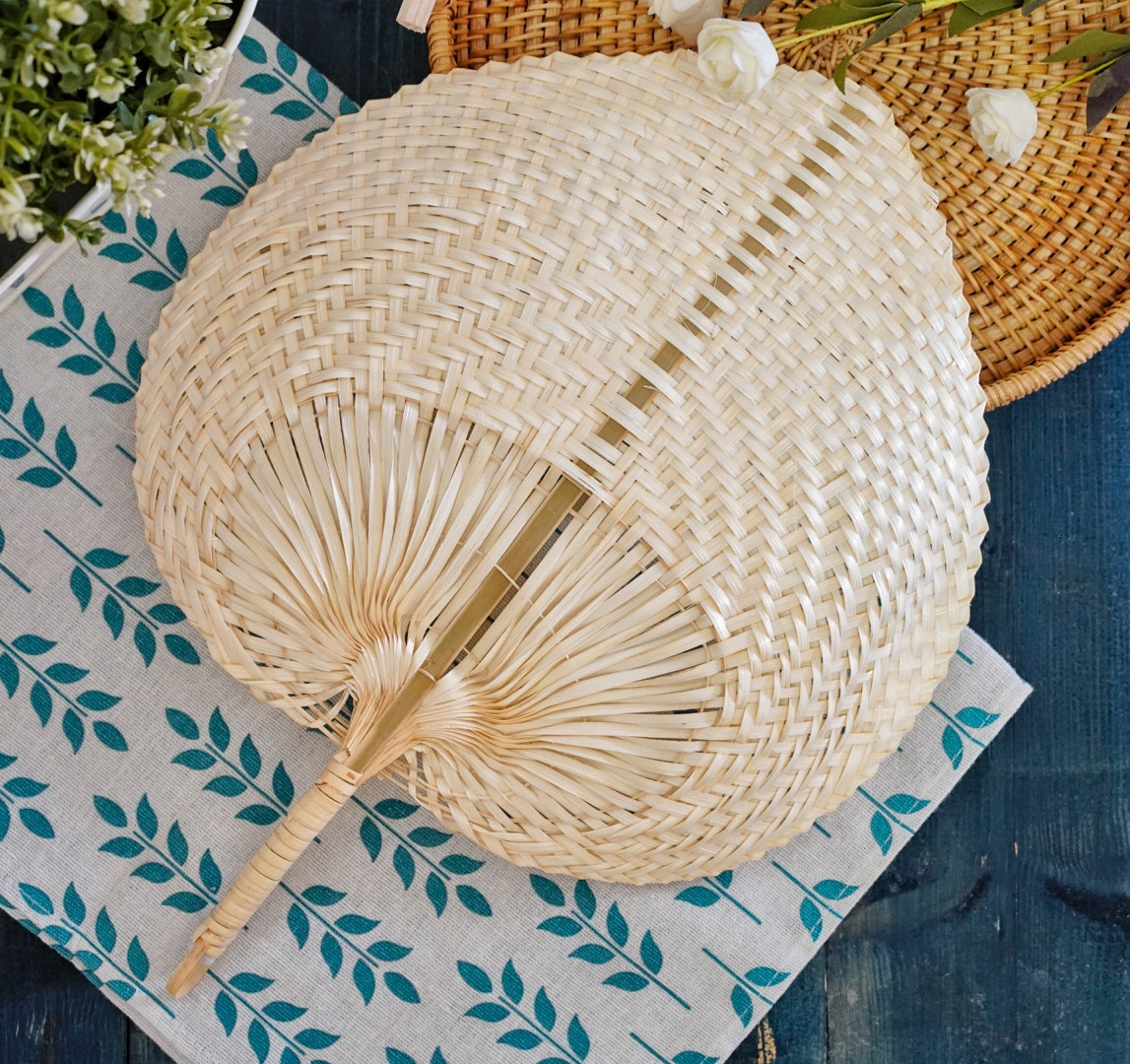 【商品名称】纯手工特色桃形竹编扇子2把(藤编织而成有点毛糙 介意慎拍)