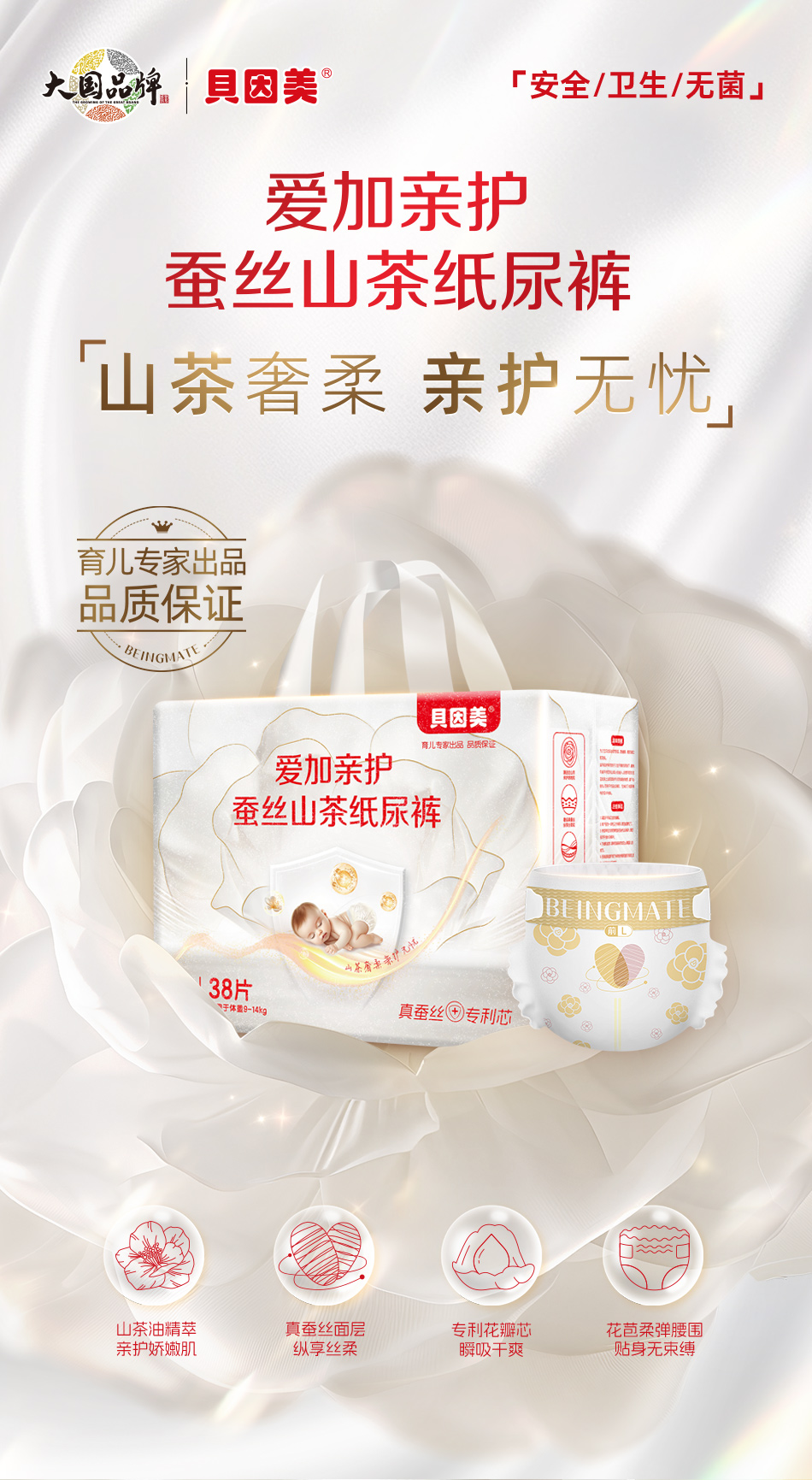 贝因美爱加亲护蚕丝山茶系列纸尿裤/学步裤(柔软、透气、亲肤)