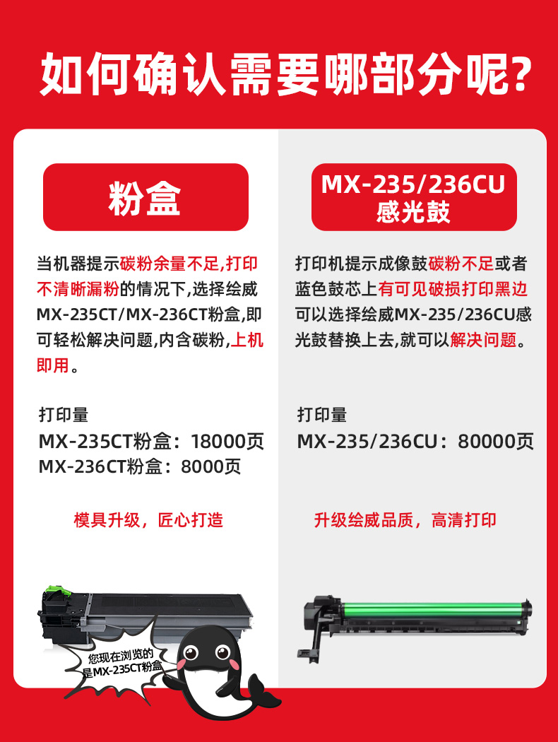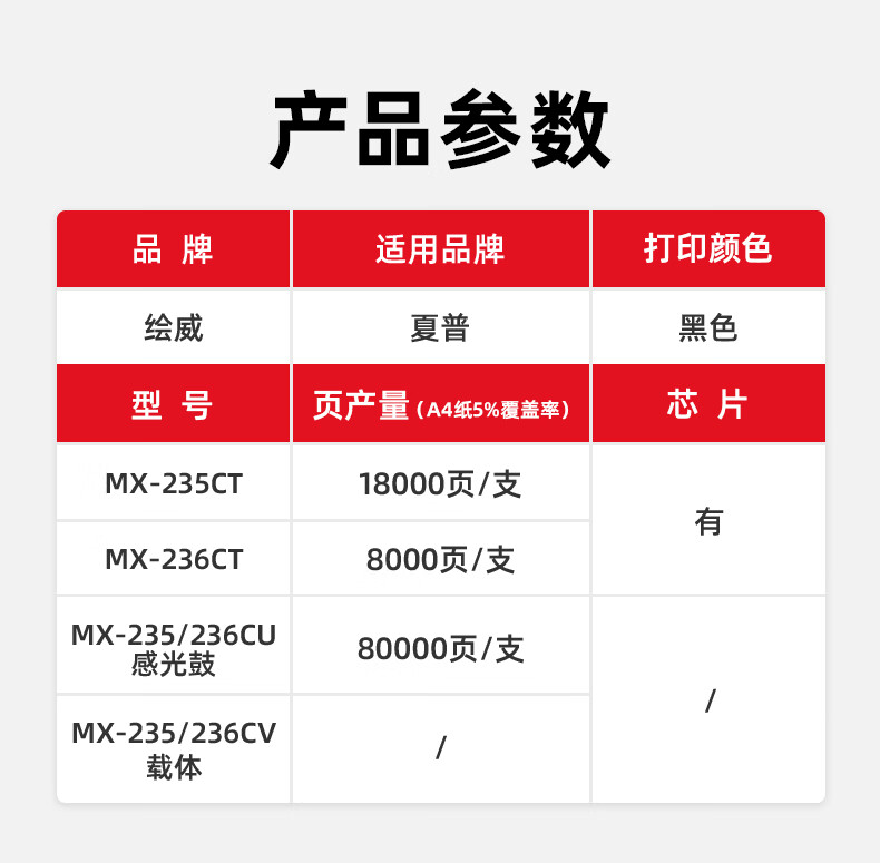 绘威MX-235CT大容量粉盒 适用夏普SHARP AR-1808S 2008 2008D 2008L 2308/D 2328 2035复印机碳粉MX-236墨粉硒鼓