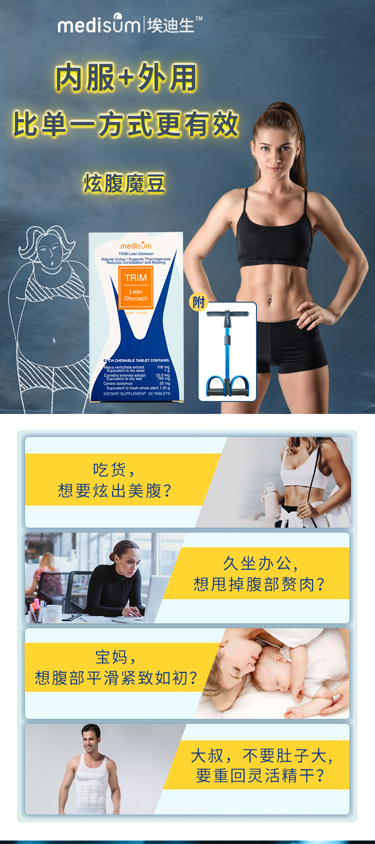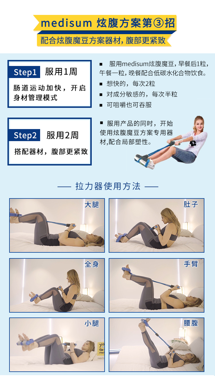 【保税仓】澳大利亚medisum埃迪生炫腹魔豆60粒/瓶(赠送拉力器,有效期至24年12月)