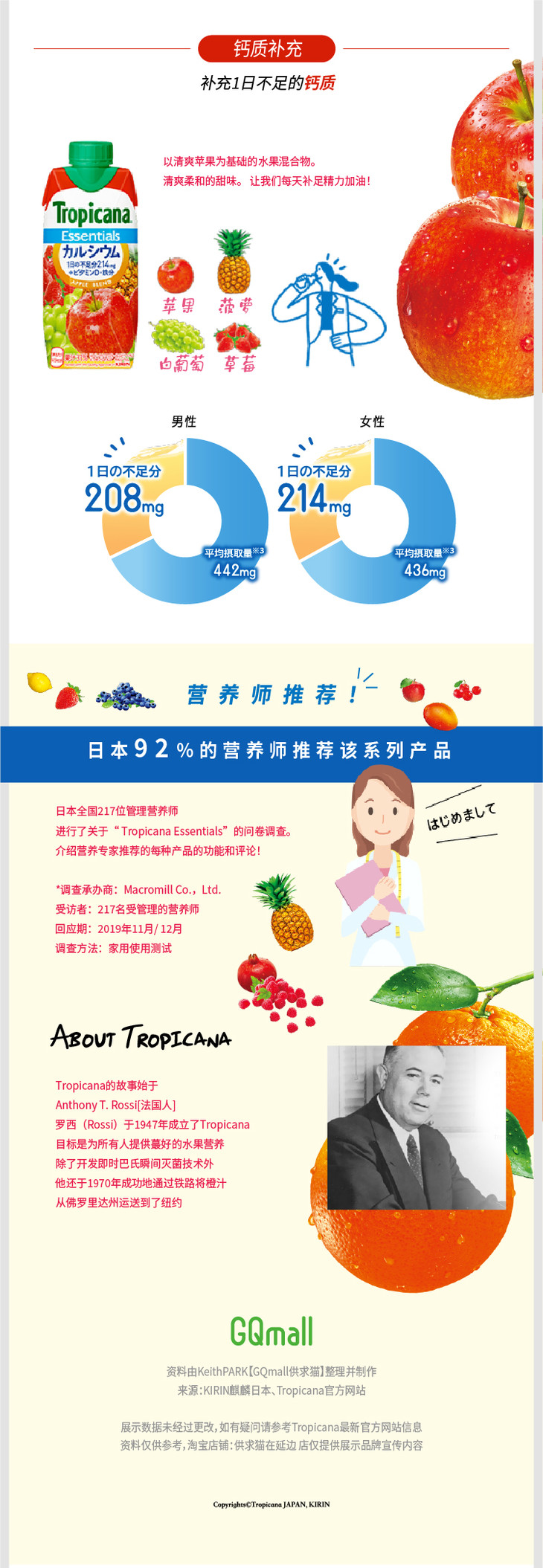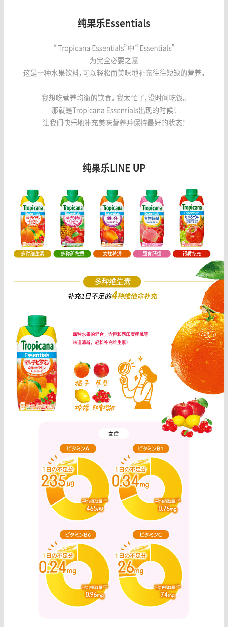 日本进口麒麟Tropicana纯果乐混合水果汁饮料 330ml(084196)