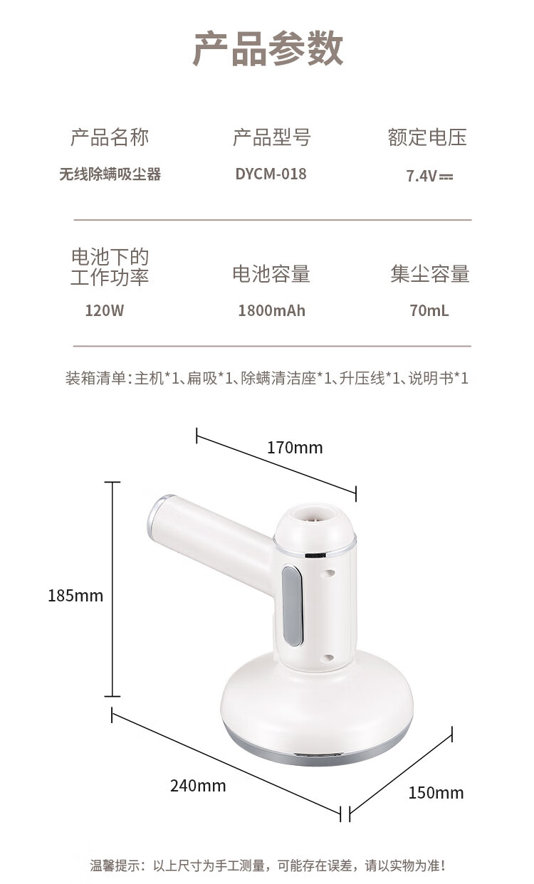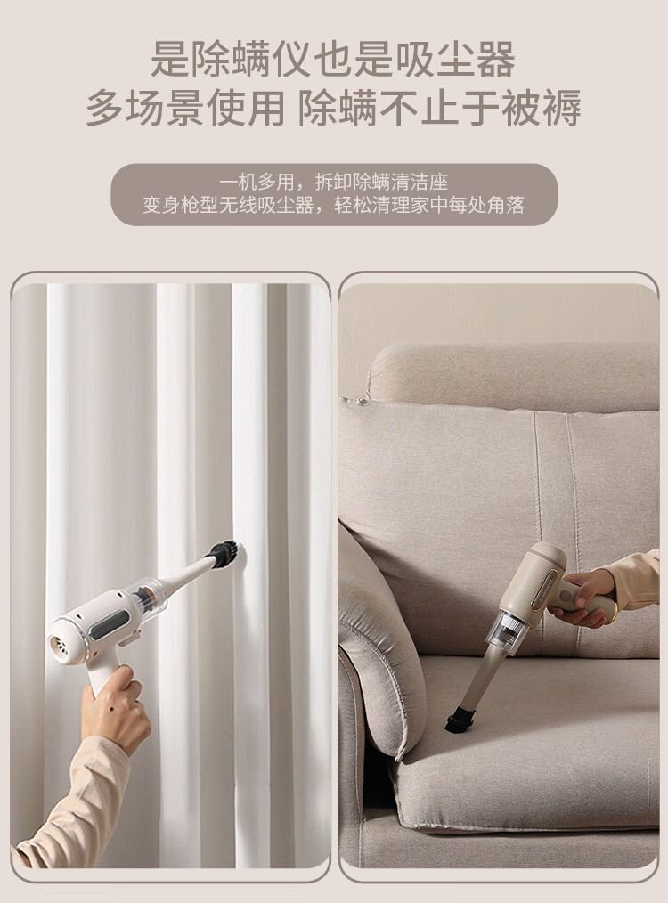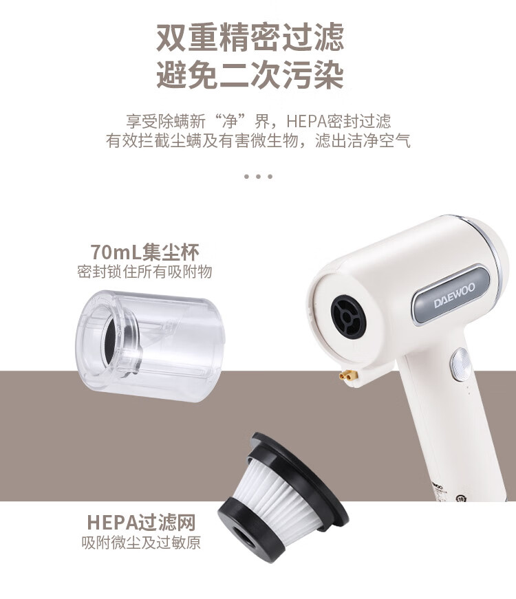 【多样屋专柜】大宇家用手持便携除螨吸尘器 紫外线杀菌无线可可棕