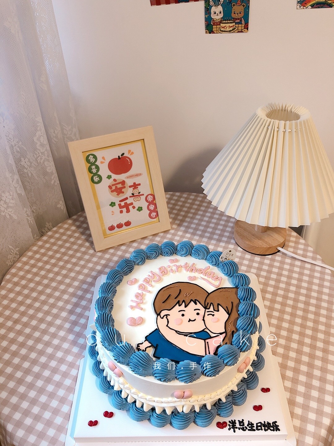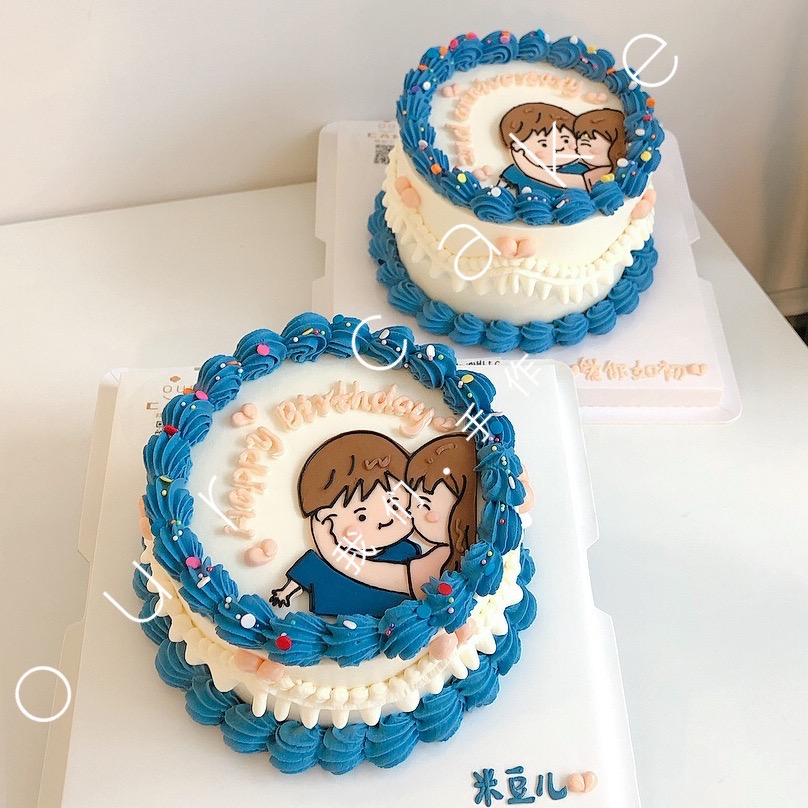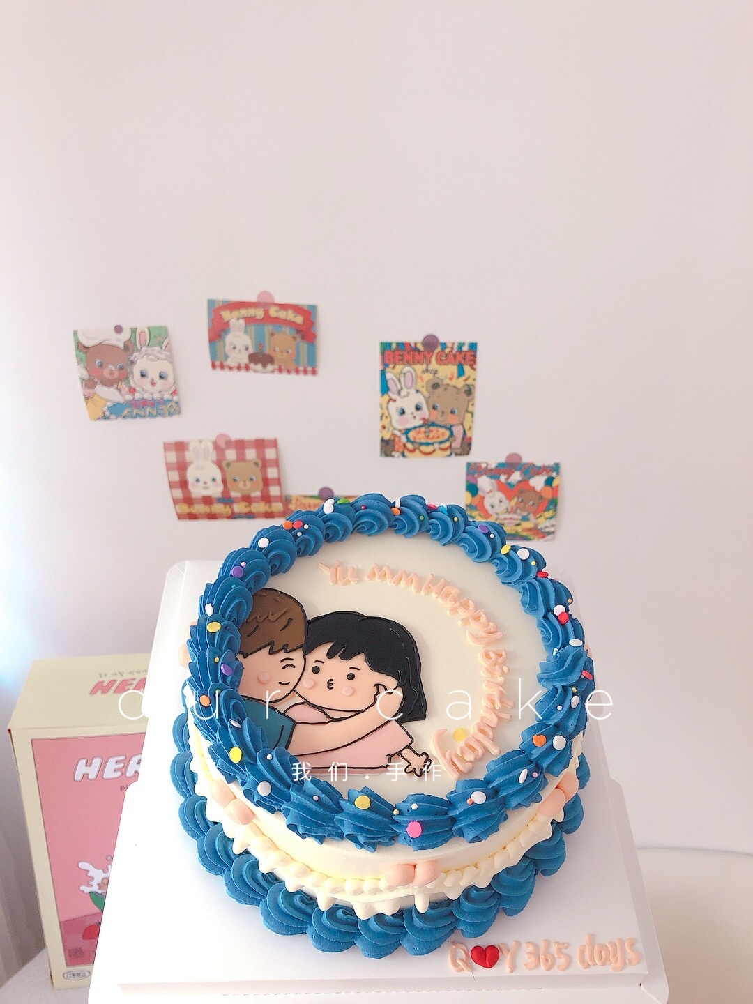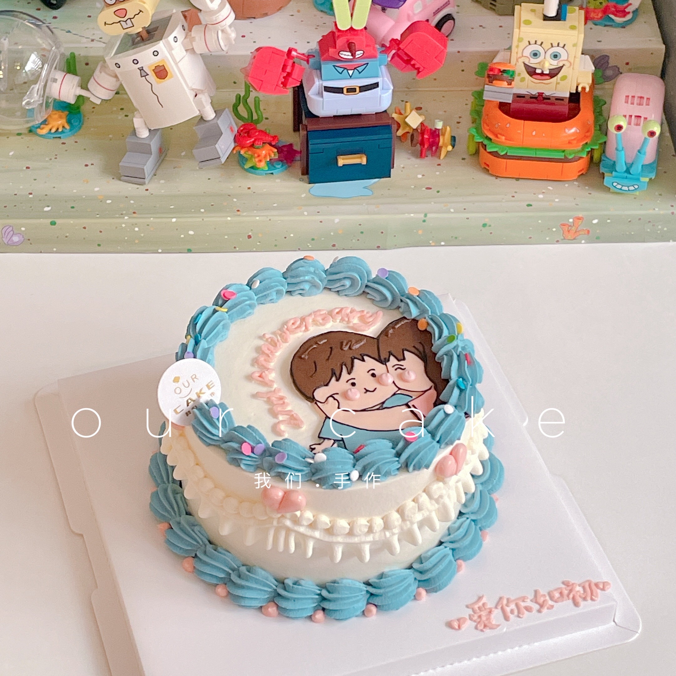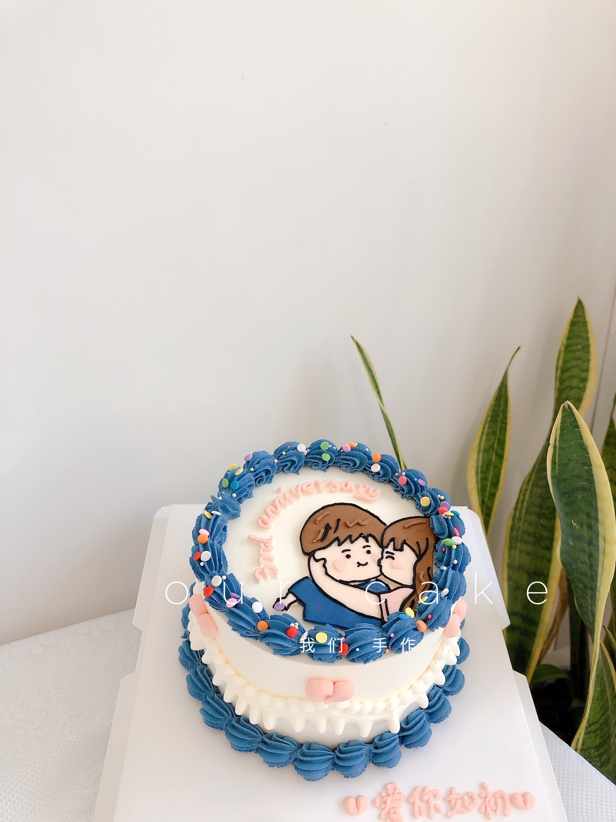 情侣纪念日/周年纪念日复古手绘蛋糕-低糖处理无添加