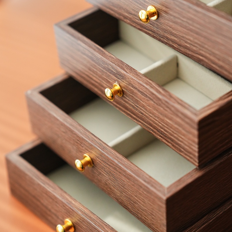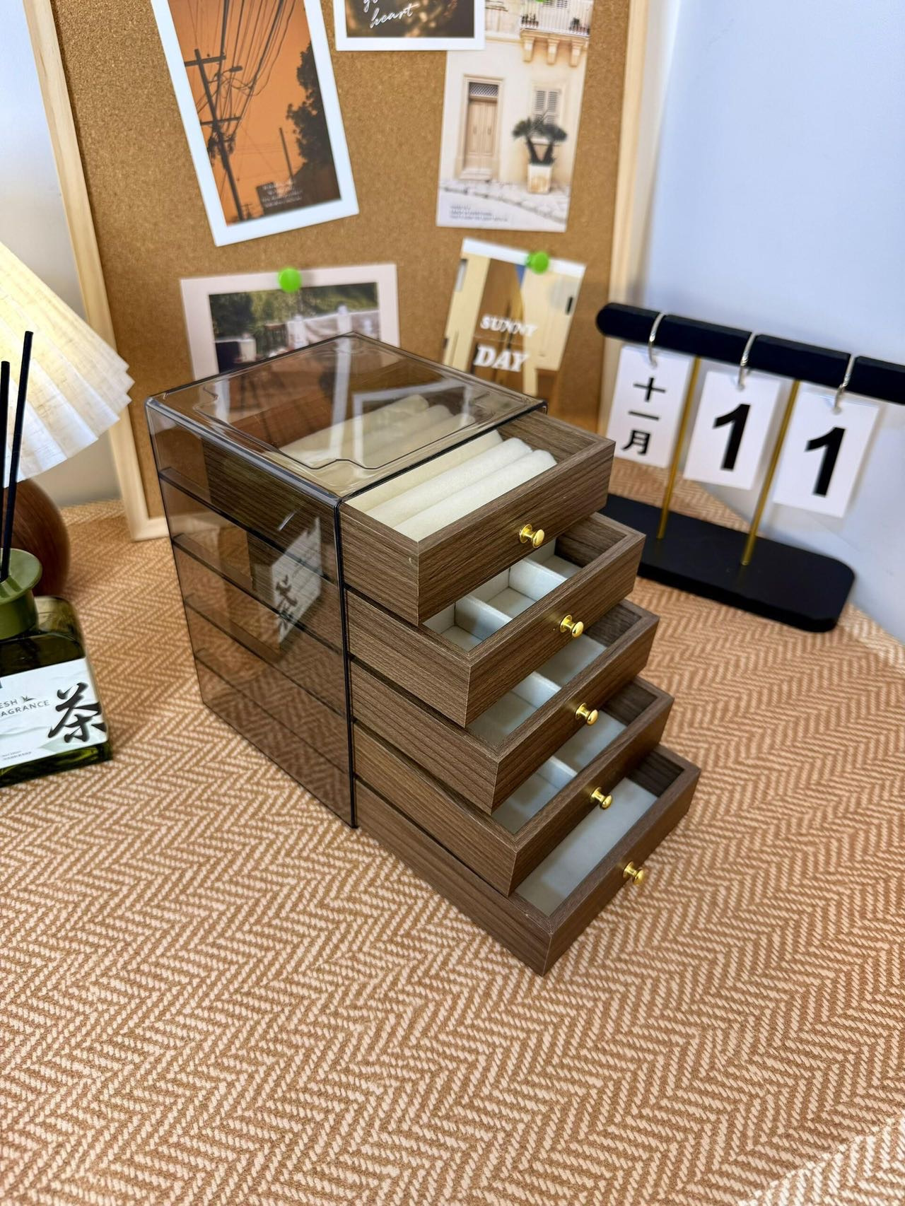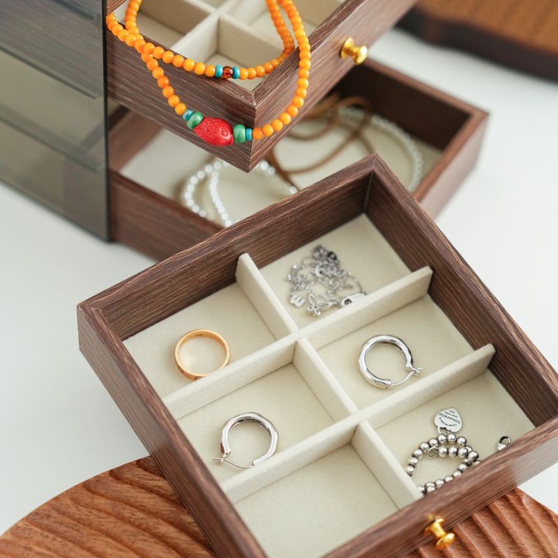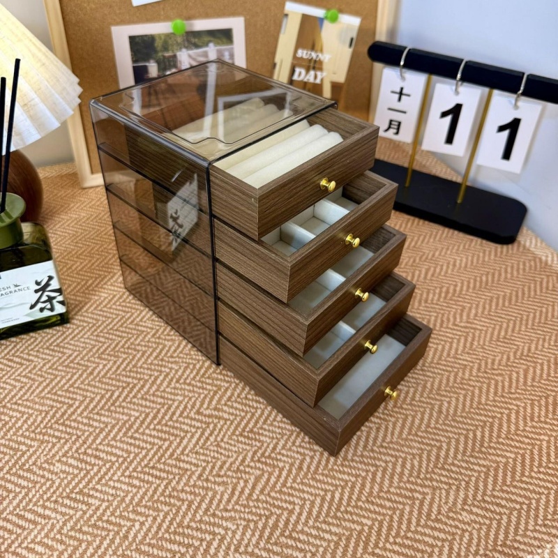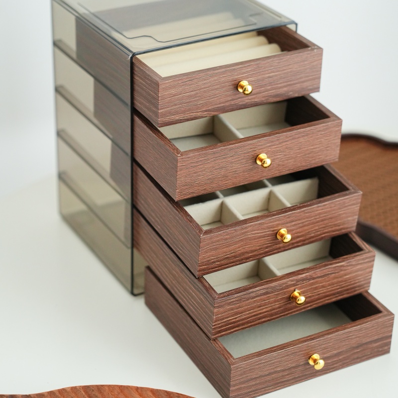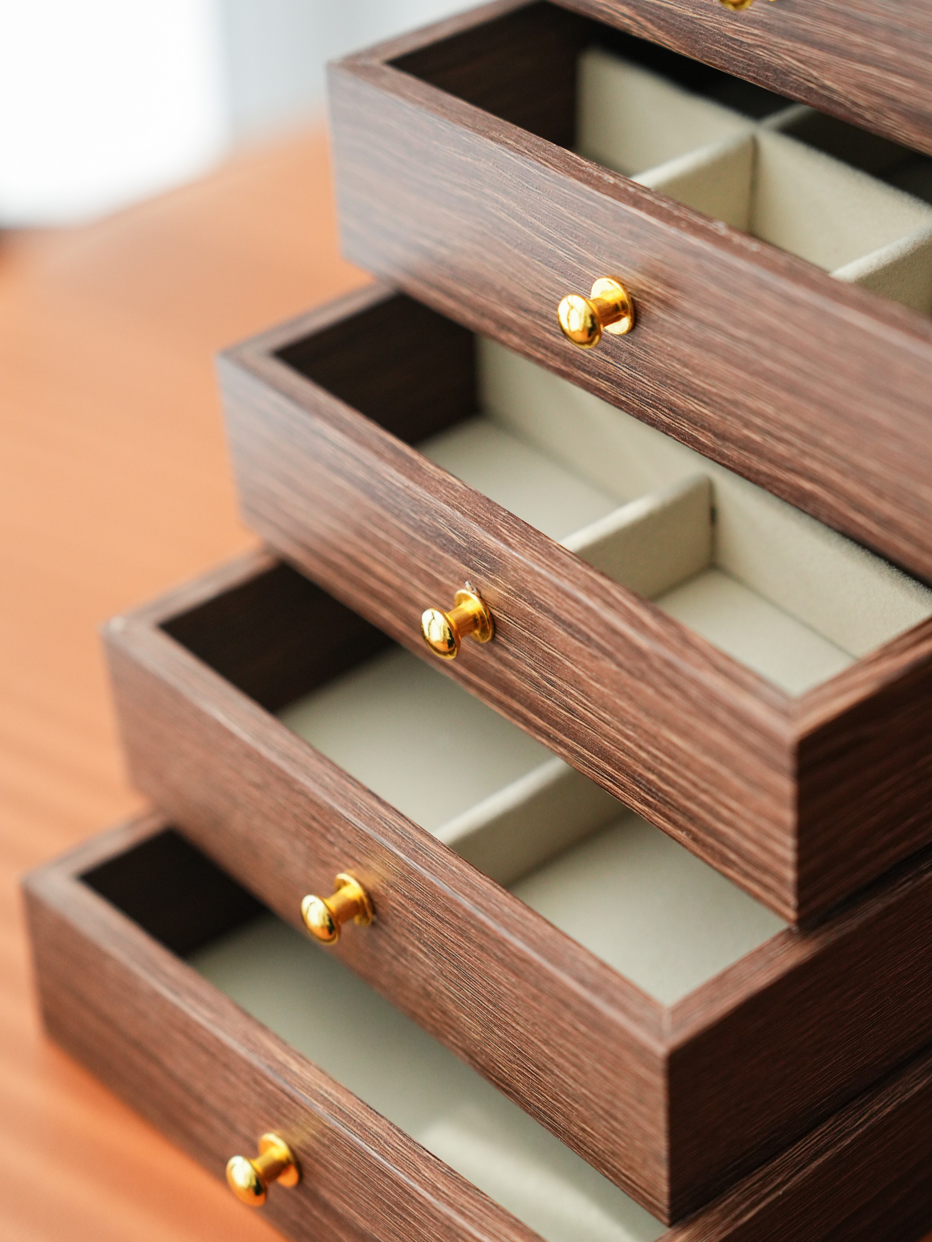【SWEET&COCO 胡桃木色 五层首饰收纳盒 】13*13*19cm 收拾收纳整整齐齐 5层大容量 可拆卸隔层