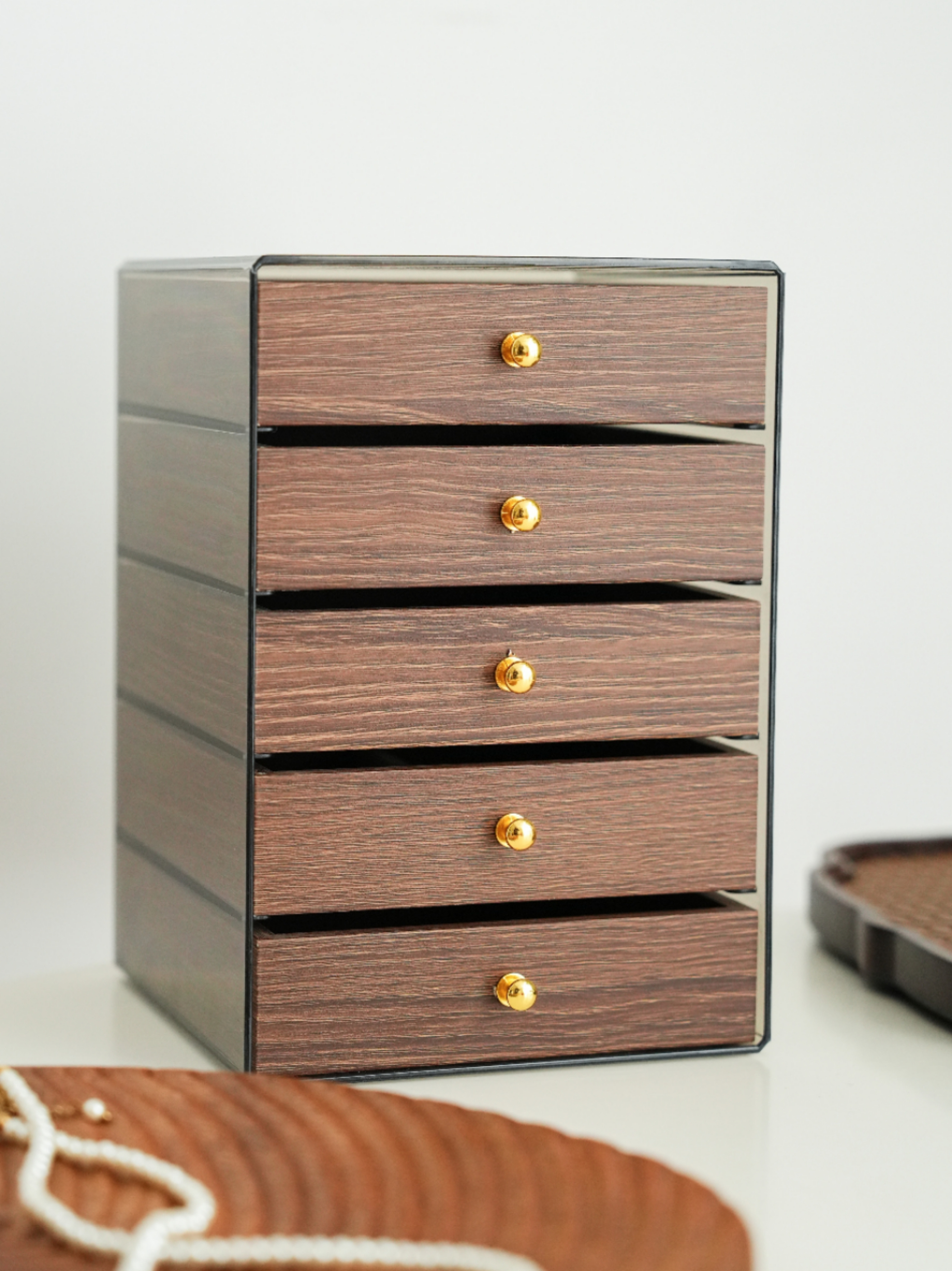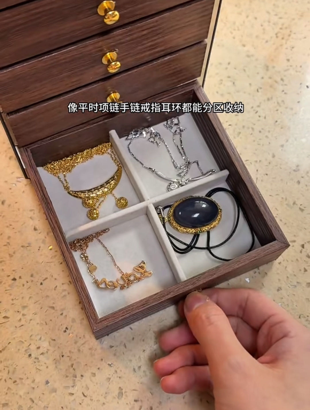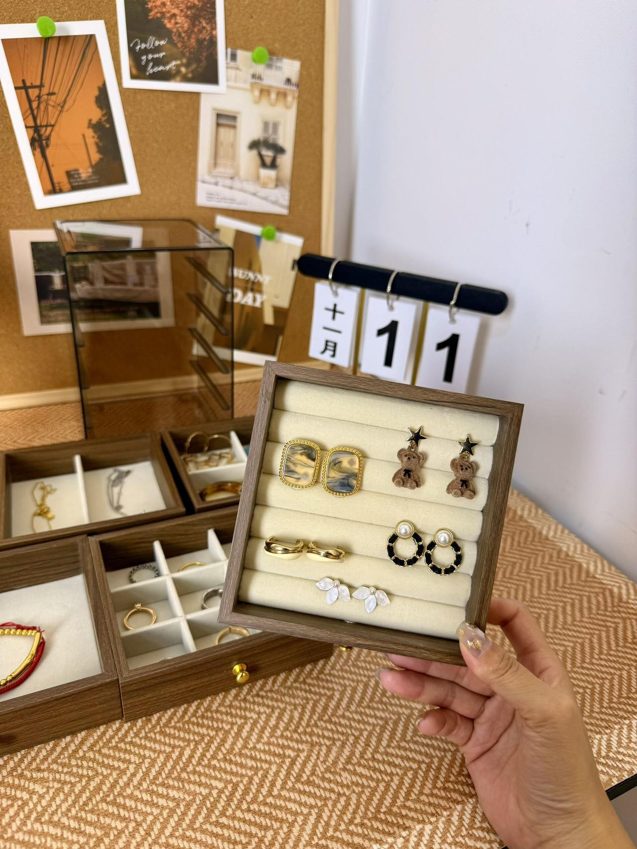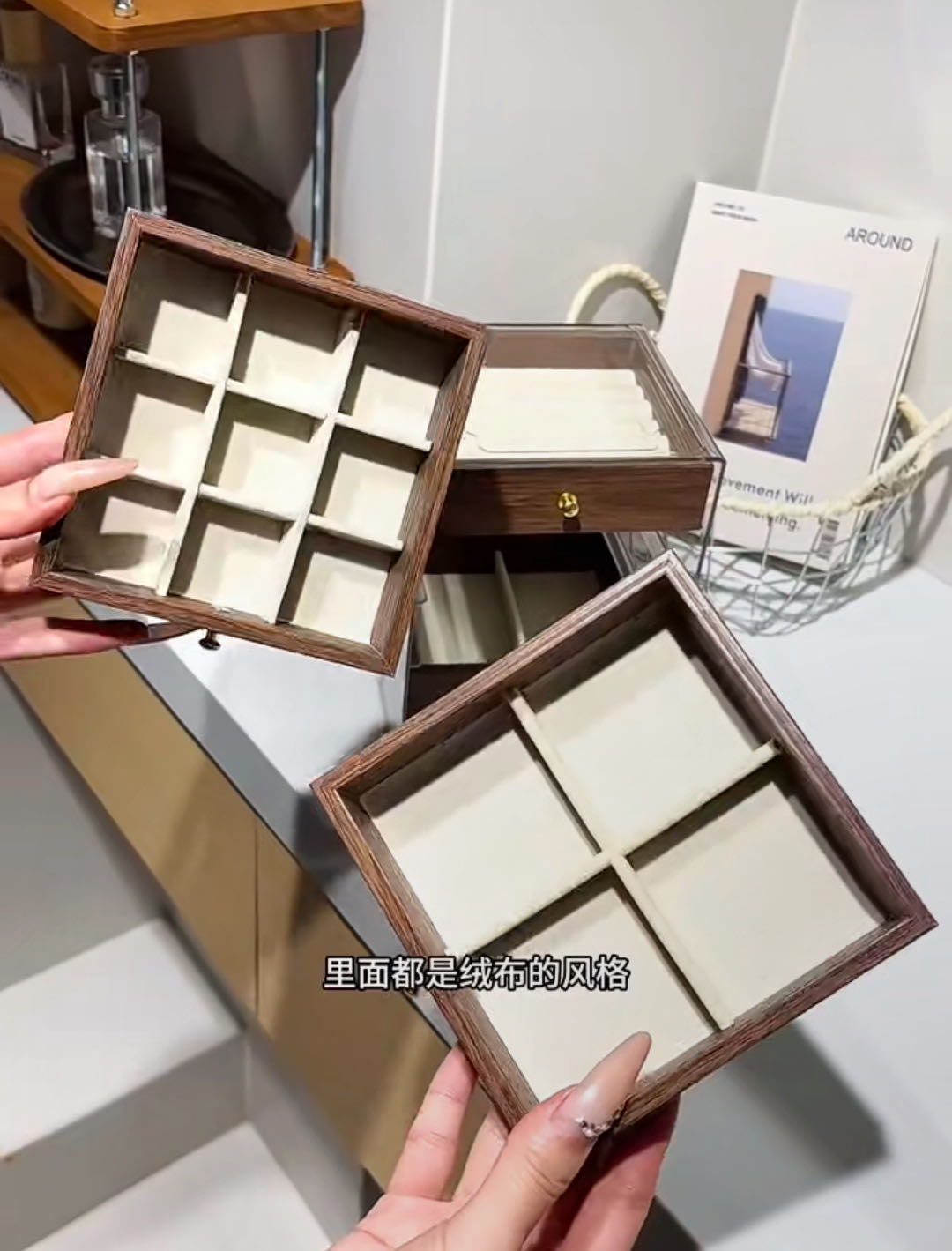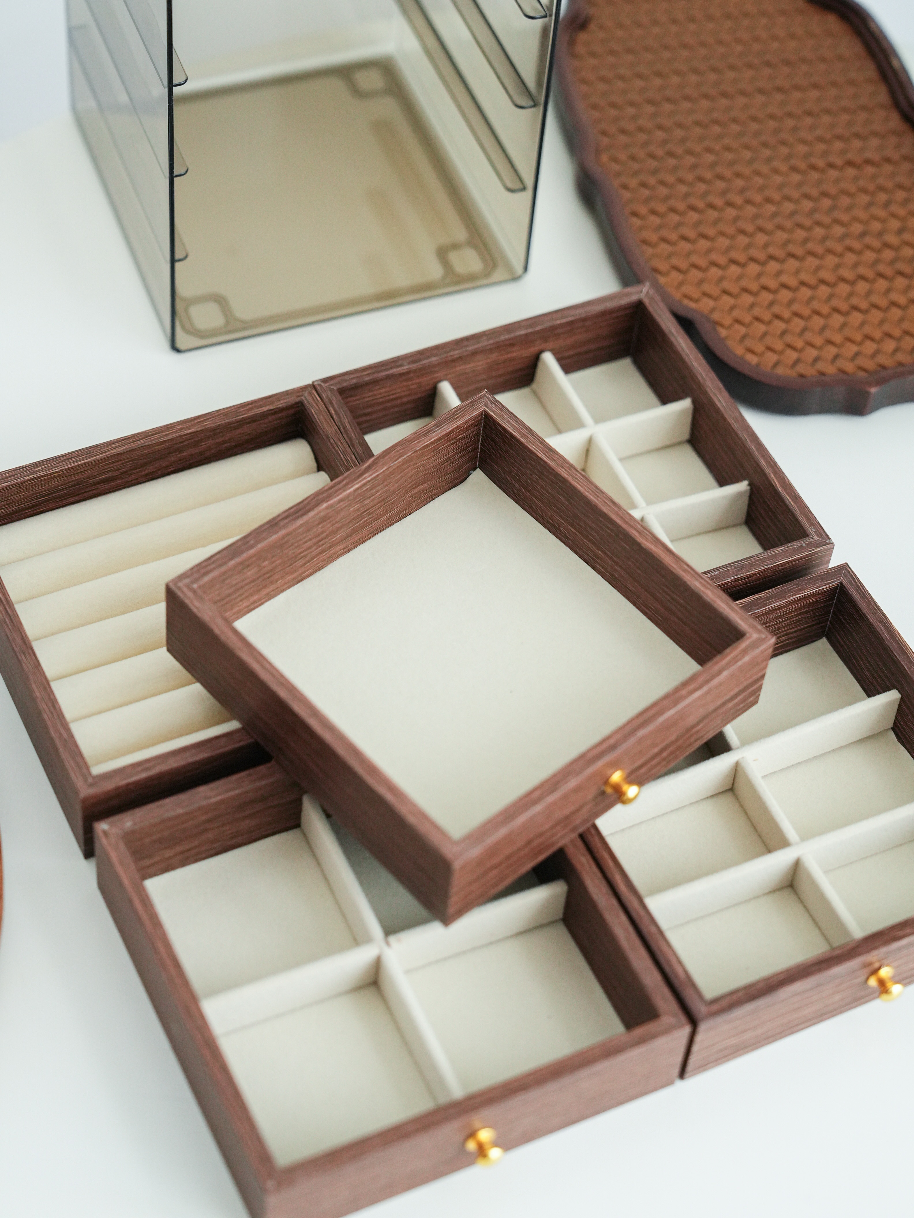 【SWEET&COCO 胡桃木色 五层首饰收纳盒 】13*13*19cm 收拾收纳整整齐齐 5层大容量 可拆卸隔层