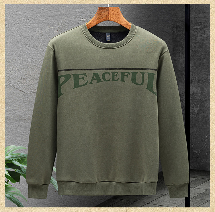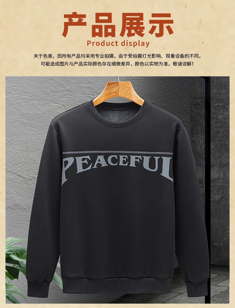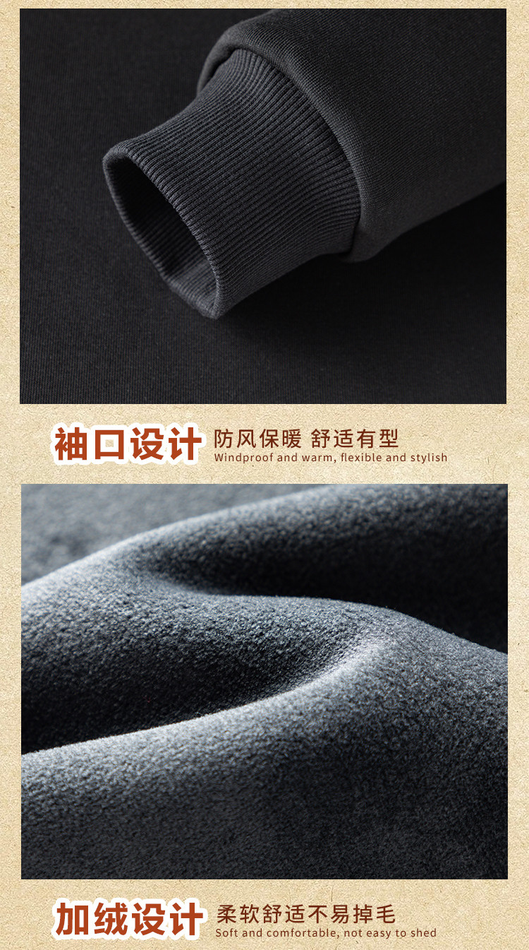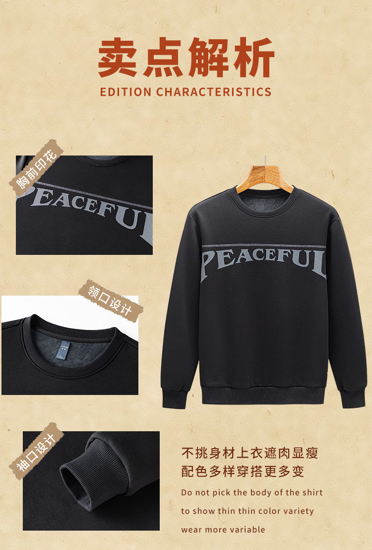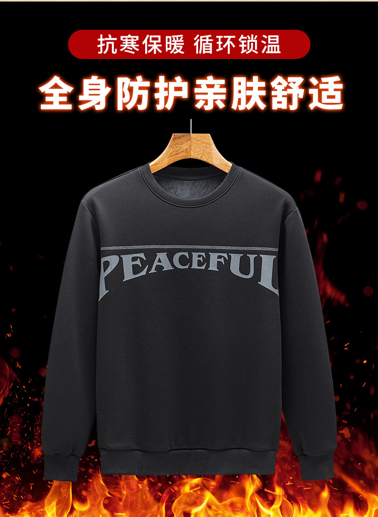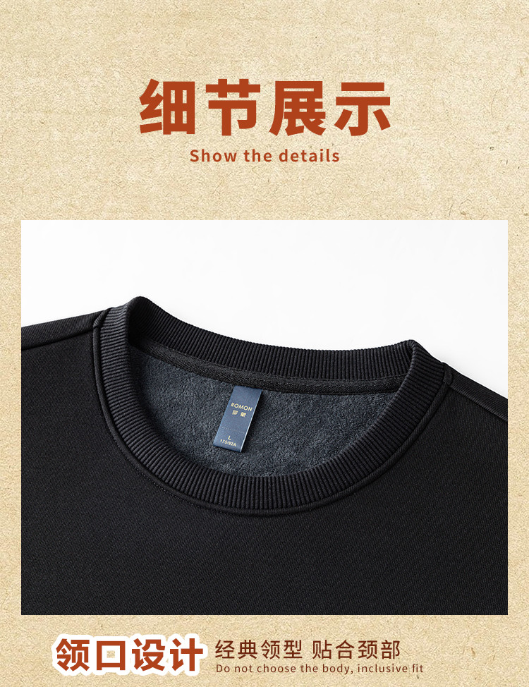 【加绒加厚 蚕丝混纺】罗蒙秋冬男装加绒卫衣男时尚休闲印花字母卫衣男保暖卫衣